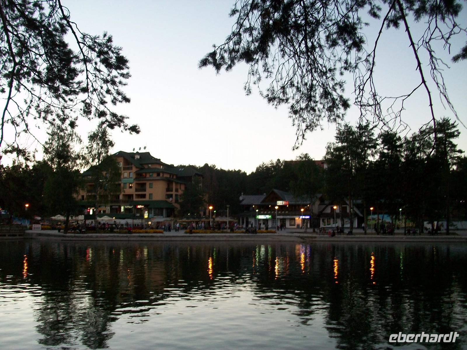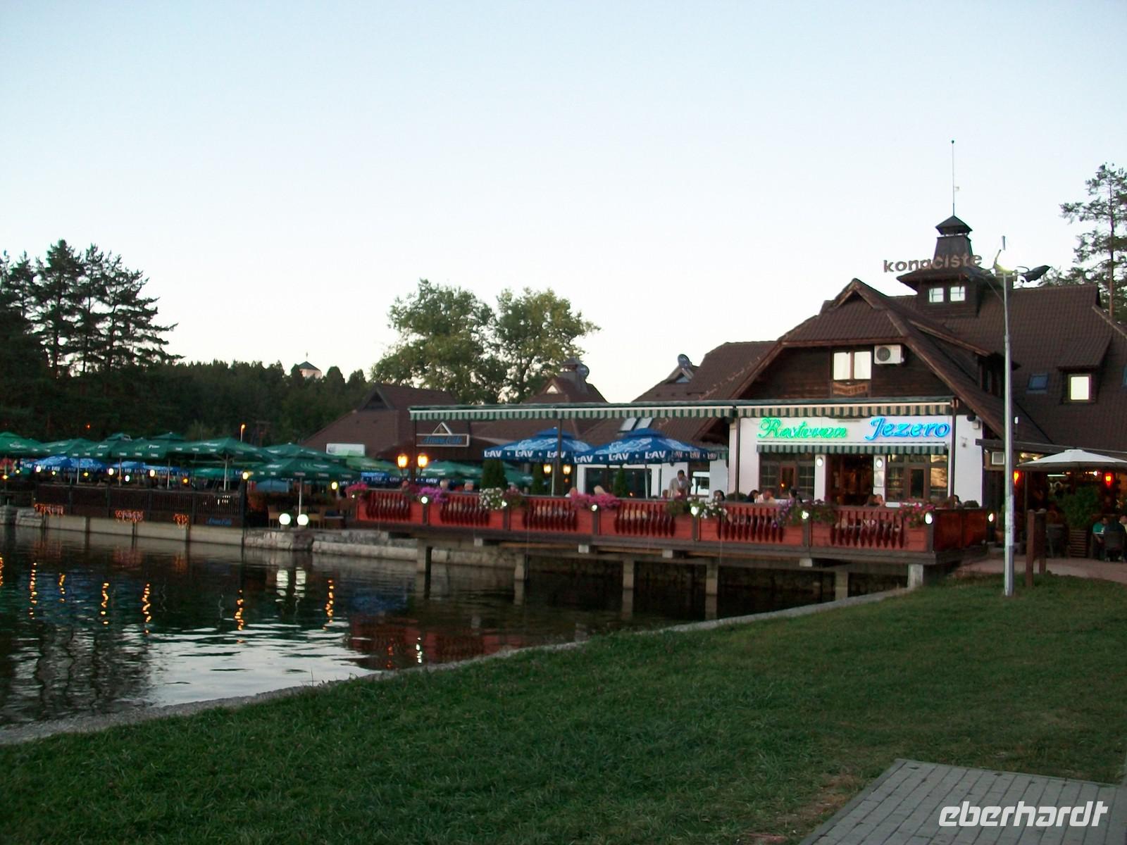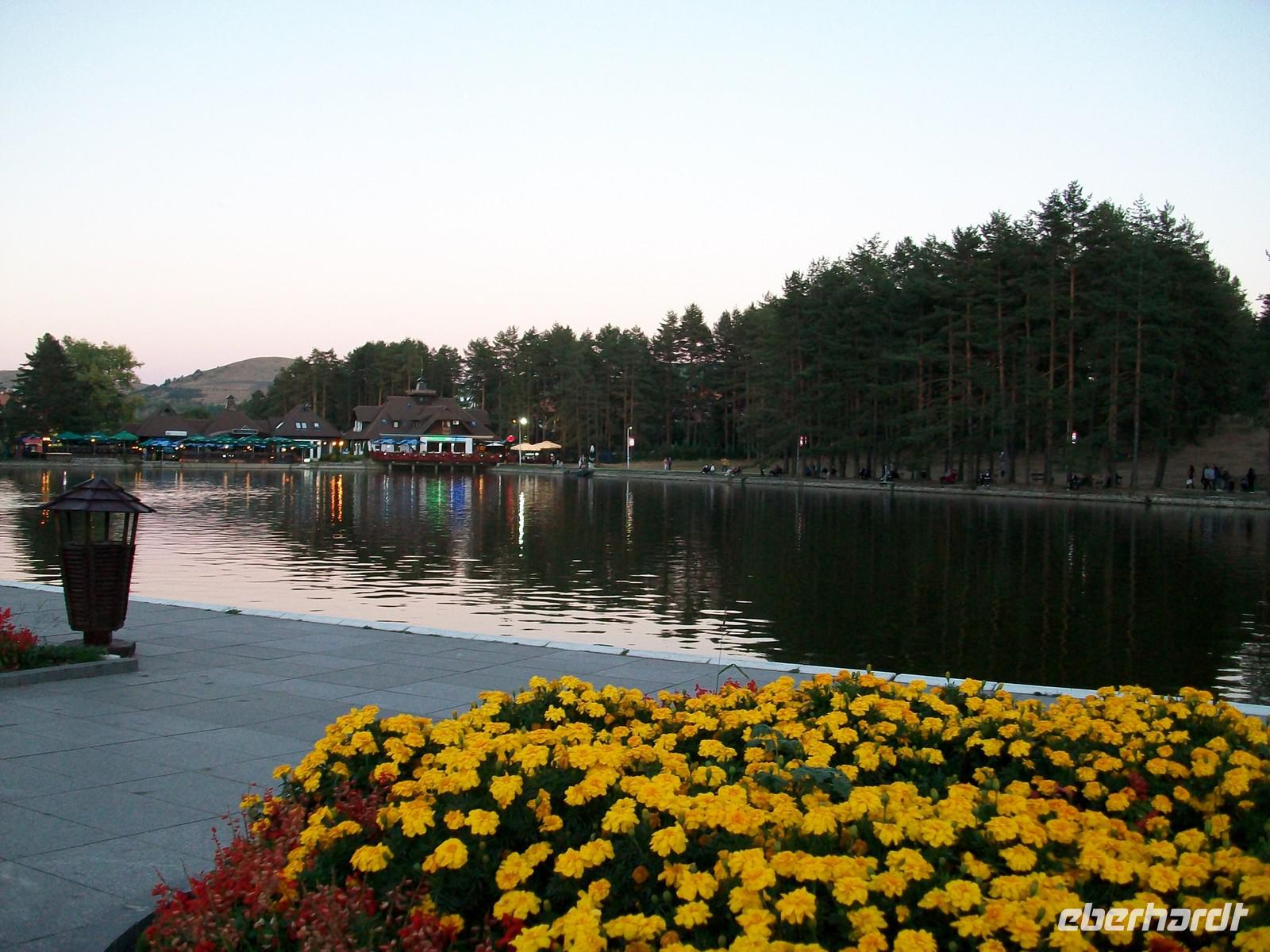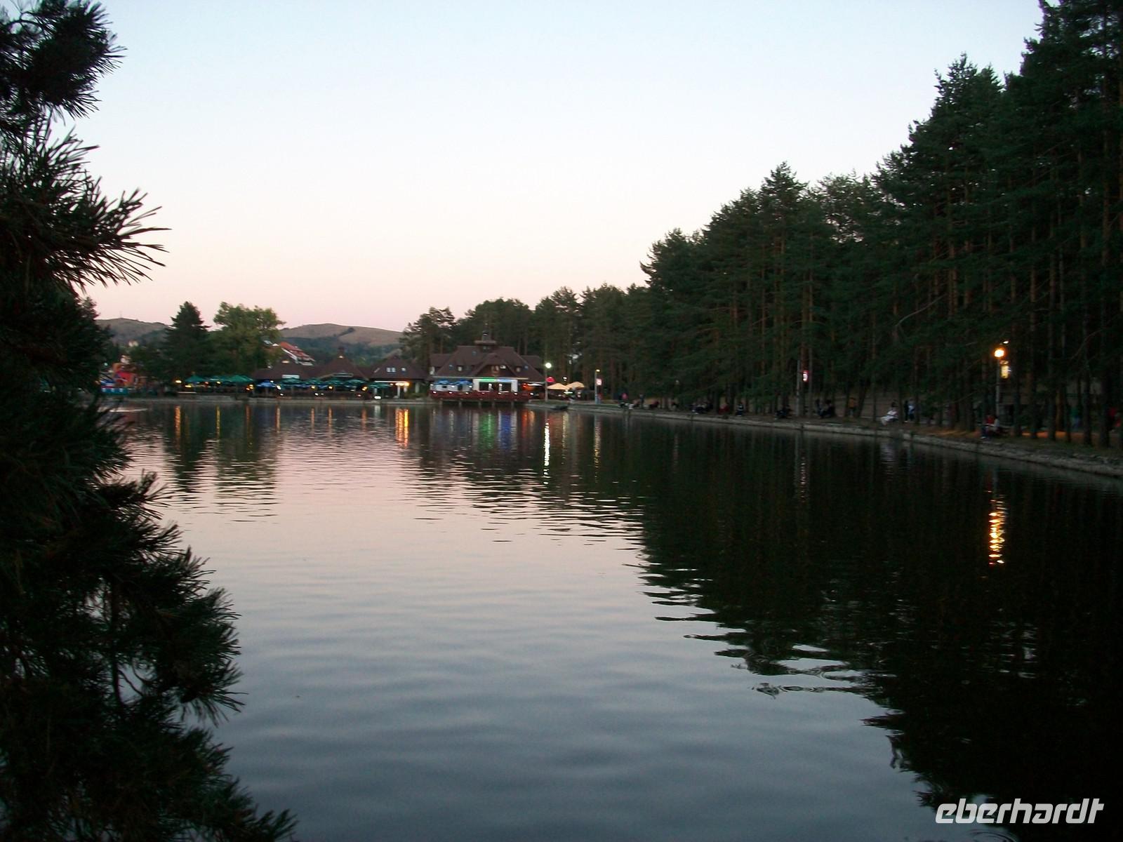 Nach dem Essen schauen wir uns noch im Ethnodorf um und drehen gleichsam die Zeit Jahrhunderte zurück. Fremd erscheint uns das einfache Leben der Bauern, rätselhaft sehen die Gebrauchsgegenstände aus und wir können auch nicht recht begreifen wie das Leben ohne Strom und moderne Kommunikation überhaupt möglich war. Bei dieser wissenswerten Führung versuchen wir uns darauf einzulassen; etwas nachdenklich beenden wir den Rundgang durchs Ethnodorf und unseren Reisegästen bleibt noch etwas Zeit für eigene Erkundungen. Bis zum Hotel haben wir noch etwa eine Stunde zu fahren, die Tour führt uns durch einen besonders schönen Teil des Zlatiborgebirges, mal unten durchs Tal, dann wieder auf den Bergeshöhen- es ist hier einfach wunderschön. Als wir gegen 17.45 Uhr an unserem Hotel ankommen, neigt sich die Sonne schon dem Horizont entgegen, die Berge erstrahlen dabei in einem besonders schönen rötlichen Licht und der Spaziergang im Ort beschließt den Tag. Hier gibt es einen kleinen See an dessen malerischem Ufer zahlreiche Restaurants zum Verweilen einladen, dabei ist es nun schon dunkel geworden und die Lichter der Häuser werfen die Strahlen über den See die sich darin reflektieren. Ein weiterer schöner Tag neigt sich dem Ende entgegen, der erholsame Schlaf gibt und für weitere Entdeckung die nötige Kraft.