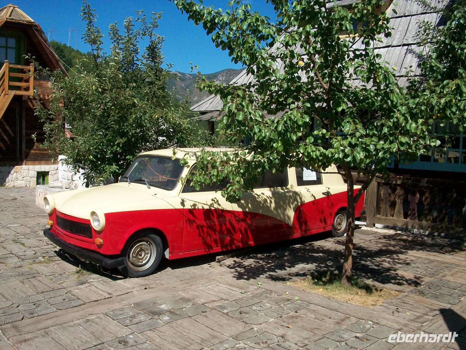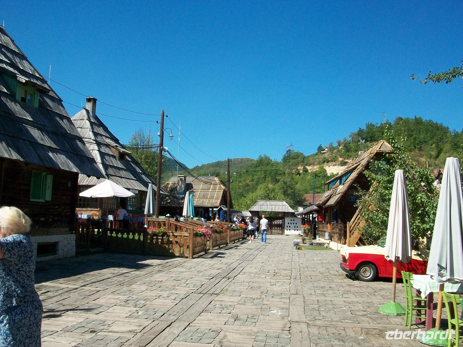 Der bekannte Regisseur Emir Kosturica hat hier in den Bergen für Hollywood den Film „Das Leben ist ein Wunder" gedreht. Heute sind die Häuser die einst die Kulissen waren, ein Touristenmagnet; wir können uns hier oben eine gute Stunde Aufenthalt gönnen und die besondere Atmosphäre genießen.