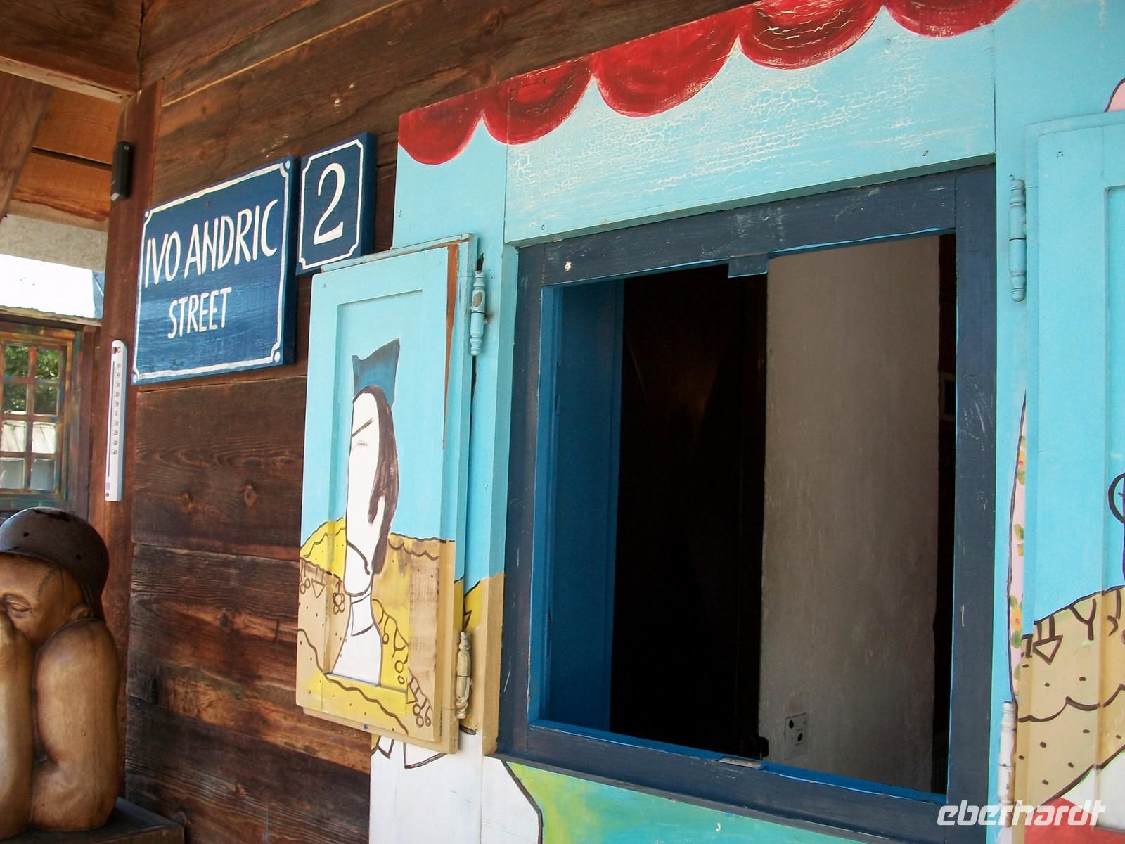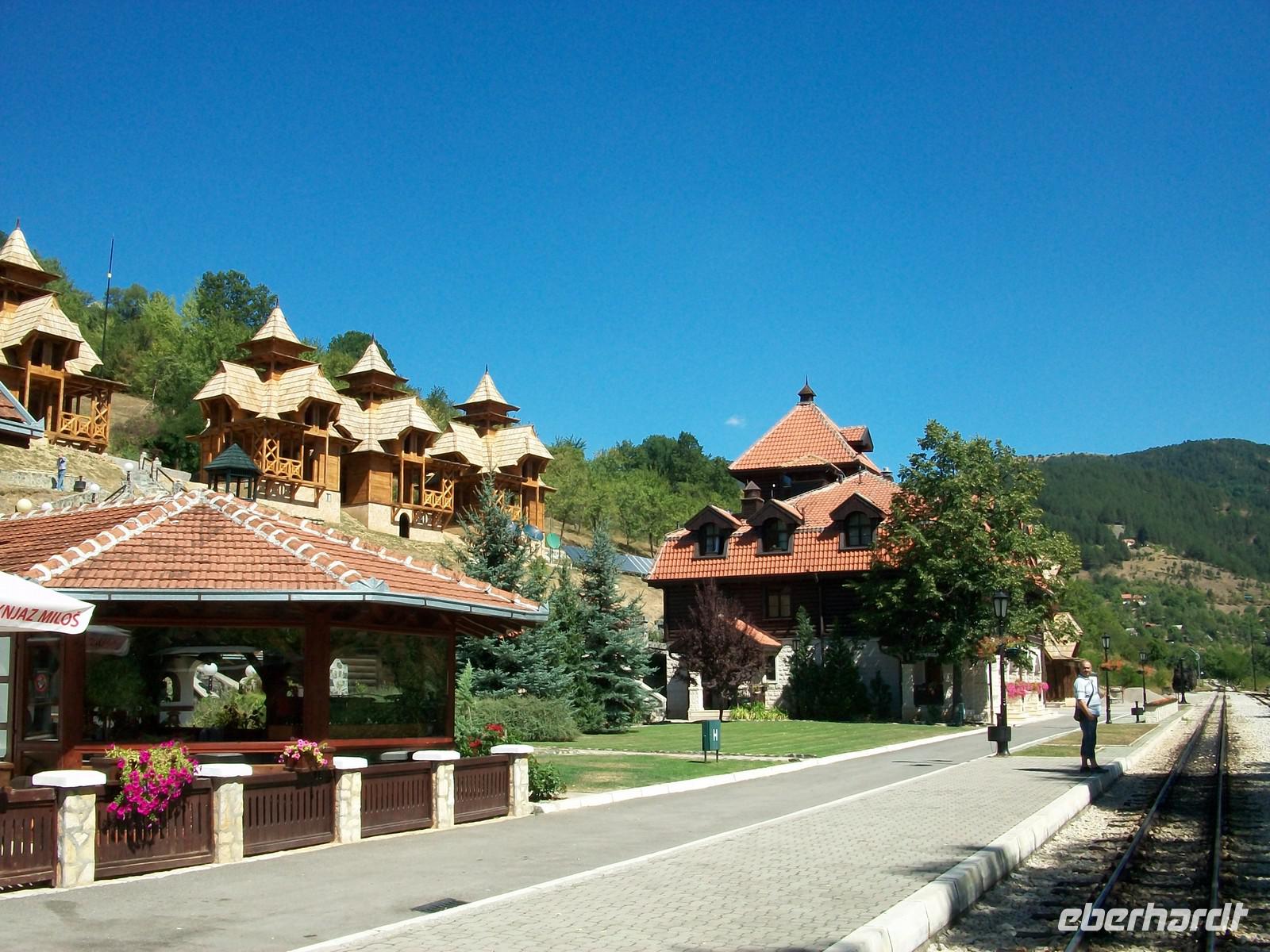 Danach geht es hinunter nach Mokra Gora, doch bevor wir unsere Eisenbahnfahrt beginnen statten wir einem Filmdorf noch einen Besuch ab.