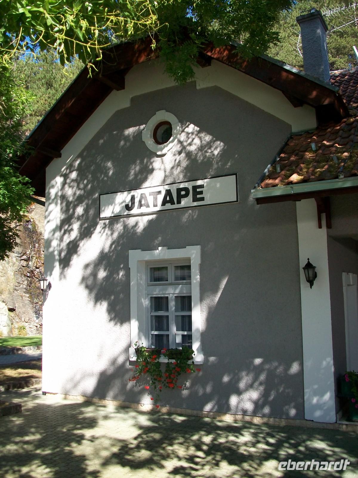 Einen längeren Zwischenhalt gibt es noch beim Ort Jatare, hier ist Zeit für einen Kaffee und einen kleinen Rundgang. Sehr gepflegt sind hier alle Anlagen, man kann hinauflaufen zu einem schönen Aussichtspunkt um den Zug aus dieser Perspektive zu sehen und einen kleinen Wasserfall gibt es auch.