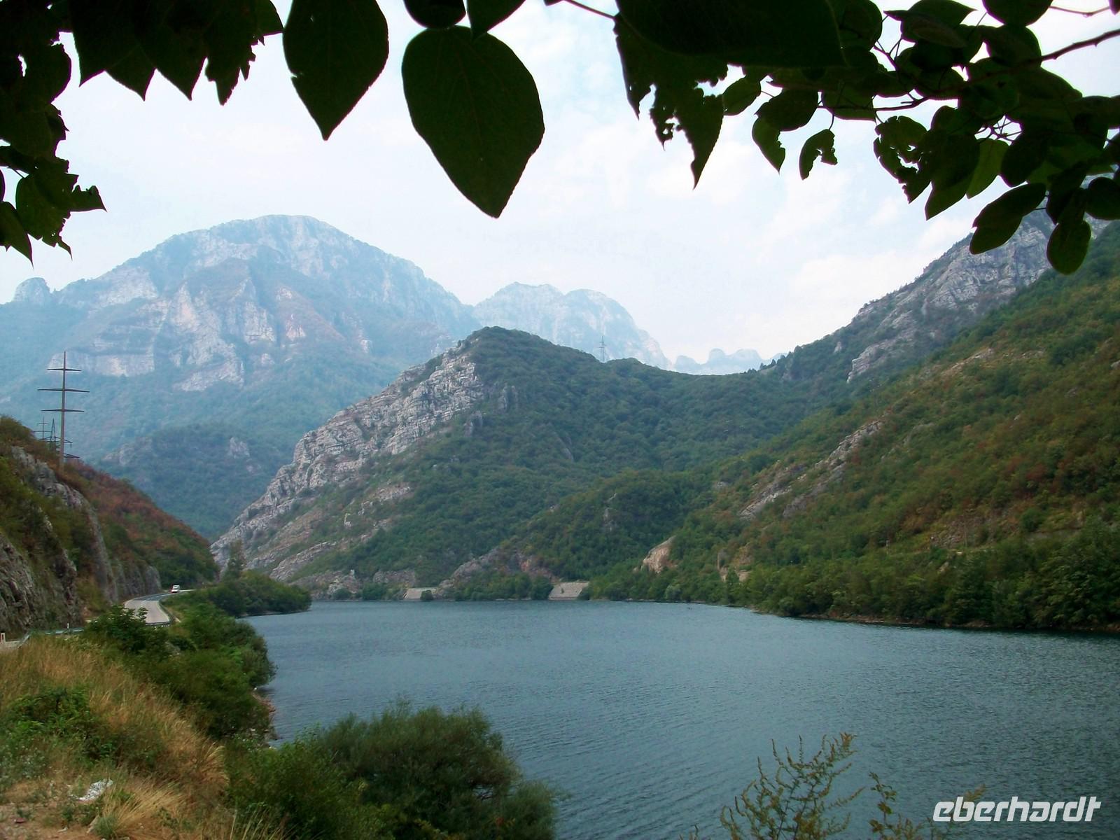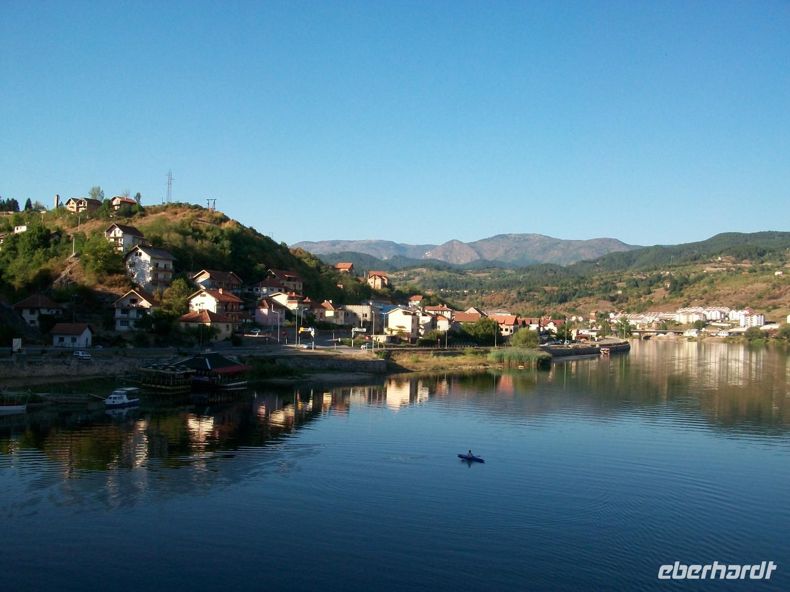 Durch das wildromantische Tal durch welches der Fluss Shkumbin seinen ungezähmten Lauf nimmt, gelangen wir nach einem Anstieg bald an die Grenze zu Mazedonien. Von hier ist auch schon die mächtige Wasserfläche des Ohridsees zu sehen- unser heutiges Ziel.