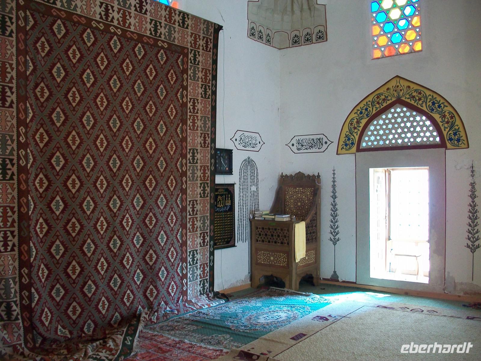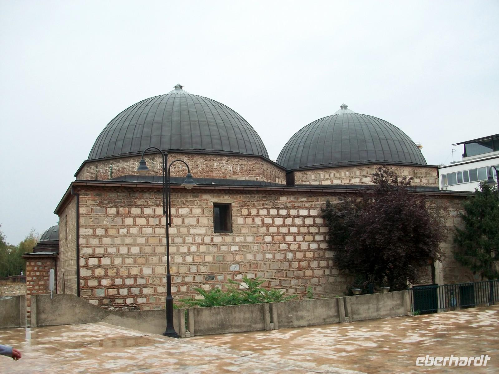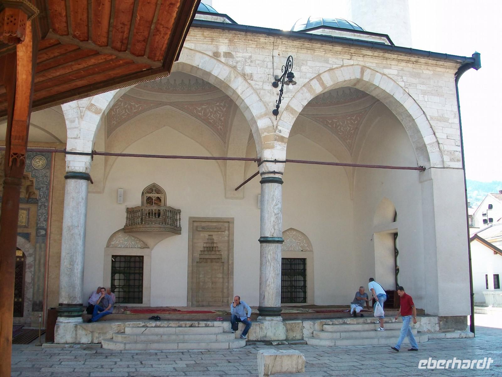 Wie mit dem Messer abgeschnitten endet der Habsburger Teil und wir tauchen nun ein in das Morgenland. Viele Jahrhunderte herrschten hier die Osmanen und brachten neben ihren typischen Bauten auch den Islam in diese Gegend. Wir stehen nun im Innenhof einer Moschee und lernen eine weitere Weltreligion kennen die uns Belma sehr wissenswert nahebringt. Das ist das Einmalige an Sarajevo, die jeweiligen Gotteshäuser dieser Weltreligionen stehen nur einen Katzensprung auseinander, hier hört man die Glocken läuten und den Muezzin zum Gebet rufen.