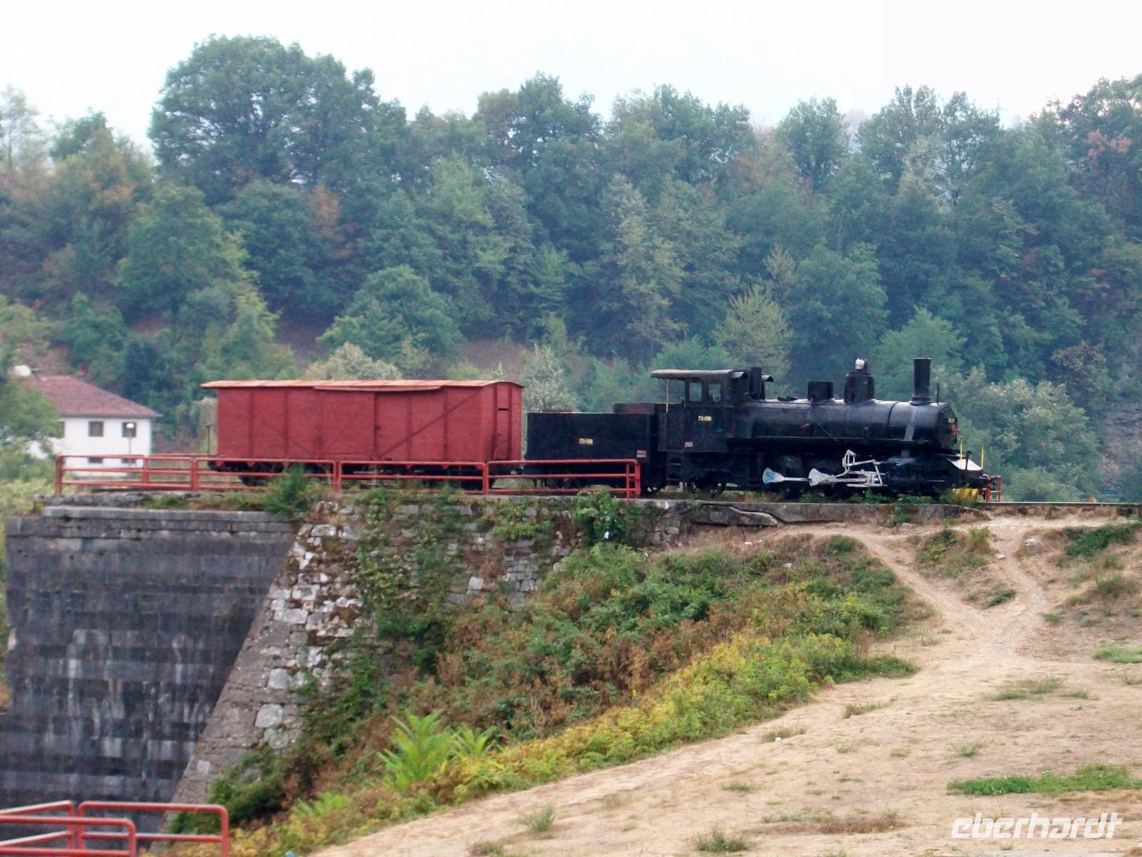 Nach einer guten Stunde Fahrzeit haben wir den Endpunkt dieser rekonstruierten Strecke Šargan Vitassi erreicht wo die Lok umgespannt wird und wir zehn Minuten Pause zum Fotografieren haben.