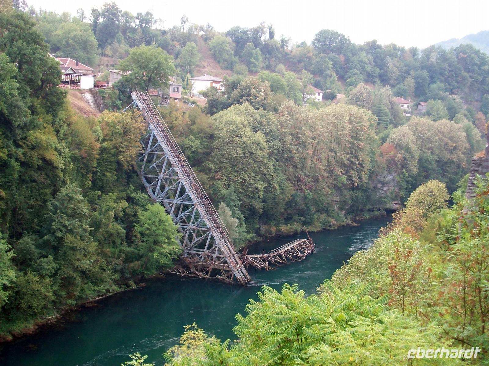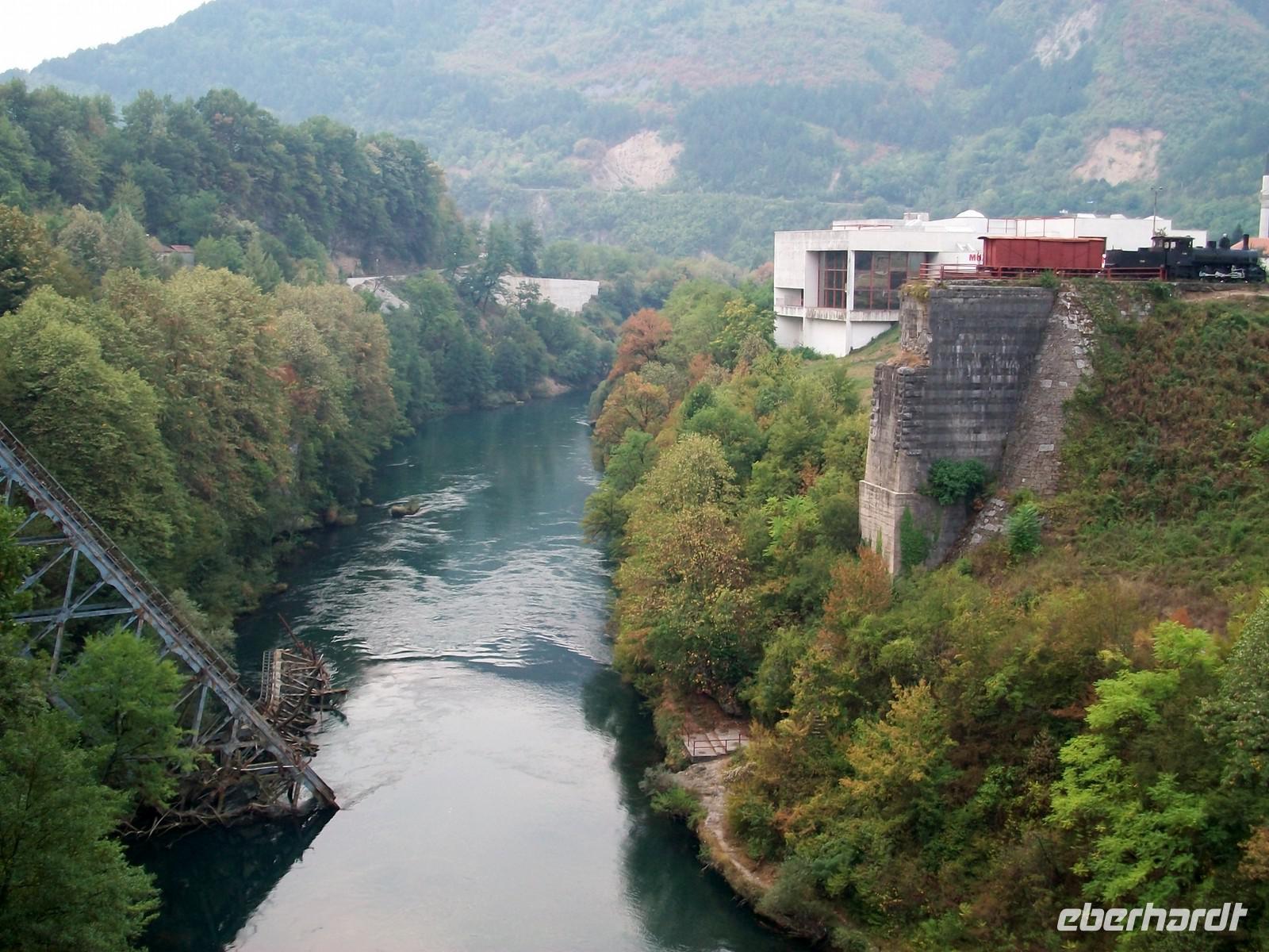 11.9.2012. Wir starten in Richtung Süden. Vorbei am Flughafen von Sarajevo und dem Vorort Ilidža gelangen wir in gebirgiges Terrain. Hier in den Bergen fanden 1984 die olympischen Winterspiele statt noch bevor sich die schlimmen Ereignisse der 90er Jahre ereigneten. Nachdem wir die Großstadt verlassen haben sind wir wieder in fast unberührter Landschaft unterwegs, beim Ort Konijec treffen wir erstmalig auf die Neretva, den Fluss der uns bis nach Mostar begleiten wird. Bald sehen wir auf der rechten Seite den Stausee, er wurde angelegt um Energie zu gewinnen. Gegen 9.40 Uhr kommen wir im Ort Jablanica an, diese Stelle war im Partisanenkampf eine sehr wichtige, wurde doch hier die Schlacht an der Neretva geschlagen und den Aggressoren durch Titos Partisanen eine entscheidende Niederlage gegeben. Der Ort ist nach wie vor Nationalheiligtum, wir nehmen uns etwas Zeit hier einmal vorbeizuschauen. Vom heutigen Flussübergang aus ist die alte gesprengte Eisenbahnbrücke zu sehen, sie liegt nach wie vor im Fluss und gemahnt den Betrachter an eine schlimme Zeit. Etwas abseits ist auch noch ein Teil eines Partisanenzuges zu sehen, er ist Teil einer Ausstellung.