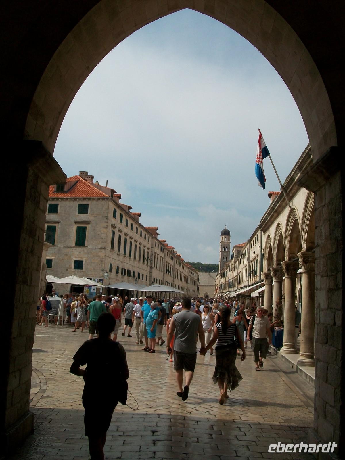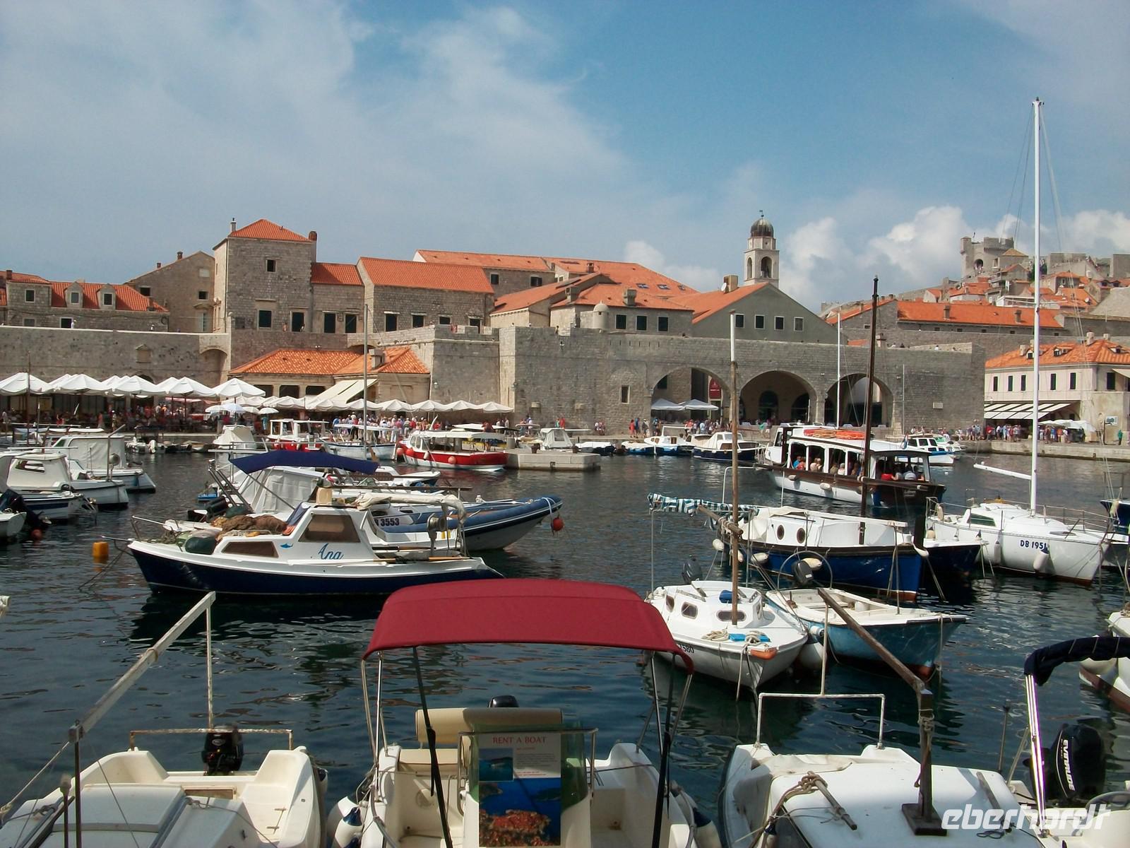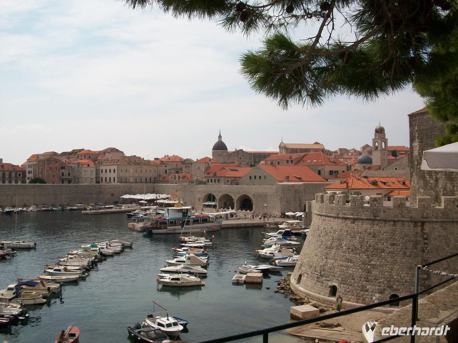 12.9.2012. Der Morgen beginnt mit wolkenlosem Himmel, die Frühsonne zaubert ein schönes Licht auf die alten Häuser von Trebinje und stimmt uns ein auf einen weiteren schönen Tag und einen weiteren Edelstein des Balkans. Wir fahren noch etwa eine halbe Stunde und haben bald die kroatische Grenze erreicht. Unter uns hat sich die blaue Fläche der Adria ausgebreitet, ihre Wasser reichen bis zum Horizont, einige Schiffe ziehen darauf ihre Bahn. Die Straße führt uns in Serpentinen bergab, bald sind wir über der Altstadt von Dubrovnik angelangt. Wie im Spielzeugland liegt diese Pele vor unseren Augen und wie mit den Schwingen eines Vogels schweben wir darüber hinweg. Doch dann geht es endgültig hinunter, zwischen den mächtigen Stadtmauern hindurch kommen wir unten am Pile- Platz an. Hier werden wir schon von unserer Stadtführerin erwartet die uns nun mitnimmt auf eine Reise in längst vergangene Zeiten. Durchs Pile- Tor gelangen wir direkt in die Stadt. Stradun heißt hier die Hauptfußgängerzone, auf ihr ihr schlendern wir an den uralten Häusern vorbei und langen an der Blasiuskirche an. Dann sehen wir uns den Uhrturm an und gelangen durch ein weiteres Tor in den Alten Hafen. Viele Ausflugsboote haben hier festgemacht und schaukeln lustig auf den Wellen. Als nächstes schauen wir noch in der Kathedrale vorbei, statten dem Markt einen Besuch ab und beenden die Führung dort wo sie begann, am Pile- Tor. Nun verbleibt in dieser einmaligen Stadt unseren Gästen noch Zeit für eigene Erkundungen, dem Besuch der Stadtmauer, der Fahrt mit der Seilbahn hinauf zum Hausberg und viele andere Möglichkeiten an diesem schönen Sommertag.