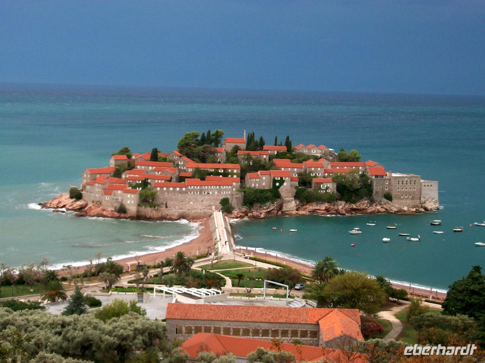 14.9.2012. Wir starten heute etwas früher als an den anderen Tagen, wir haben ein umfangreiches Programm vor uns, unser Ziel ist heute der Ohridsee in Mazedonien. Das Wetter hat sich wieder etwas beruhigt, die Fahrt entlang der montenegrinischen Küste gestaltet sich sehr angenehm. An der bekannten Halbinsel Sveti Stefan machen wir einen Fotostopp und sind dann in Richtung Bar unterwegs. Auch heute ist das Meer noch sehr aufgewühlt, die Wellen schlagen mit mächtiger Kraft an die Küste.