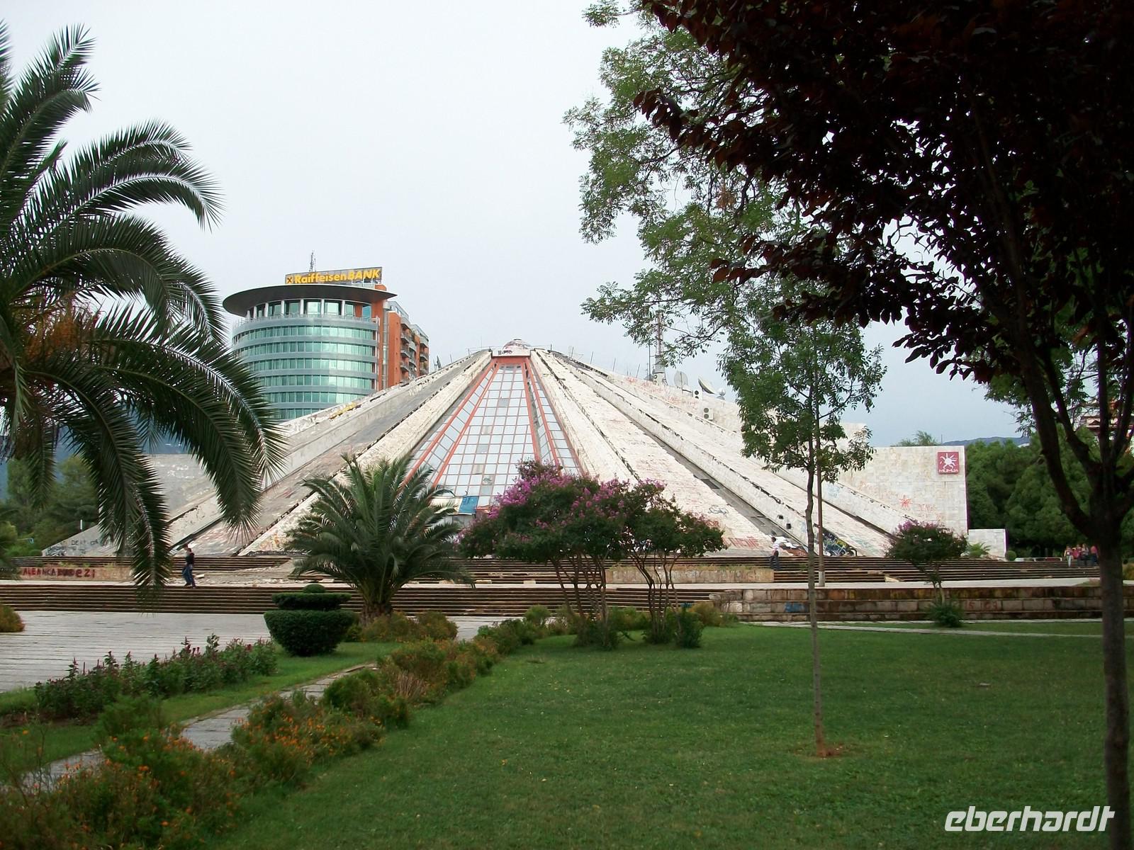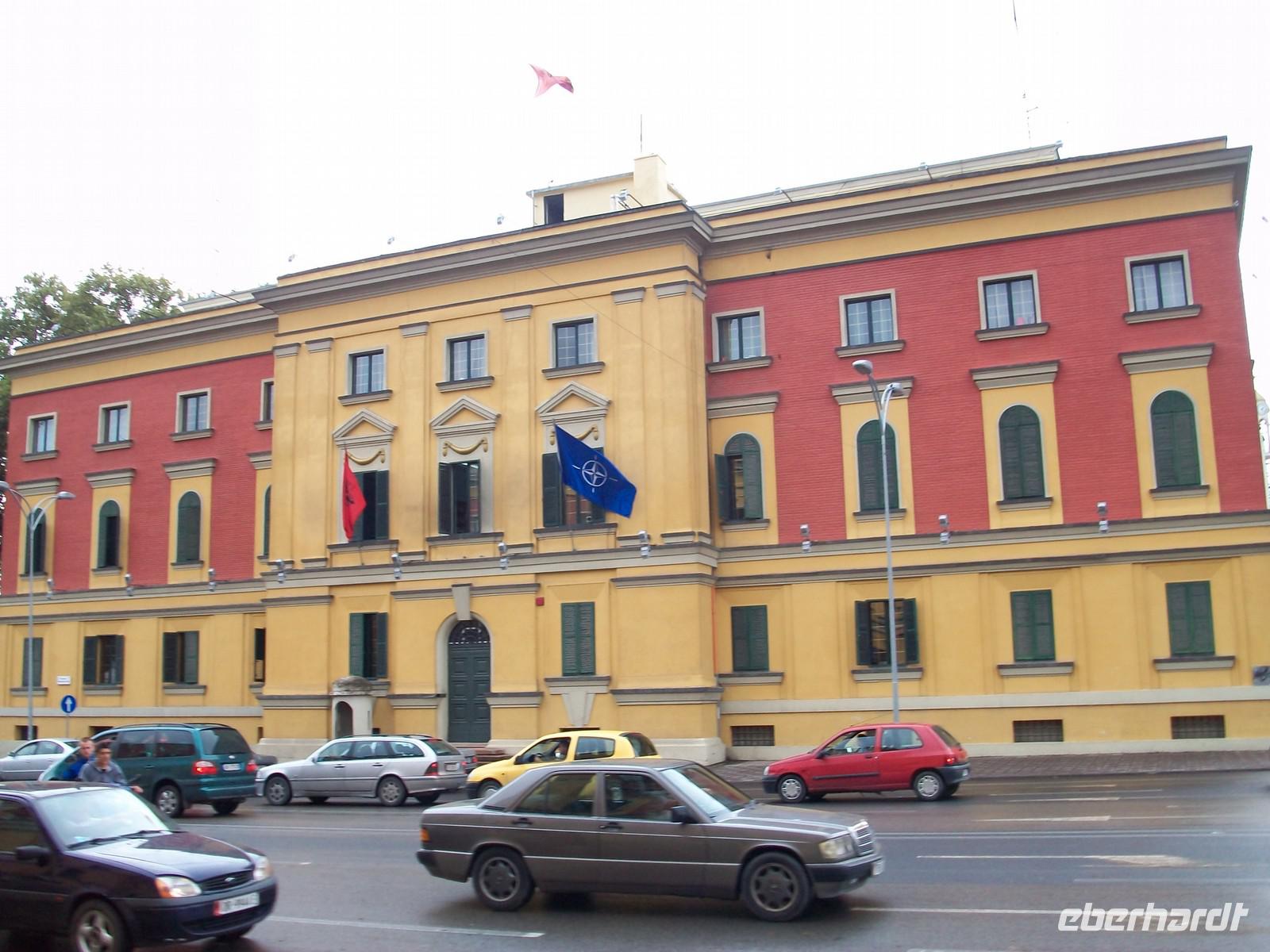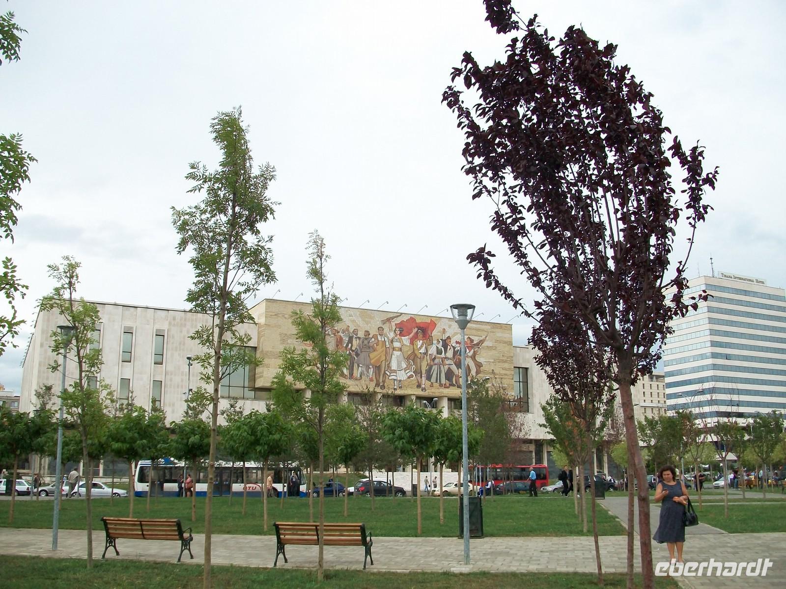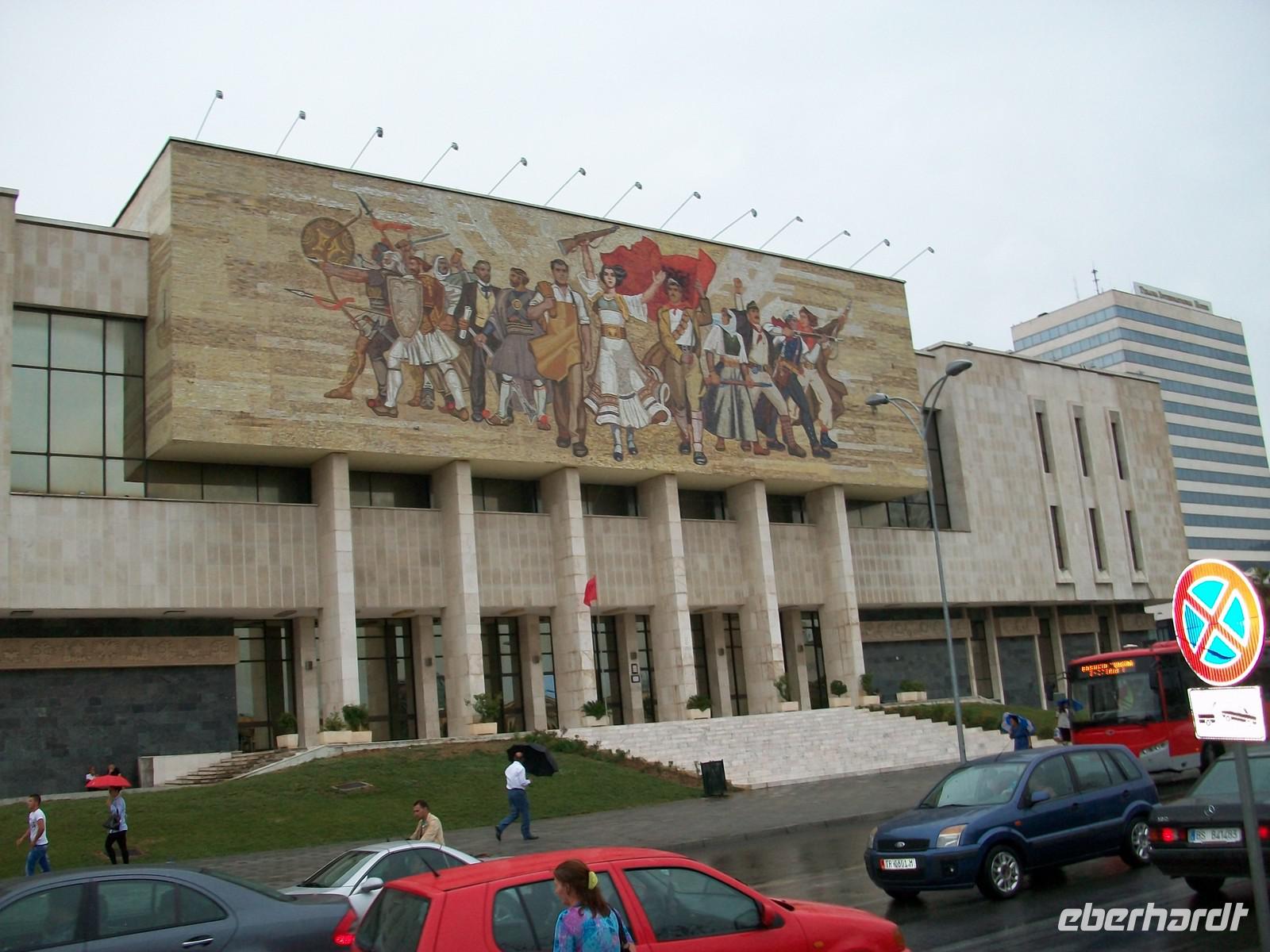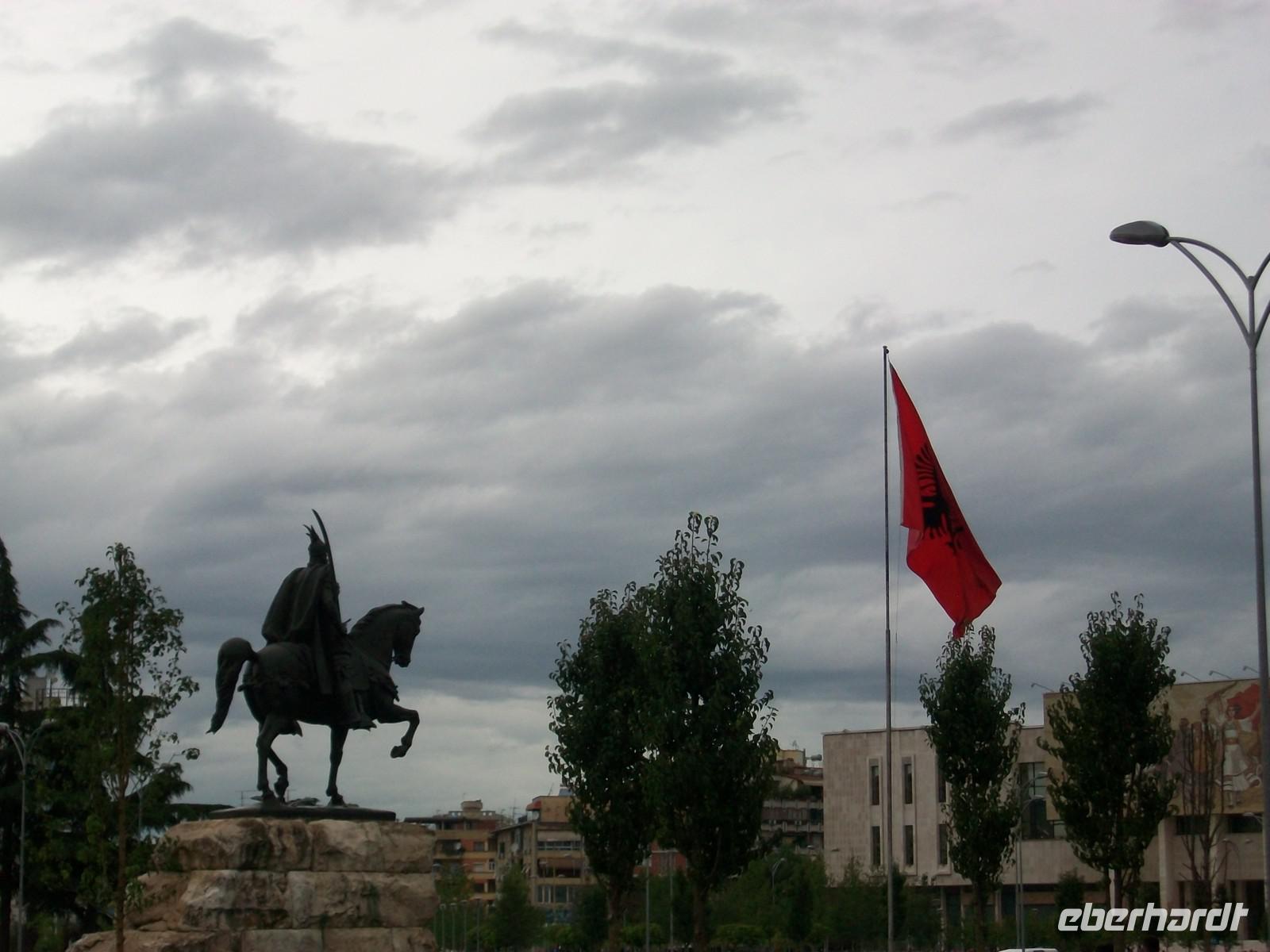 Wir stecken im Stau kurz vor dem Skanderbeg- Platz fest, eben mache ich mir Gedanken ob wir wohl überhaupt unseren Stadtführer in diesem Gewühl finden als es an die Bustür klopft. Wie aus dem Nichts taucht der Guide aus dem chaotischen Gewimmel des Verkehrs auf, er hat hier irgendwo auf uns gewartet und es scheint wie ein Wunder das er uns sofort erkannt hat! Wir drehen eine Runde um den Skanderbeg- Platz, dann sind wir in Richtung Universität unterwegs wo der Bus erst einmal abgestellt wird. Ab jetzt geht alles zu Fuß, es ist gar nicht so einfach sich hier verständlich zu machen, es wird hier unentwegt gehupt, Motoren heulen auf, bremsen quietschen und dazwischen fahren Polizeiautos und Krankenwagen mit schrillen Sirenen. Alles scheint hier außer Rand und Band, dennoch gestaltet sich die kleine Runde durch Tirana als recht kurzweilig, die originelle und authentische Art der Führung die wir hier geboten bekommen verstärkt den Eindruck noch: Albanien ist eben ein Land welches mit keinem anderem verglichen werden kann und wer sich darauf einlassen will ist um einen Erfahrung reicher! Schön das ich einmal wieder hier sein konnte.