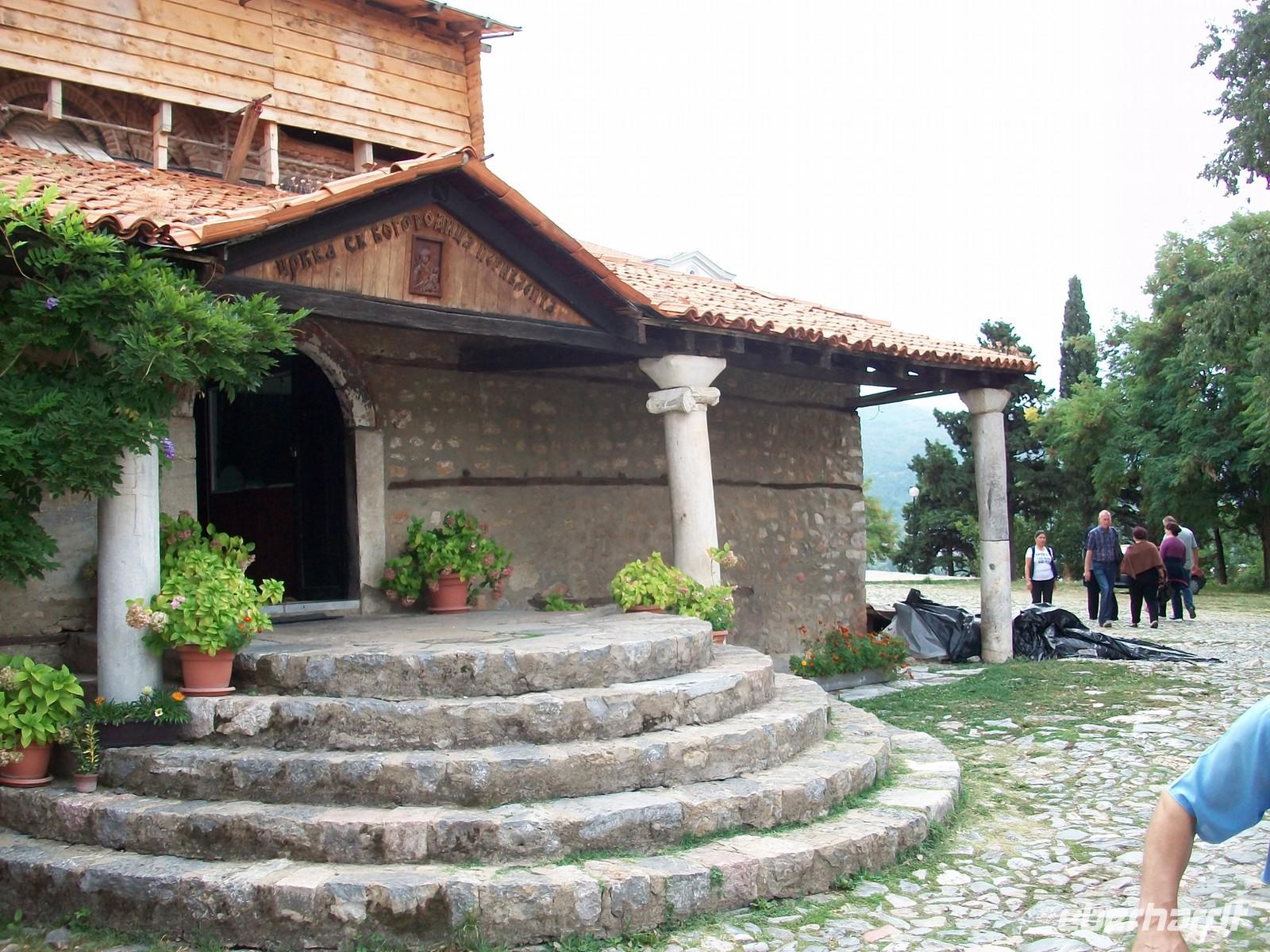 16.9.2012. Es ist 9.00 Uhr und wir haben gerade die Koffer verladen. Heute begrüßt uns ein bedeckter Himmel, es ist aber trocken und frohen Mutes beginnen wir unsere Fahrt um zu einem weiteren Höhepunkt zu gelangen. Die Fahrt geht noch einmal am Ort Ohrid vorbei, wir sehen von der Straße die Festung und sind dann auf der Landstraße in Richtung Skopje unterwegs. Auf den Straßen Mazedoniens ist es etwas holprig aber die Natur ist einmalig. Leider hat uns Petrus heute Wolken auf die Berge gelegt als wir durch den Mavrovo- Nationalpark fahren. Die Straße steigt stetig an, bald sind wir im dichten Nebel versunken. Doch das Bild ändert sich als wir hinunter in die Vardar- Ebene fahren. Ein letzter Stopp vor der Hauptstadt, bald schon sind wir im Gewühl des Verkehrs angekommen. Nur mühsam kämpfen wir uns voran doch nach kurzer Zeit ist die Festung zu sehen auf deren Mauer lustig die mazedonische Fahne im Wind flattert. Es ist schon halb eins als wir von unserem Stadtführer begrüßt werden. Gleich vom erstem Augenblick wird uns klar das die Qualität der heutigen Führung besser sein wird als die gestrige. Wir starten an der Festung die leider auch noch dieses Jahr für Besucher unzugänglich ist. Interessant ist die Geschichte die sich um dieses Bauwerk rankt. Dann geht es an einer Moschee vorbei und wir erreichen die Kirche sv. Spas.
