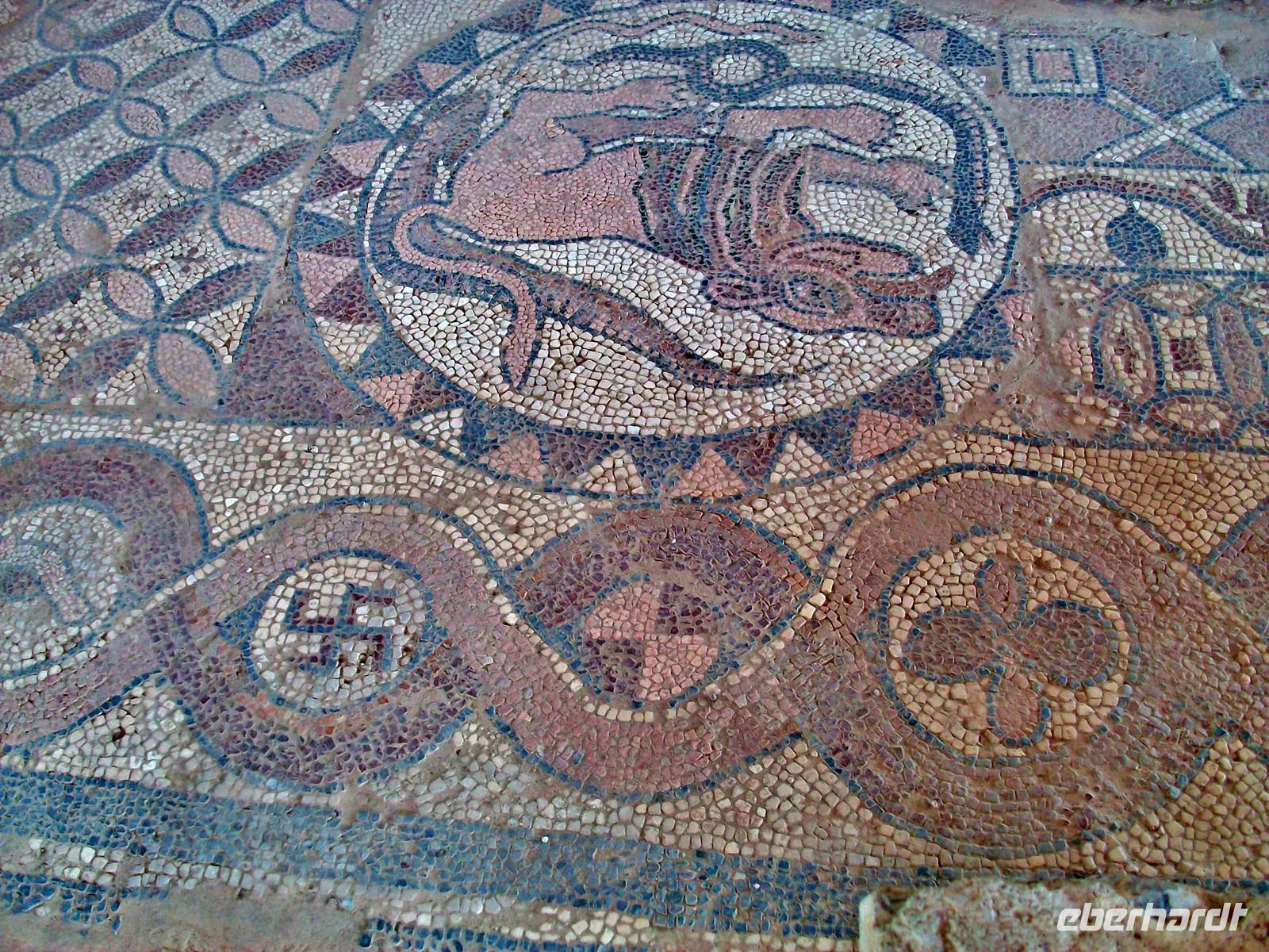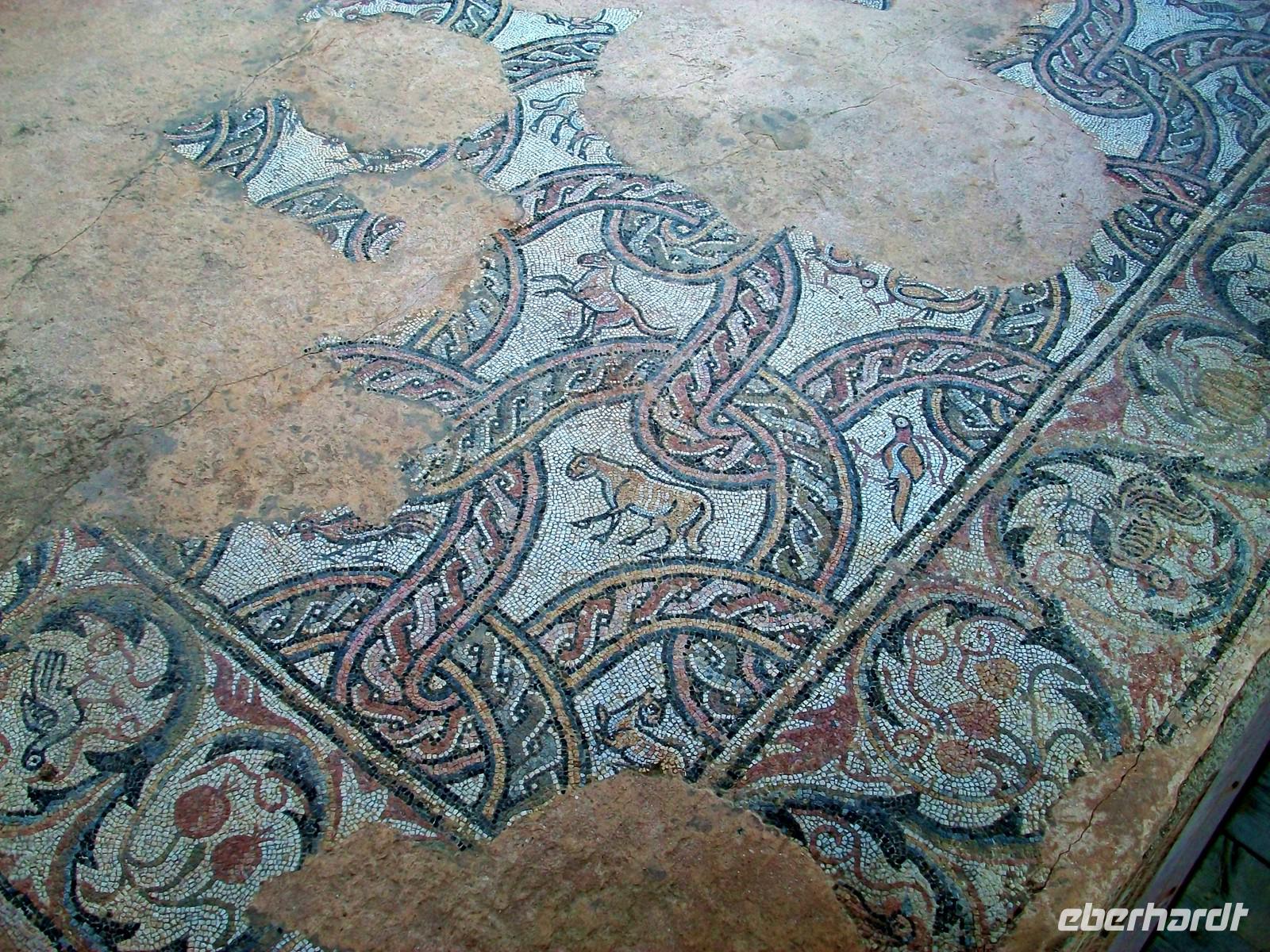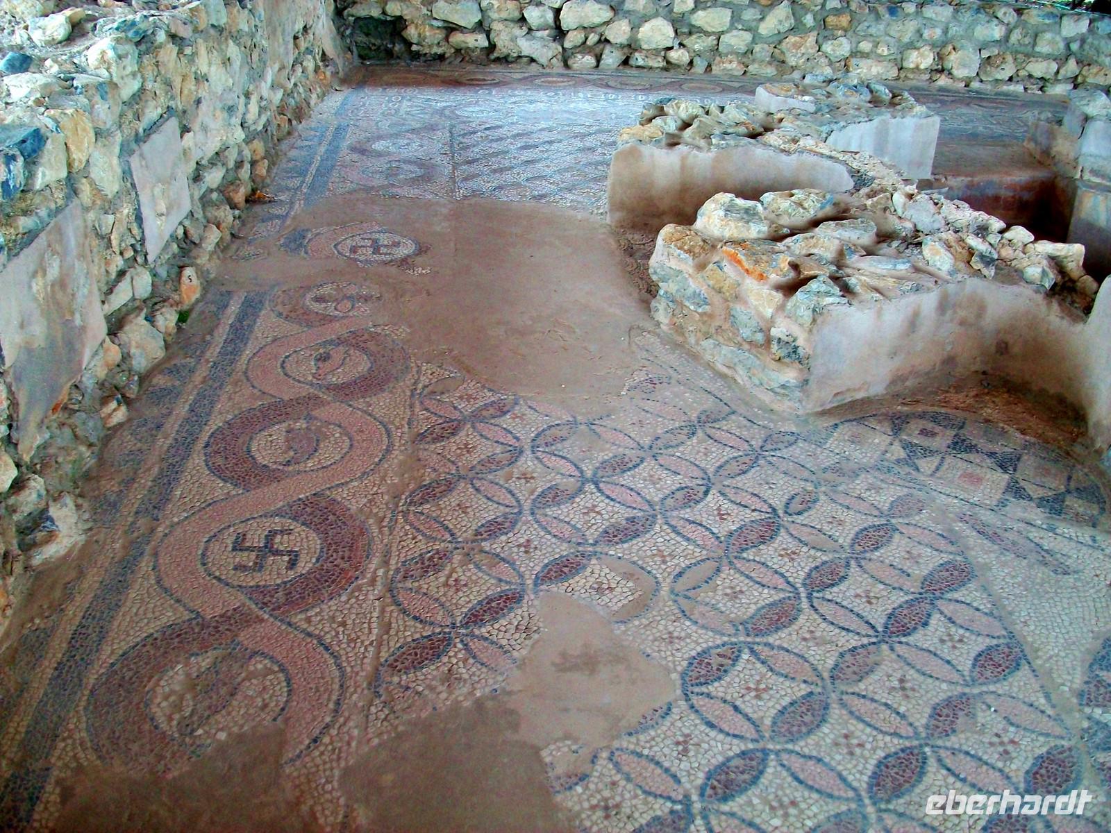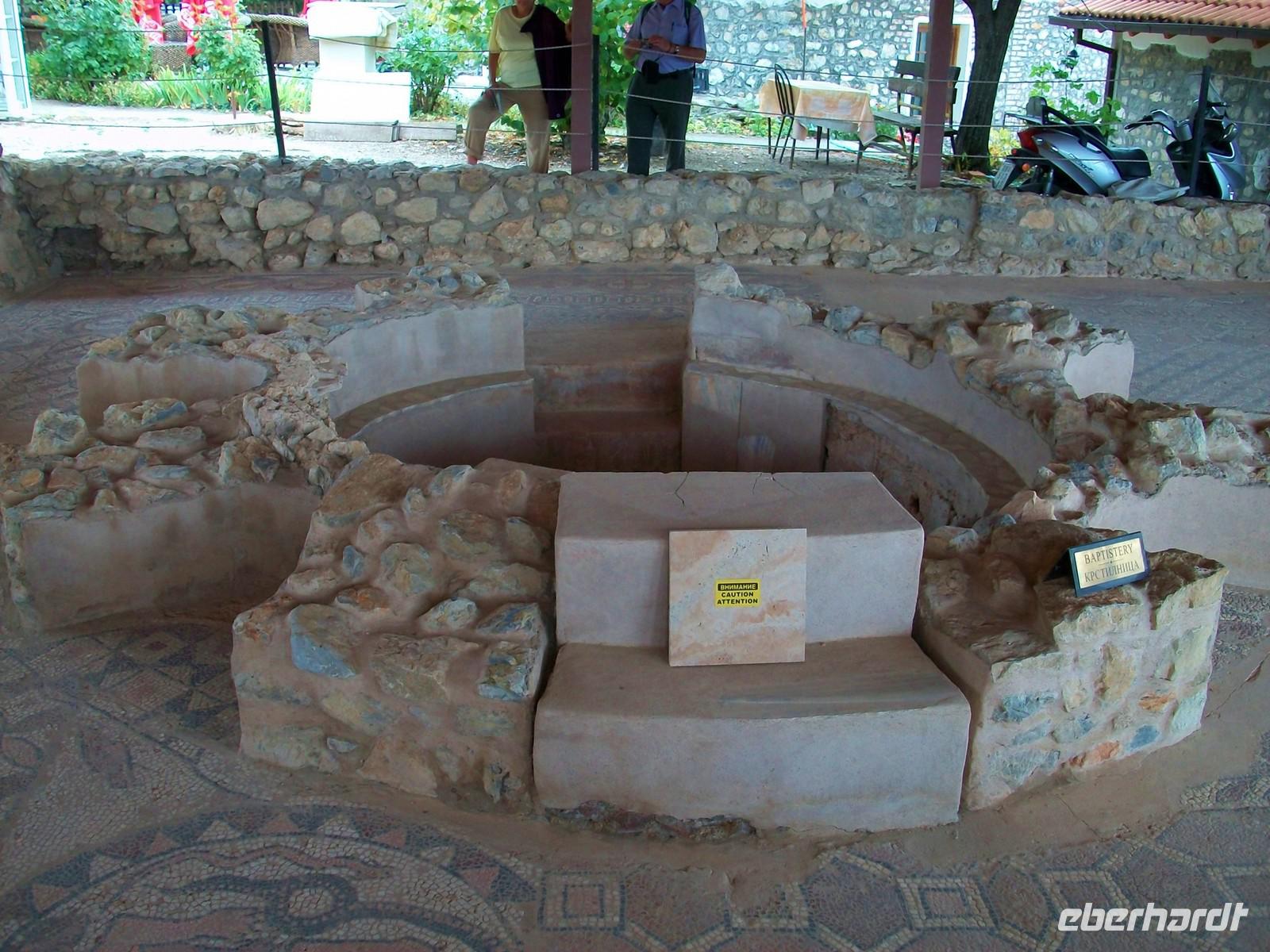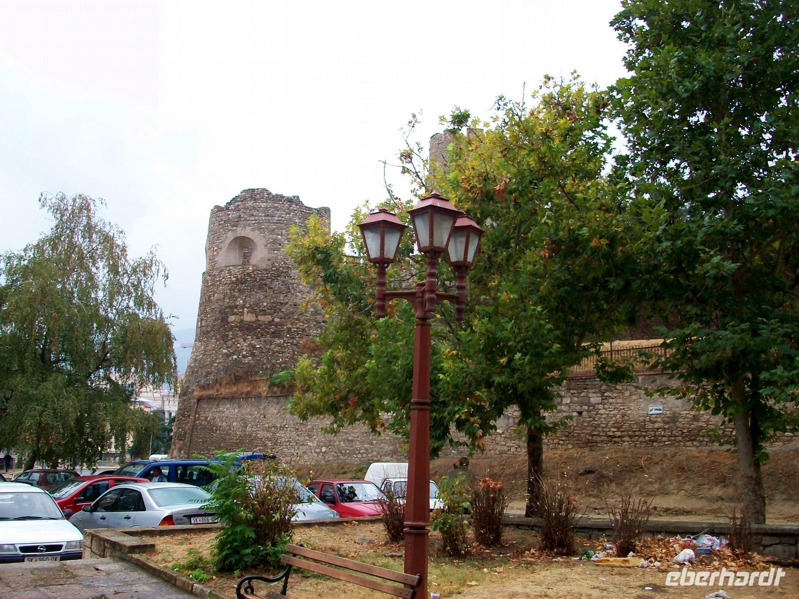 15.9.2012. Auch wenn der Himmel heute bewölkt ist, das Wetter ist nicht schlecht und es soll trocken bleiben. Wir treffen uns mit dem örtlichen Führer am Hotel und gegen halb zehn geht es los. Der Weg zur Innenstadt ist nicht weit, im Trubel der Hauptstraße steigen wir aus und sind nun auf dem Weg hinauf zum ältesten Teil der Stadt mit der Festung. Das geht nicht ganz ohne Anstrengung aber oben angelangt belohnt uns ein schöner Blick hinunter zum See für unsere Mühen. Und nicht nur dass, erst hier oben können wir so richtig eintauchen in die Historie dieses einmaligen Ortes in dem so viele Kulturen ihre Spuren hinterließen. So sehen wir Zeugnisse aus griechischer, römischer, byzantinischer Zeit gelangen zu Bauwerken die die Osmanen hier zurückließen und auch die Slawen haben ihre Kultur überliefert. Wir sehen Klöster, Kapellen, das Amphitheater und schlendern durch schmale Gassen des Ortes. Höhepunkt sind jedoch die wunderschönen Mosaiken die wir sehen können und die davon Zeugnis ablegen, dass es schon in der Antike hier eine Hochkultur gab. Leider ist unser mazedonischer Führer etwas chaotisch, aber Bogdanka als ausgebildete Historikerin versteht es immer wieder sehr gut, im entscheidenden Moment das Heft des Handelns fest in ihre kompetente Hand zu nehmen und somit gerät diese Führung auch zu einem besonderen Ereignis in einer besonderen Stadt.