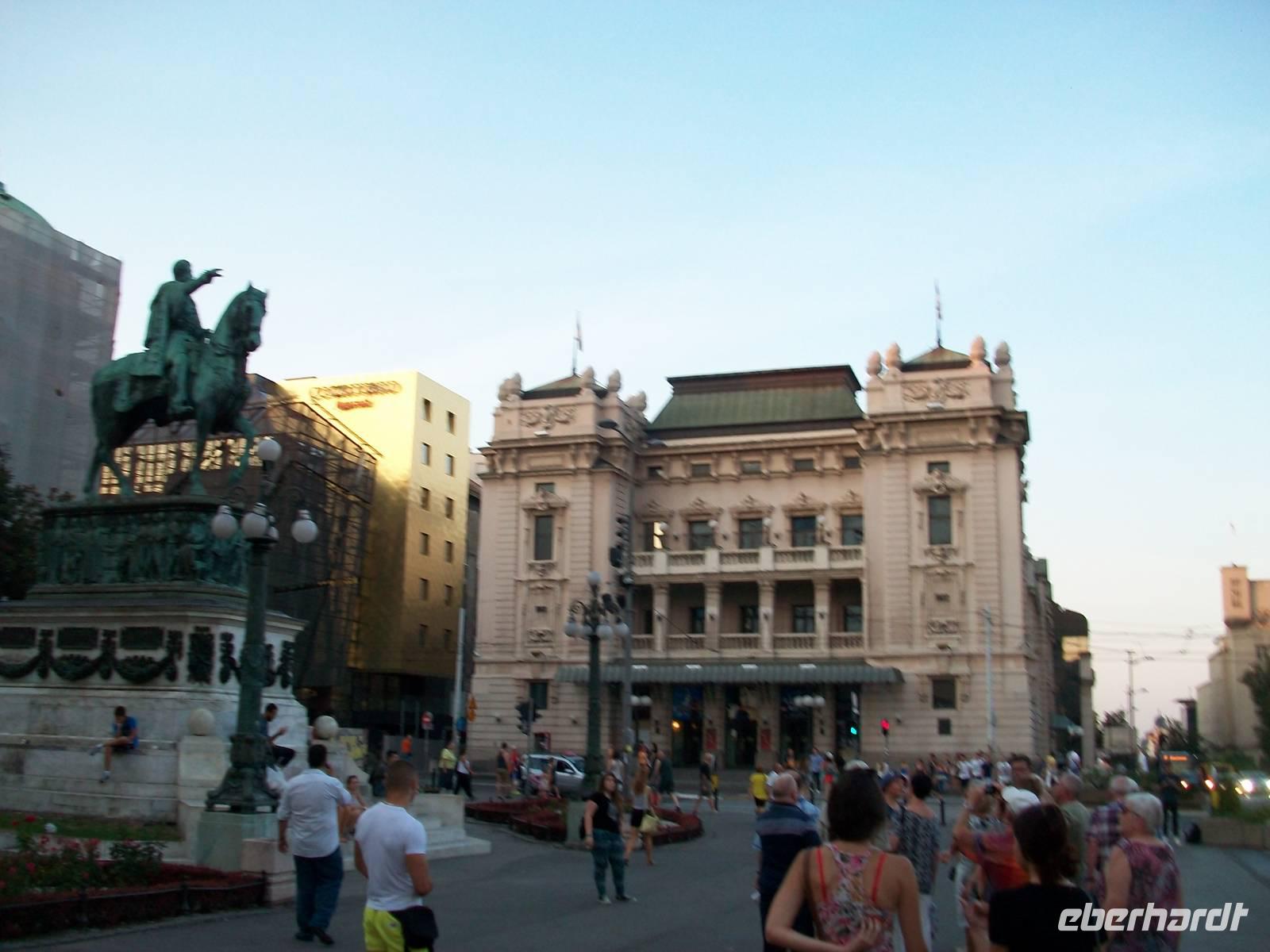 In der großen Halle werden wir schon von meiner Kollegin Bogdanka erwartet, mit ihr als örtlicher Reiseleiterin werden wir die nächsten zwei Wochen verbringen. Genauso mit dem Chauffeur Branislav, er hat den Bus mit der Klimaanlage schon angenehm temperiert. Dann geht es los; wir gelangen nach einer guten Viertelstunde in den Trubel der Großstadt und zunächst in einen schönen Teil mit vielen Villen. Hier fand der ehemalige Staatspräsident Tito im Haus der Blumen seine letzte Ruhestätte, heute ein beschaulicher, fast unscheinbarer Platz. Dann die Fahrt hinauf zum Hügel; wir schauen am ehemaligen Königssitz vorbei um wenig später zu unserem Hotel zu gelangen. Nach dem Check Inn eine Pause zur Erholung und dann nehmen wir unsere Erkundungen in Belgrad wieder auf.
