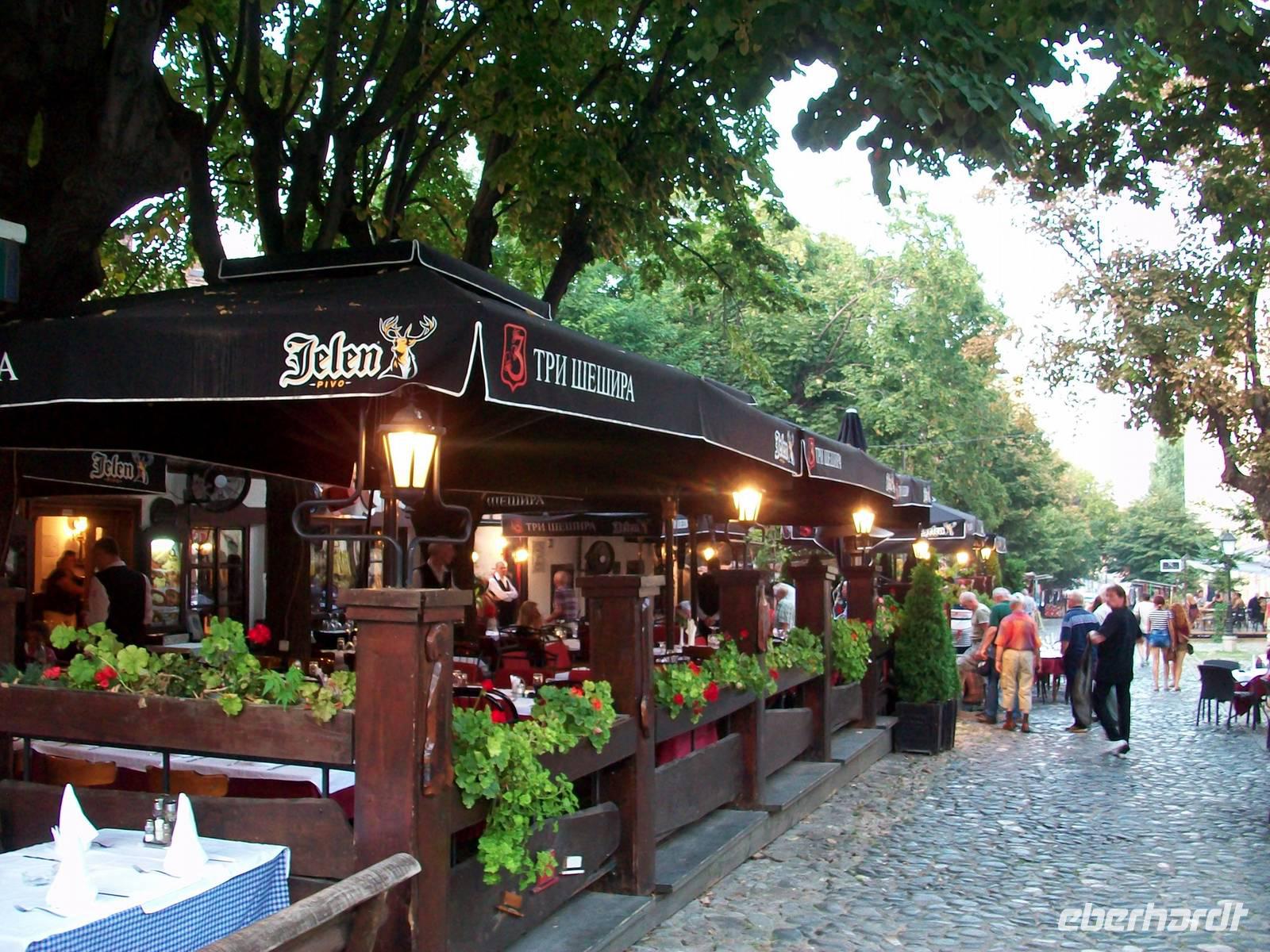 Dann gelangen wir zur großen Festungsanlage der Stadt, Kalemegdan genannt. Was einst mächtige Feinde abwehren sollte ist heute eine schöne Grünanlage und Refugium für die Belgrader und die Gäste der Stadt. Durch Tore und über Brücken gelangen wir an den Punkt mit dem phantastischen Ausblick auf den Zusammenfluss von Donau und Save. Die Sonne meint es heute wirklich gut und wir müssen nach Schatten suchen. Nachdem wir viel über die wechselvolle Historie erfahren haben gelangen wir über die belebte Fußgängerzone zu unserem Abendessen in das Bohème- Viertel der Stadt und in einem urigen Restaurant inmitten der einheimischen Gäste, begleitet von Musikanten, lassen wir diesen Tag sehr stimmungsvoll ausklingen.