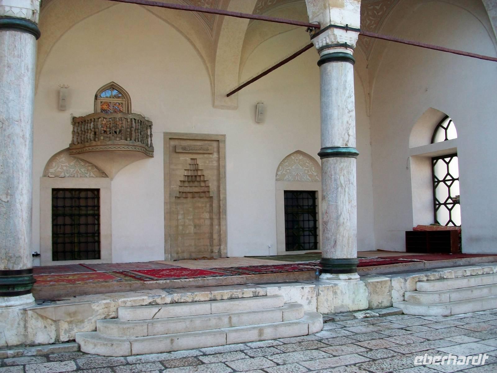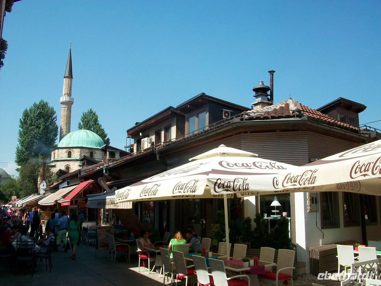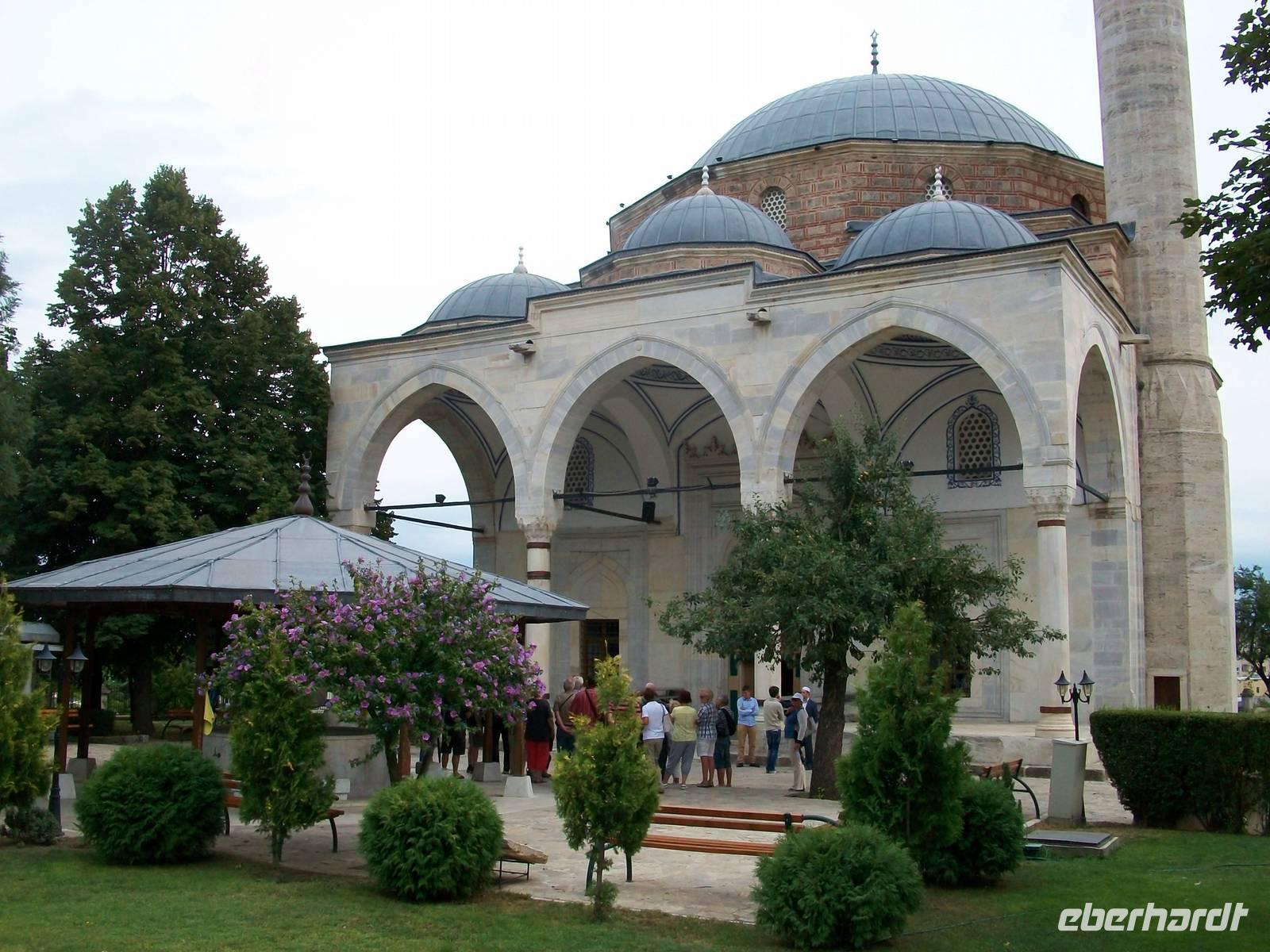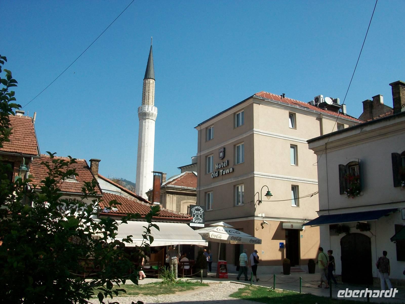 Der Rundgang beginnt an der Ewigen Flamme, sie erinnert an die Opfer des 2. Weltkrieges. Dann führt uns der Weg über die belebte Fußgängerzone zur serbisch- orthodoxen Kirche. Es ist ein schöner Bau aus Habsburger Zeiten; dieser Teil der Stadt stammt aus der österreichisch- ungarischen Monarchie. Dann führt uns der Weg zum jüdischen Viertel und der Synagoge und als wir weiter gehen, überschreiten wir die Grenze zum Morgenland. Der alte türkische Teil mit den so typischen niedrigen Häusern, dem Basar und den Moscheen, blieb erhalten wie er war, und somit sind wir hier mit nur einem Schritt im Orient angelangt!