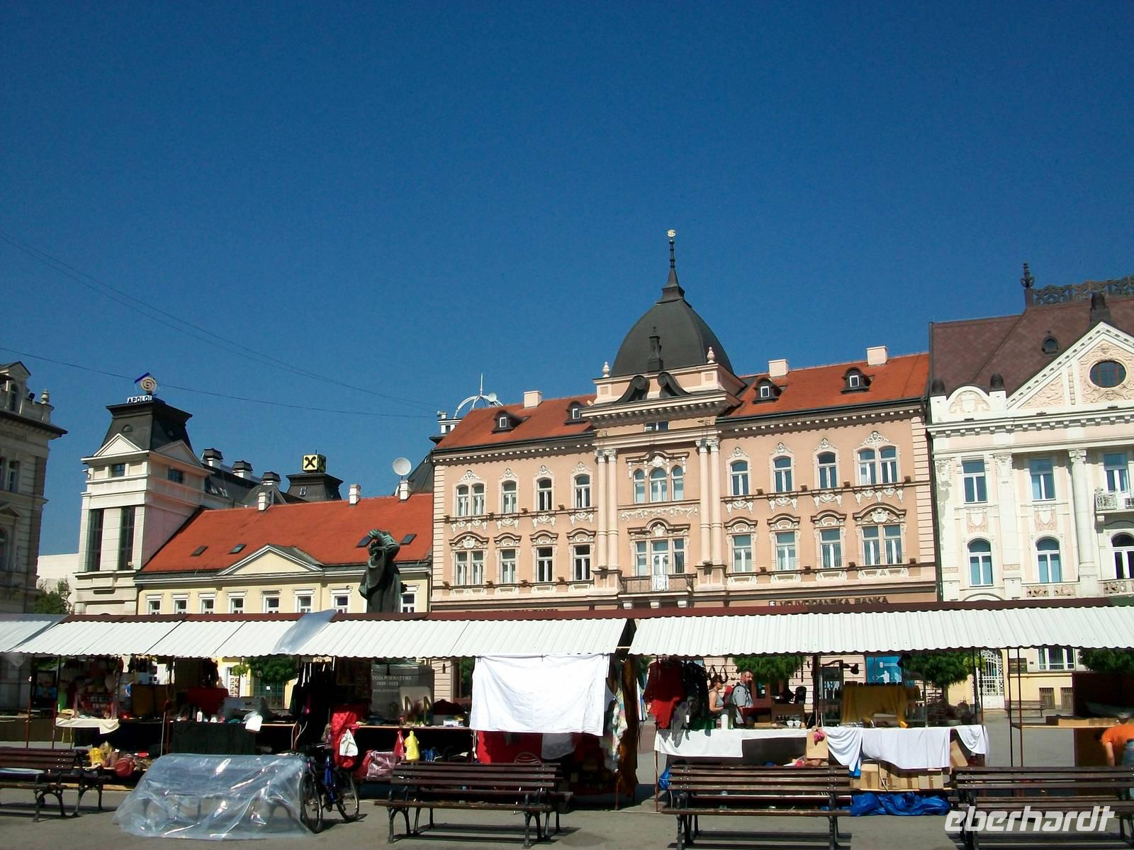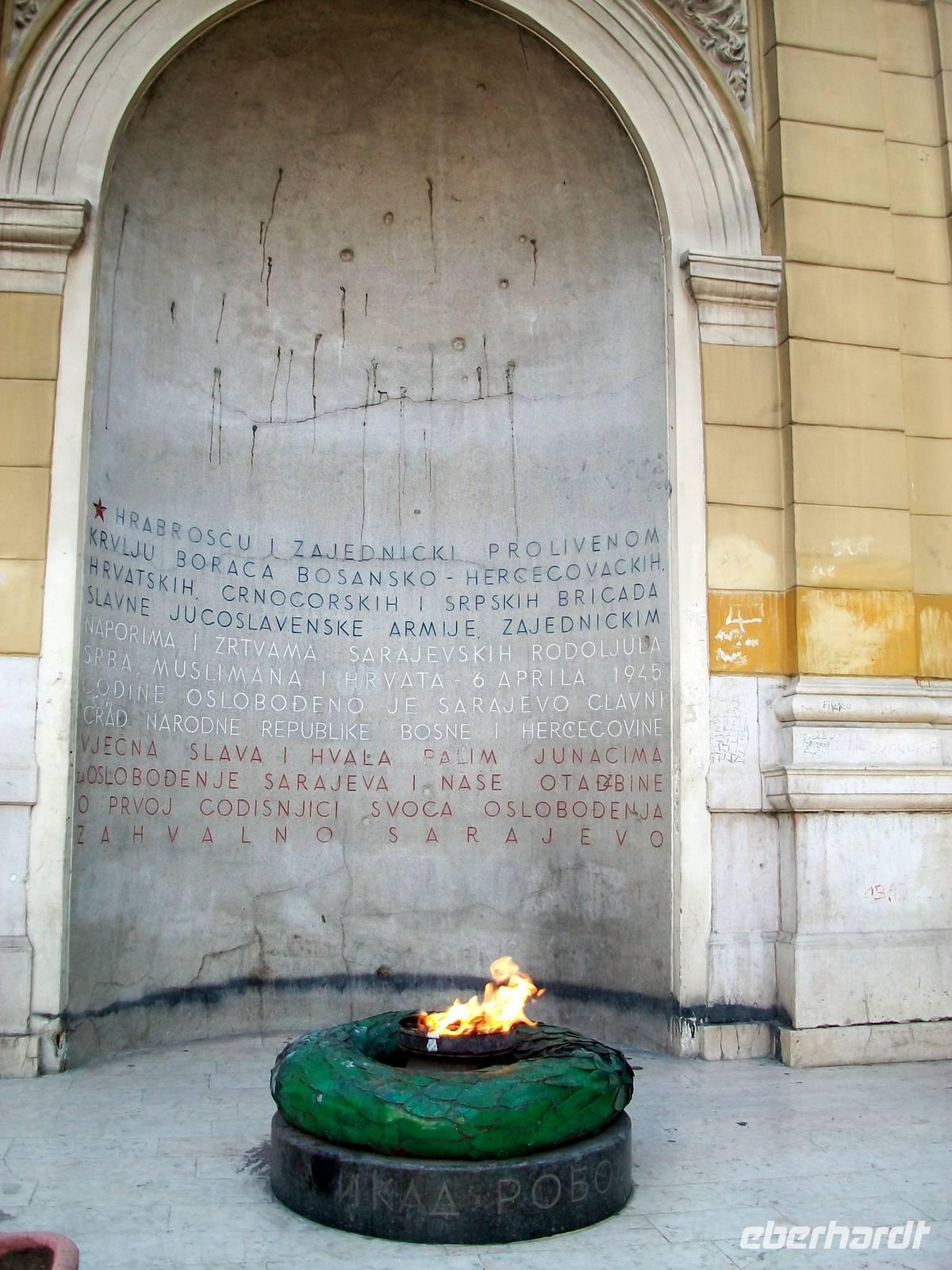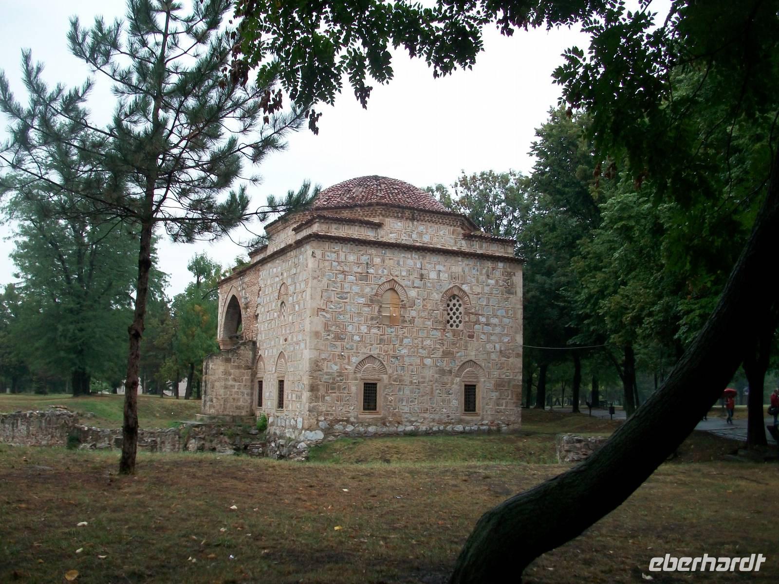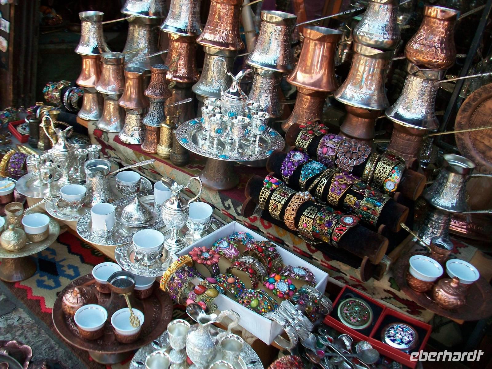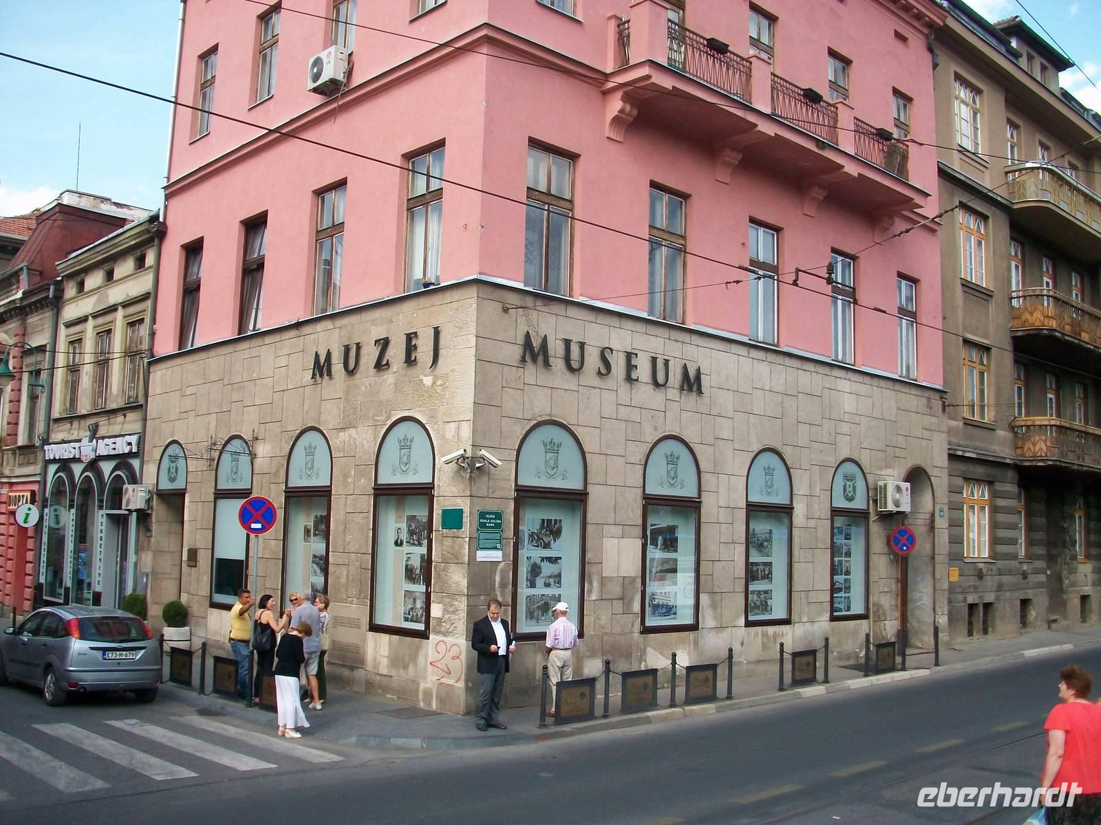 Der Rundgang beginnt an der Ewigen Flamme, sie erinnert an die Opfer des 2. Weltkrieges. Dann führt uns der Weg über die belebte Fußgängerzone zur serbisch- orthodoxen Kirche. Es ist ein schöner Bau aus Habsburger Zeiten; dieser Teil der Stadt stammt aus der österreichisch- ungarischen Monarchie. Dann führt uns der Weg zum jüdischen Viertel und der Synagoge und als wir weiter gehen, überschreiten wir die Grenze zum Morgenland. Der alte türkische Teil mit den so typischen niedrigen Häusern, dem Basar und den Moscheen, blieb erhalten wie er war, und somit sind wir hier mit nur einem Schritt im Orient angelangt!