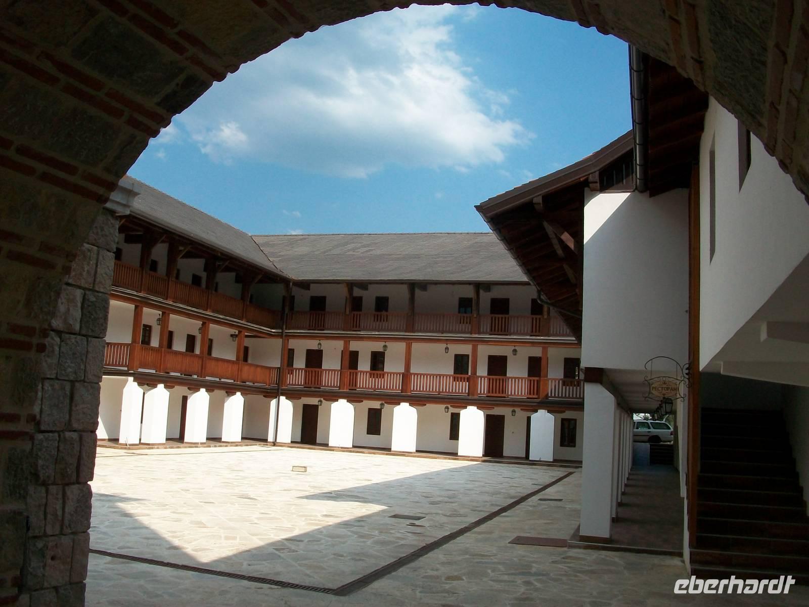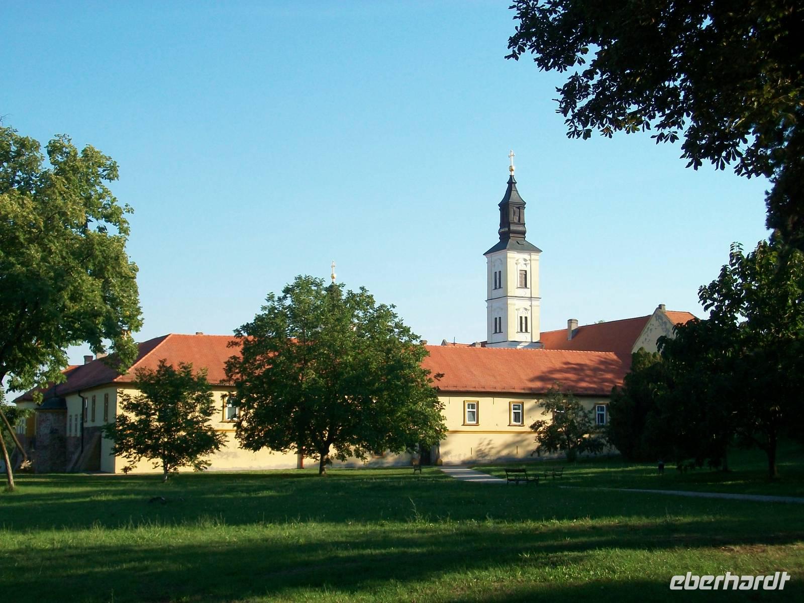 Über das schöne Land der Vojvodina und durch den Nationalpark Fruška Gora gelangen wir zu einem der zahlreichen Klöster hier. Es ist das Kloster Krušedol und in dieser Oase der Ruhe machen wir uns vertraut mit der serbischen Orthodoxie. Nach einem kurzen Spaziergang stehen wir im Innenhof und staunen über diese gepflegte Anlage. Hier grünt und blüht es; fleißige Hände halten diesen Klostergarten in einem guten Zustand und im Inneren der Kirche bestaunen wir die schönen Malereien.