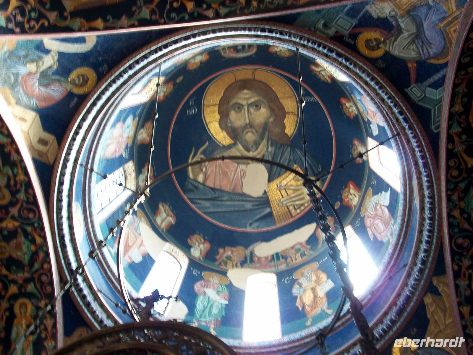 Zunächst einige Erklärungen auf der Burg oberhalb der Stadt mit einem schönen Panoramablick auf die mazedonische Metropole, dann ein Spaziergang zur Moschee. Auch hier nun wieder ein Schmelztiegel der verschiedenen Völker und Religionen, denn unser nächster Weg führt uns zur orthodoxen Erlöserkirche mit der nicht zu beschreibenden Ikonenwand welche aus Holz geschnitzt wurde und in ihrer filigranen Gestaltung und beeindruckenden Symbolik zu den ganz großen Kunstwerken zählt, die der Balkan zu bieten hat.
