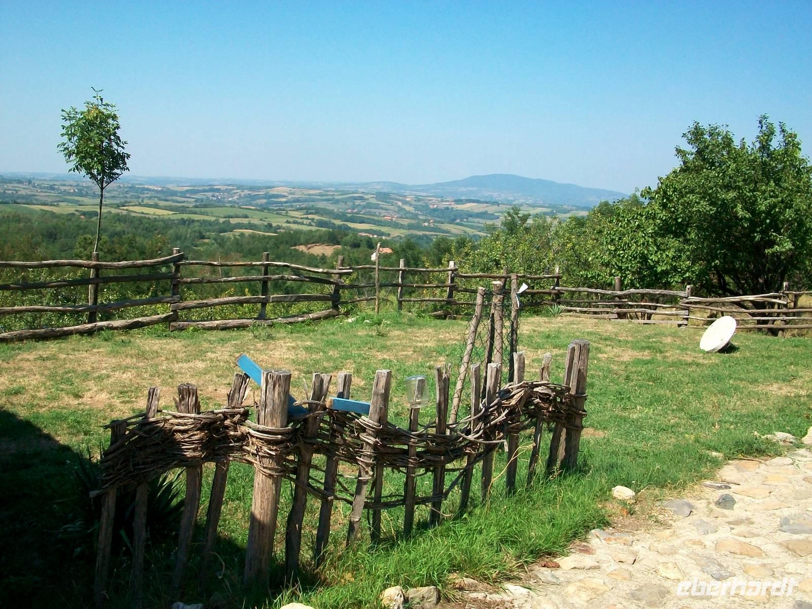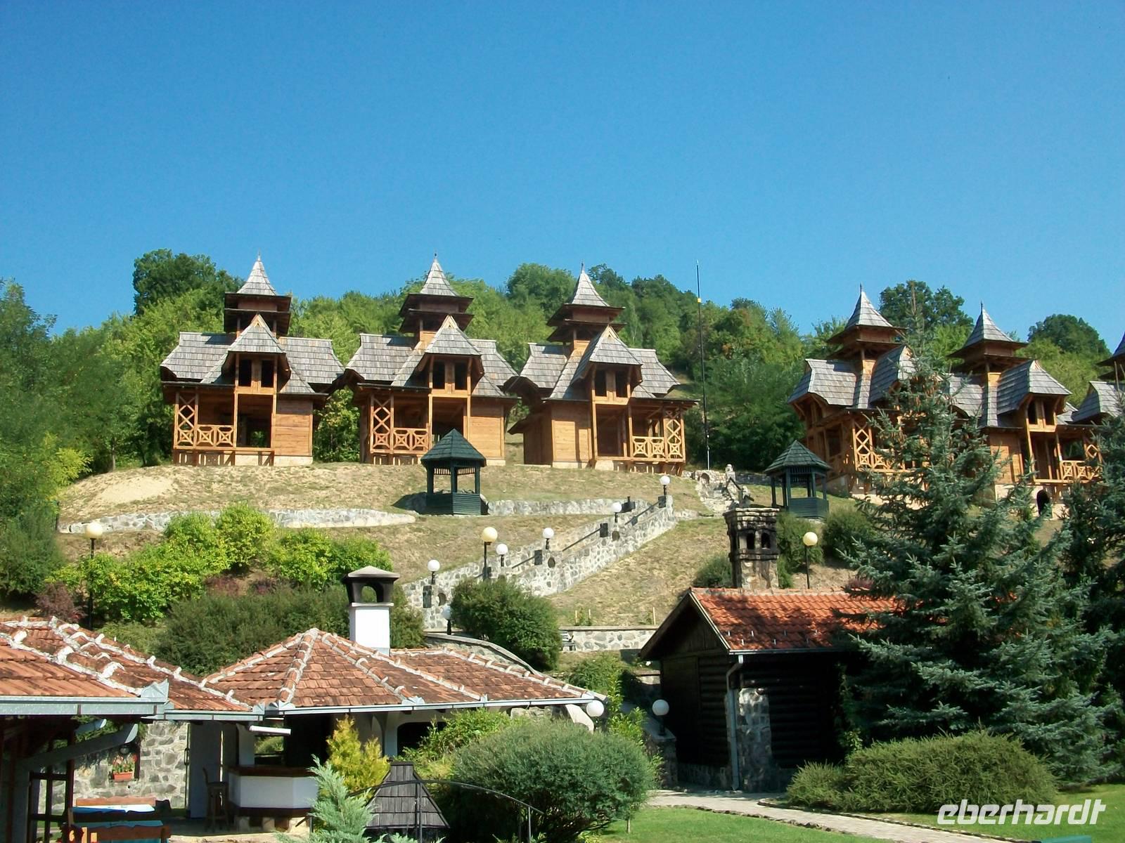 An der Stadt Užice vorbei, einst Hauptstützpunkt von Titos Partisanen, kommen wir den Erhebungen des Zlatiborgebirges näher. Eine kleine Straße zweigt von der Hauptstraße ab und nun erklimmen wir über eine abenteuerliche Serpentinenstraße die Höhen des Gebirges. Hier oben ist es recht einsam, wir sehen kleine Dörfer mit wenigen Häusern aber auch fleißige Bauern die sich um Land und Vieh kümmern. Das ist die herbe Romantik des Balkans die uns gleichzeitig fremd und vertraut erscheint; in unseren Vorstellungen ist es das Bild welches wir am ehesten von diesen Ländern haben.