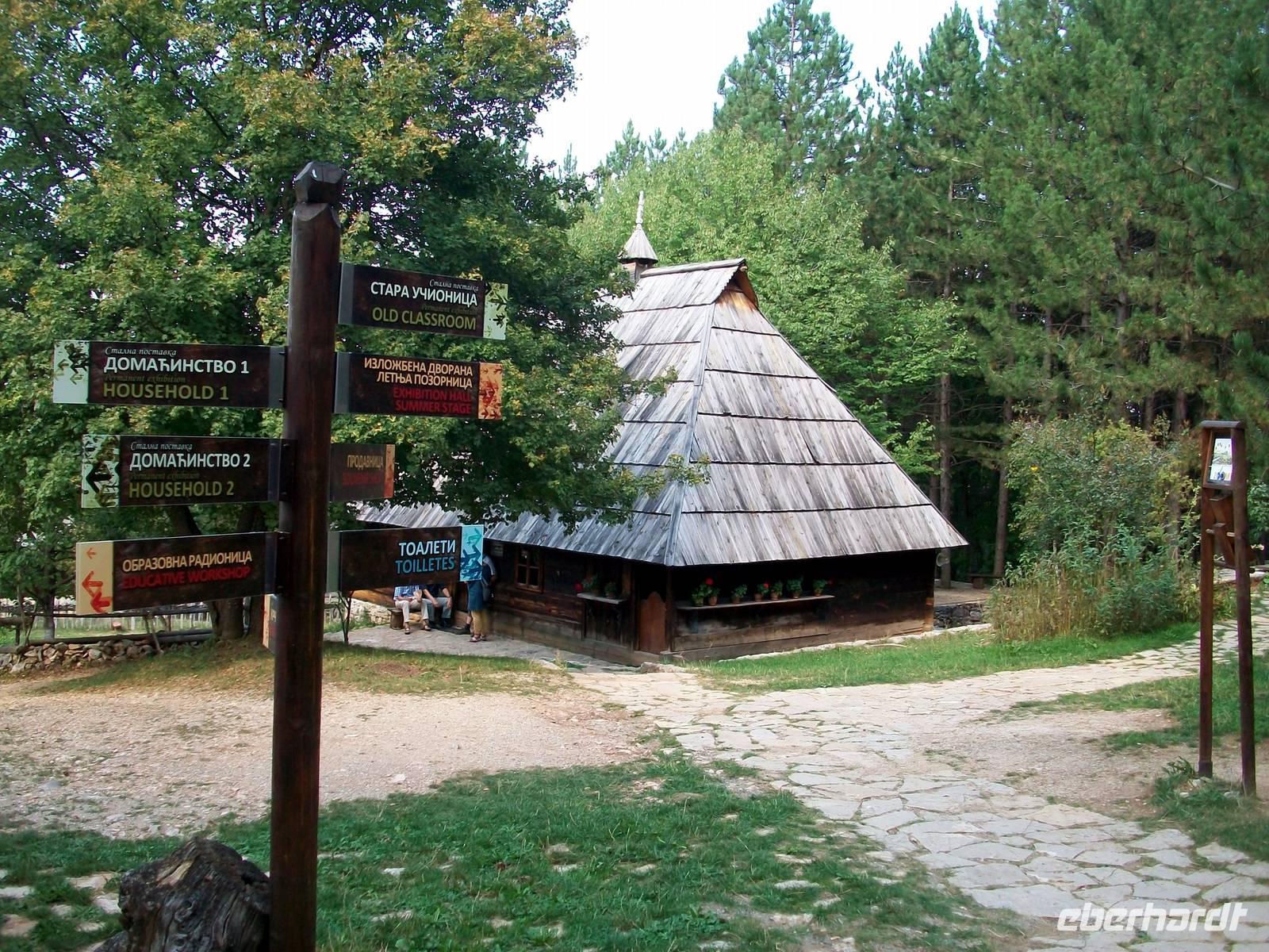 Am Ende der Straße steht das Ethnodorf Sirogojno mit uralten Bauernhäusern.