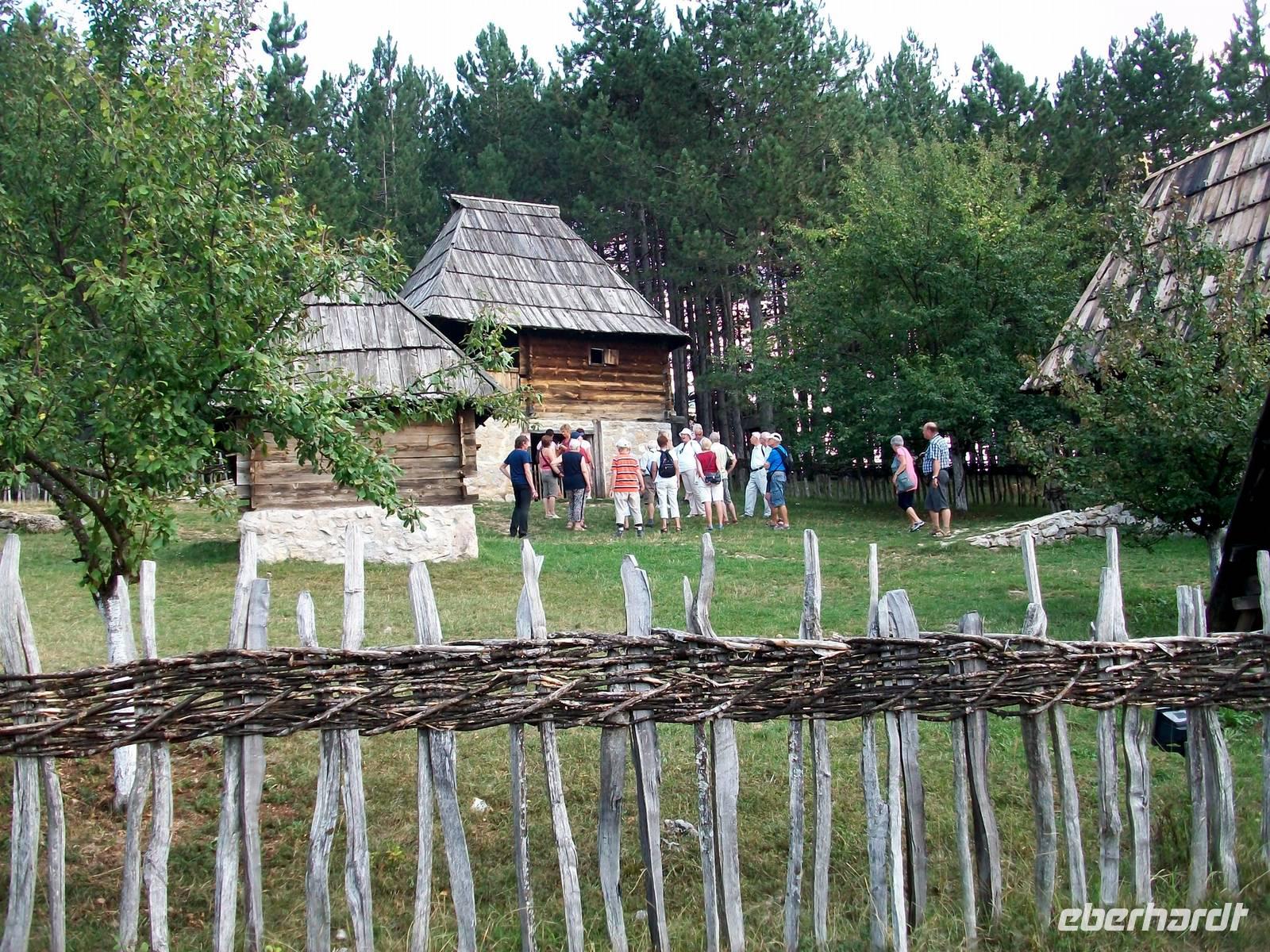Nach einem kurzen Spaziergang langen wir vor einem solchen an, und hier, inmitten des Waldes, erwartet uns ein reichhaltiges Mittagessen mit serbischen Spezialitäten. In der uns umgebenden schönen Natur schmeckt es noch einmal so gut und im Anschluss gehen wir auf eine Zeitreise und schauen uns die Zeugnisse vergangener Jahrhunderte an. Ob das Wohnhaus des Bauern, eine Schmiede, der Stall oder der Pflaumentrockner, alles wurde hier liebevoll zusammengetragen und für die Nachwelt aufbewahrt; dieser Fleiß und das Engagement der Menschen die das schufen, kann nicht hoch genug eingeschätzt werden!