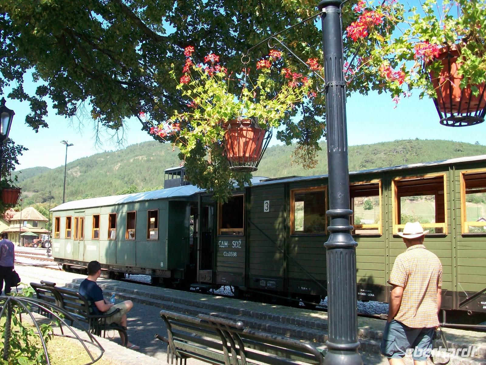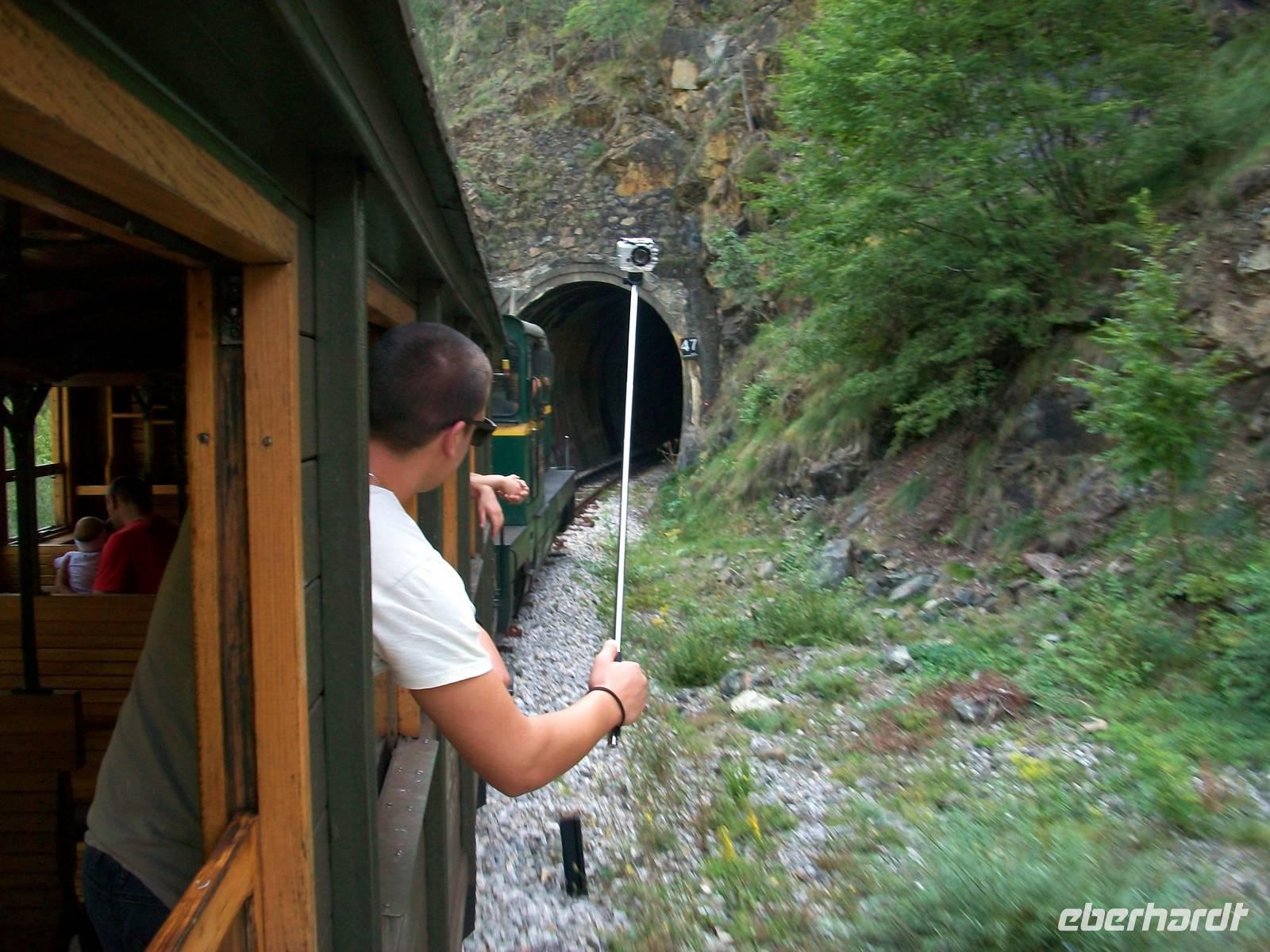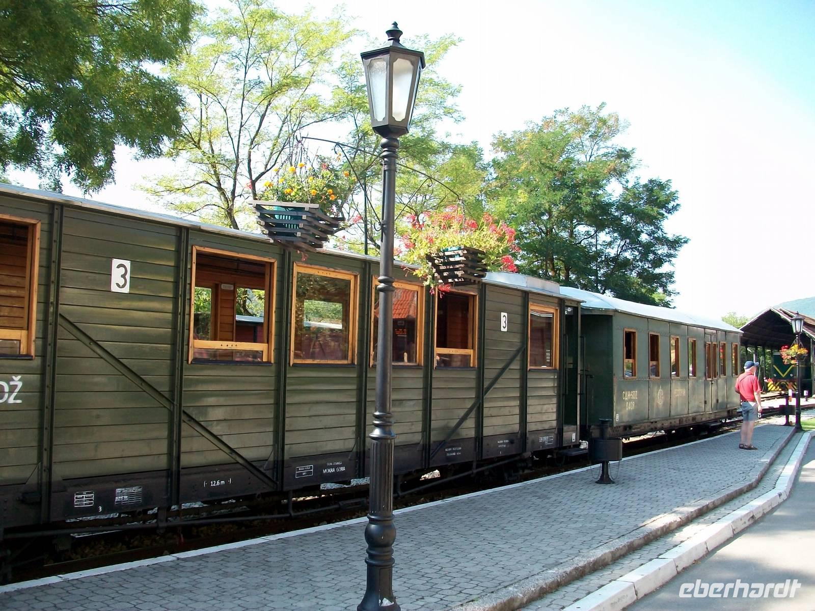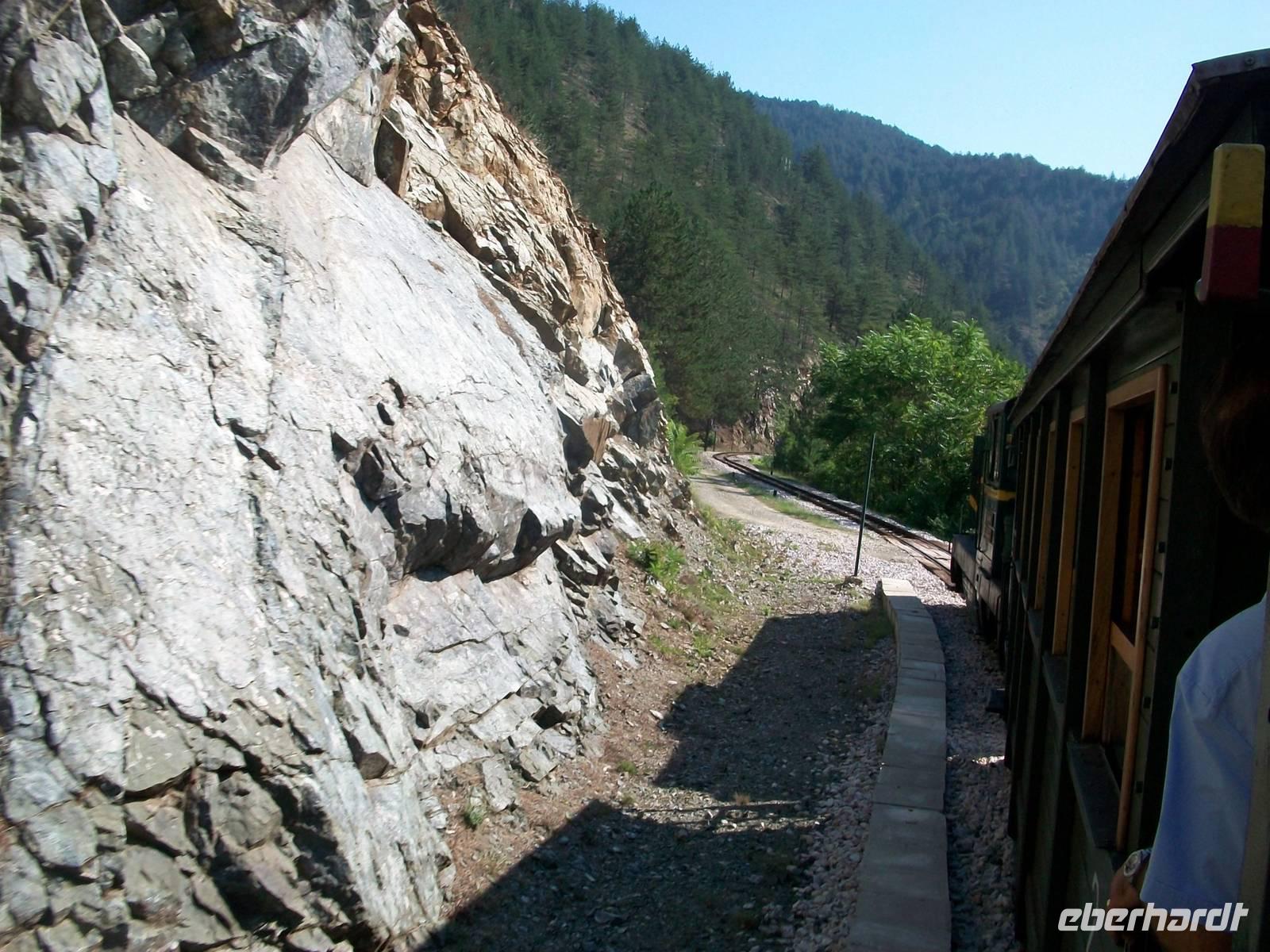 10.30 Uhr, ein schriller Pfiff gibt das Abfahrtssignal, der Zug ruckt an und die romantische Fahrt durch die Bergwelt Serbiens beginnt. Die Wagen sind historisch und sehr liebevoll gestaltet und irgendwie fühlen wir uns auch heute in der Zeit zurückversetzt. Durch Tunnel und über Brücken führt die Fahrt, dann wieder an Schluchten vorbei und durch lichten Wald hindurch mit Blick auf das schöne Land, so vergeht die Zeit wir im Flug. Am Endpunkt wird die Lok umgespannt und mit ausreichend Fotostopps geht die Fahrt zum Ausgangspunkt zurück. Dabei werden wir von dem schönsten Sommerwetter verwöhnt was man sich überhaupt vorstellen kann.