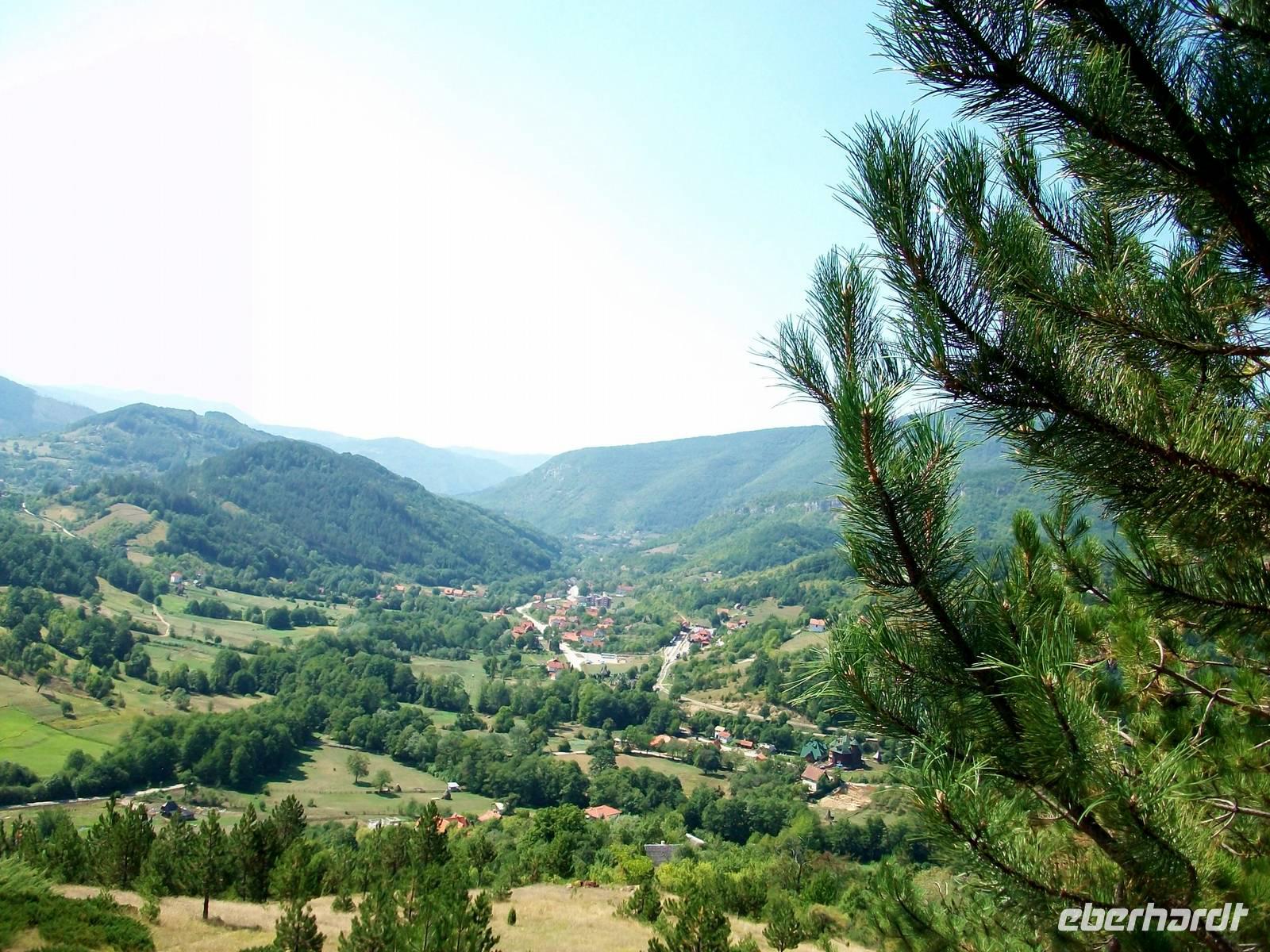 Eine schmale Straße führt uns hinauf und durch einsame Dörfer hindurch, manch Schafherde ist dabei zu sehen, und das Land macht dabei einen unberührten Eindruck. Bald wird der Blick frei, dann wieder verengt eine schmale Schlucht unseren Weg; diese abenteuerliche Straße führt fernab der Touristenrouten und hinterlässt bei uns den eigentümlichen Eindruck den nur der Balkan erzeugen kann.