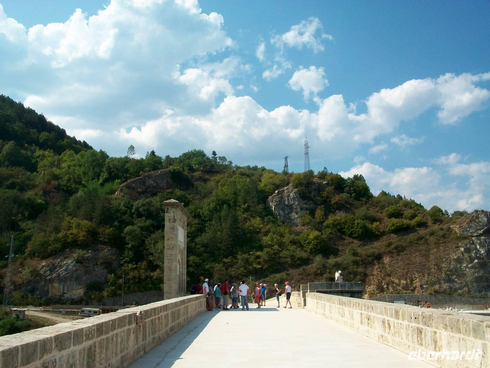 Bald langen wir in Višegrad an um uns die Brücke anzuschauen die Einzug in die Weltliteratur nahm. Der große Dichter Ivo Andric beschrieb das Leben dieses Ortes in seinem Roman über die Jahrhunderte hinweg, und wir weilen staunend vor diesem Zeugnis osmanischer Baukunst.
