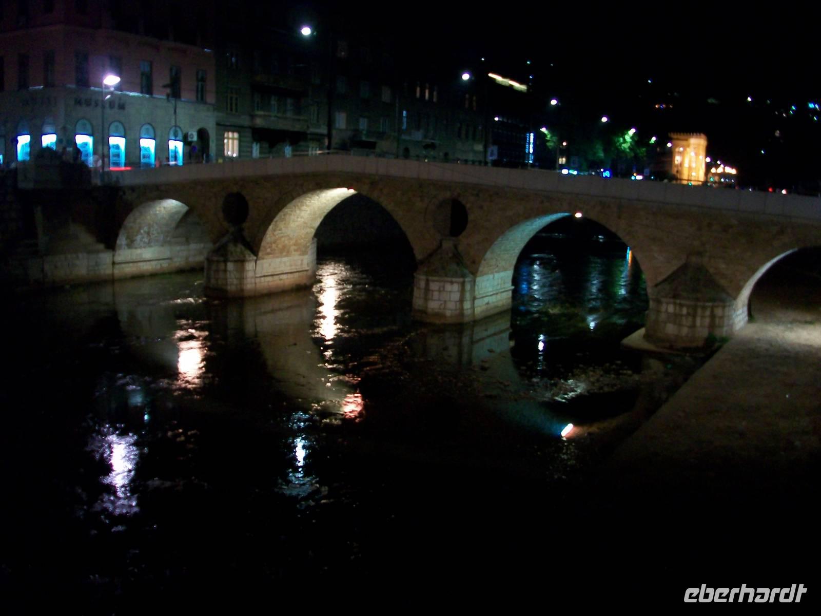 Der Rückweg zum Restaurant erfolgt durch einen schön beleuchteten Teil von Sarajevo und mit diesen Impressionen begeben wir uns später in das Reich der Träume.