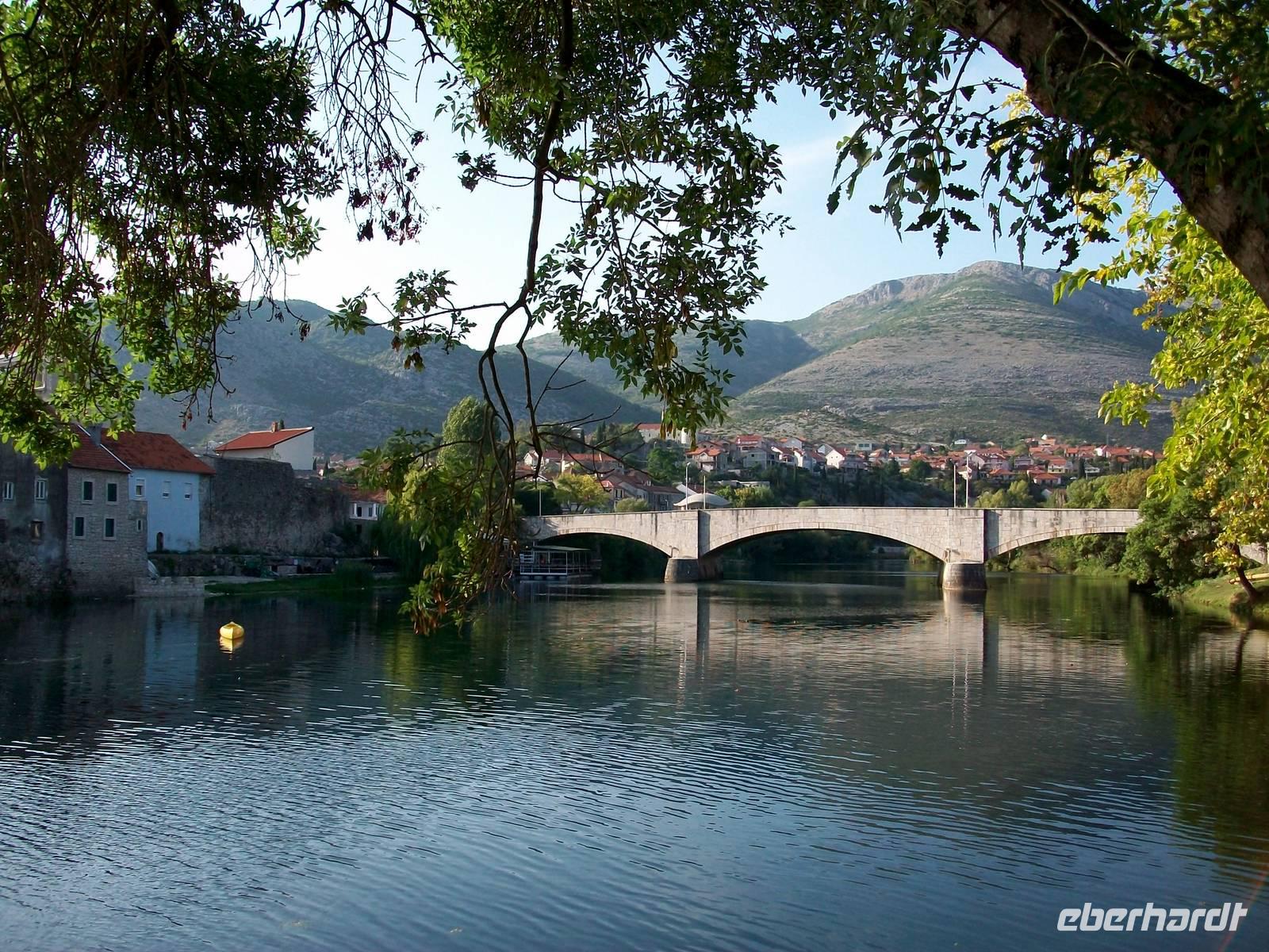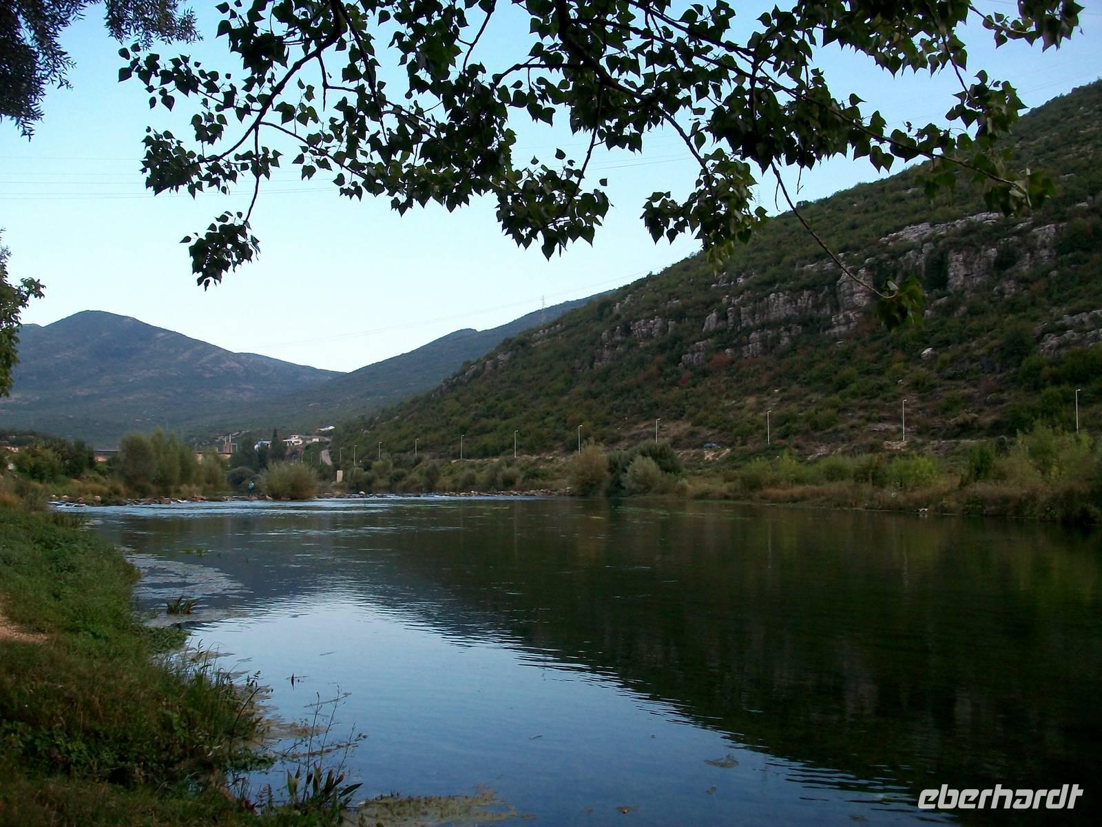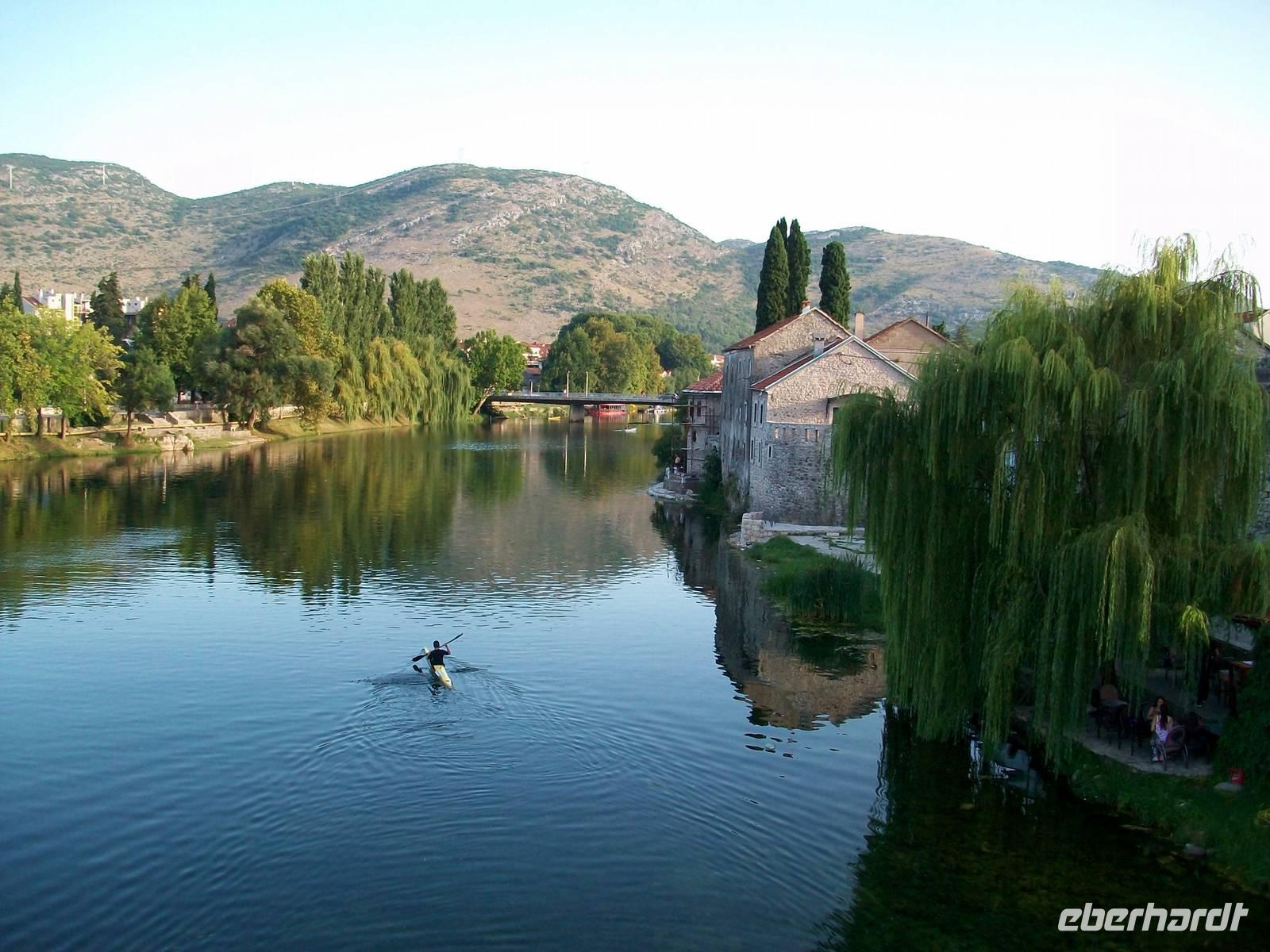 Kahl und verkarstet zeigt sich uns die herzegowinische Landschaft, nach zwei Stunden haben wir unser heutiges Ziel Trebinje erreicht. Ein kleiner Spaziergang mit Bogdanka bringt uns diesen beschaulichen Ort näher und später genießen wir, direkt am Fluss inmitten von Mutter Natur, ein romantisches Abendessen zu dem uns die Grillen ein abendliches Konzert liefern.