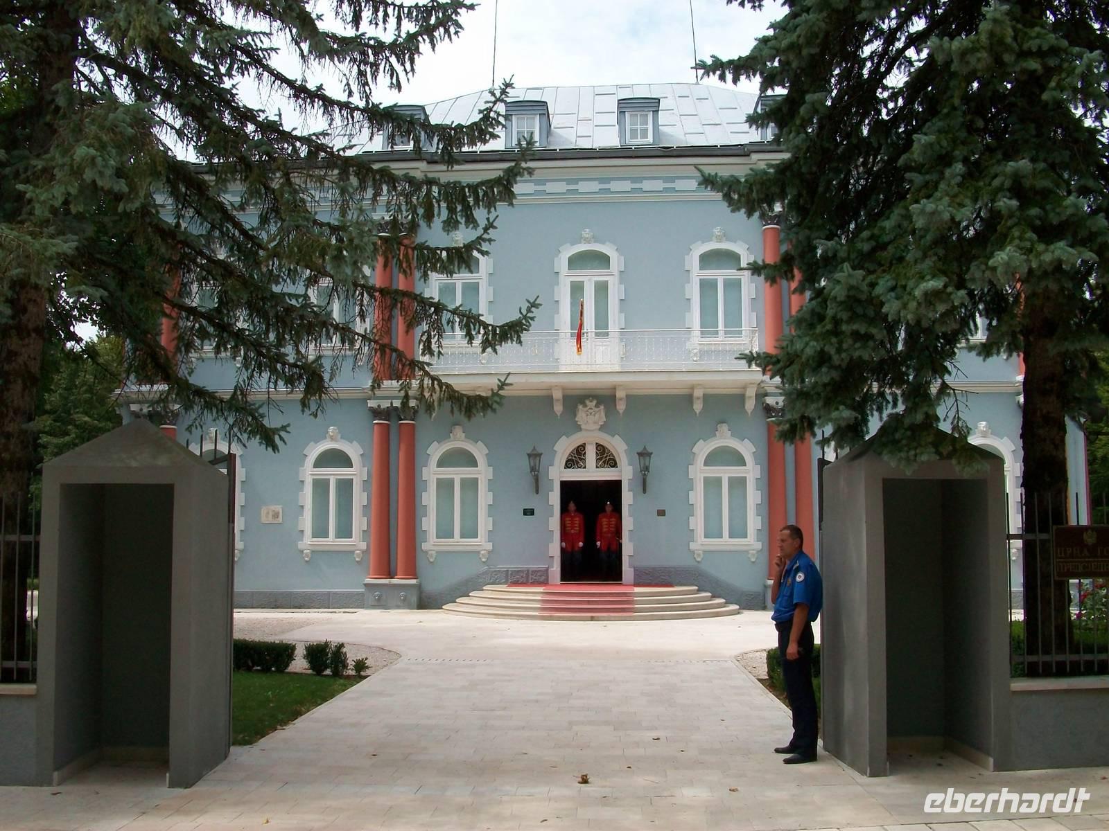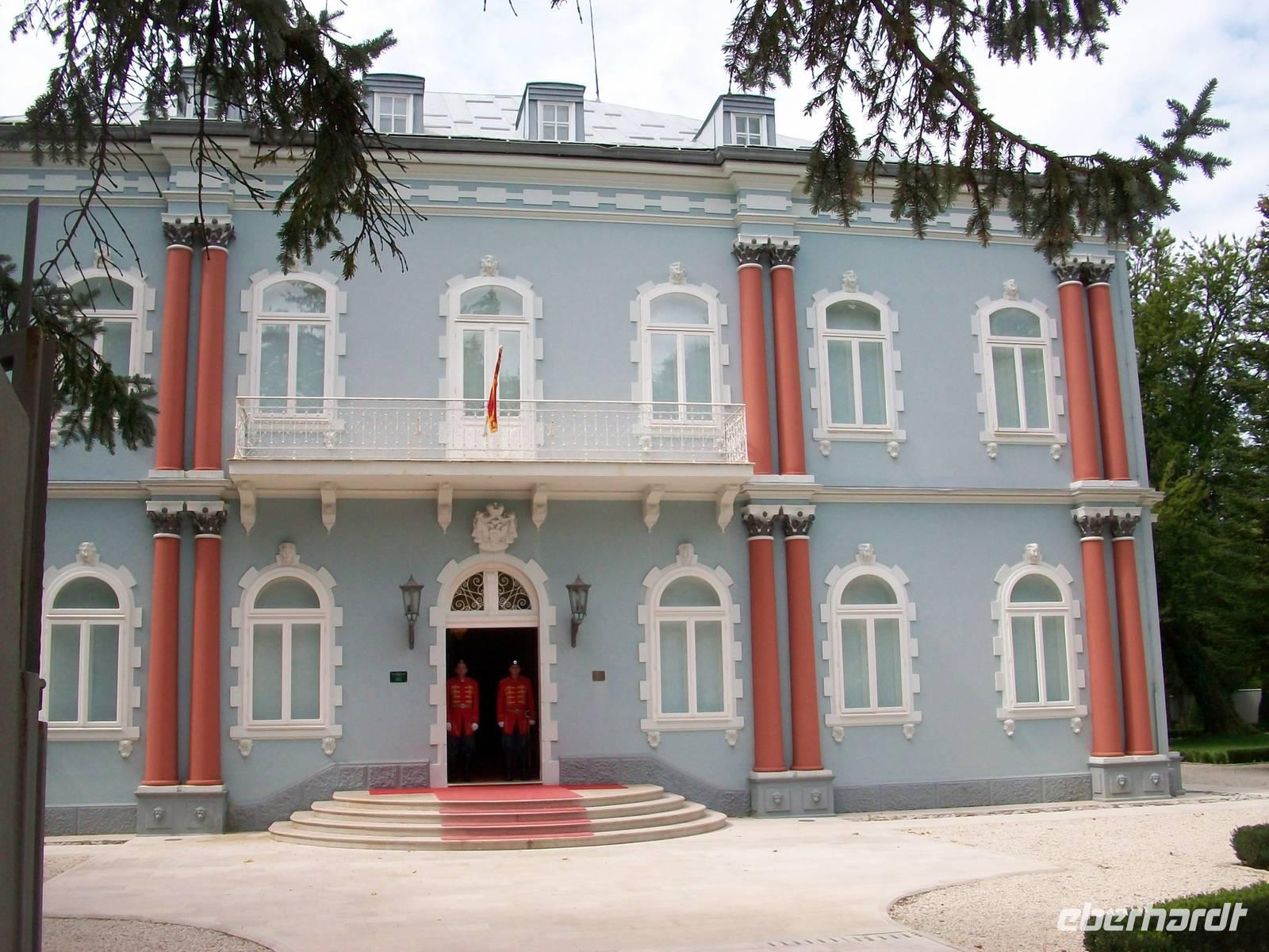 Entlang der orthodoxen Kirche, hier fand das letzte Königspaar die ewige Ruhe, gelangen wir bald zum bekannten Kloster. Danach schlendern wir hinunter zum Schloss welches gar keinen prunkvollen Eindruck macht. Im Inneren aber hat es einiges zu bieten; wir betrachten die Bilder des Königspaares, Orden und Auszeichnungen des Monarchen, dringen einen Stock weiter oben in das Privatleben des Herrschers ein und wir erfahren von Jelena dass ihm die eigene Familie das Wichtigste war. Wir sehen Speise- und Schlafzimmer und bekommen auch einen Eindruck wir hier die Prinzessinnen gelebt haben- alles sehr sehenswert.