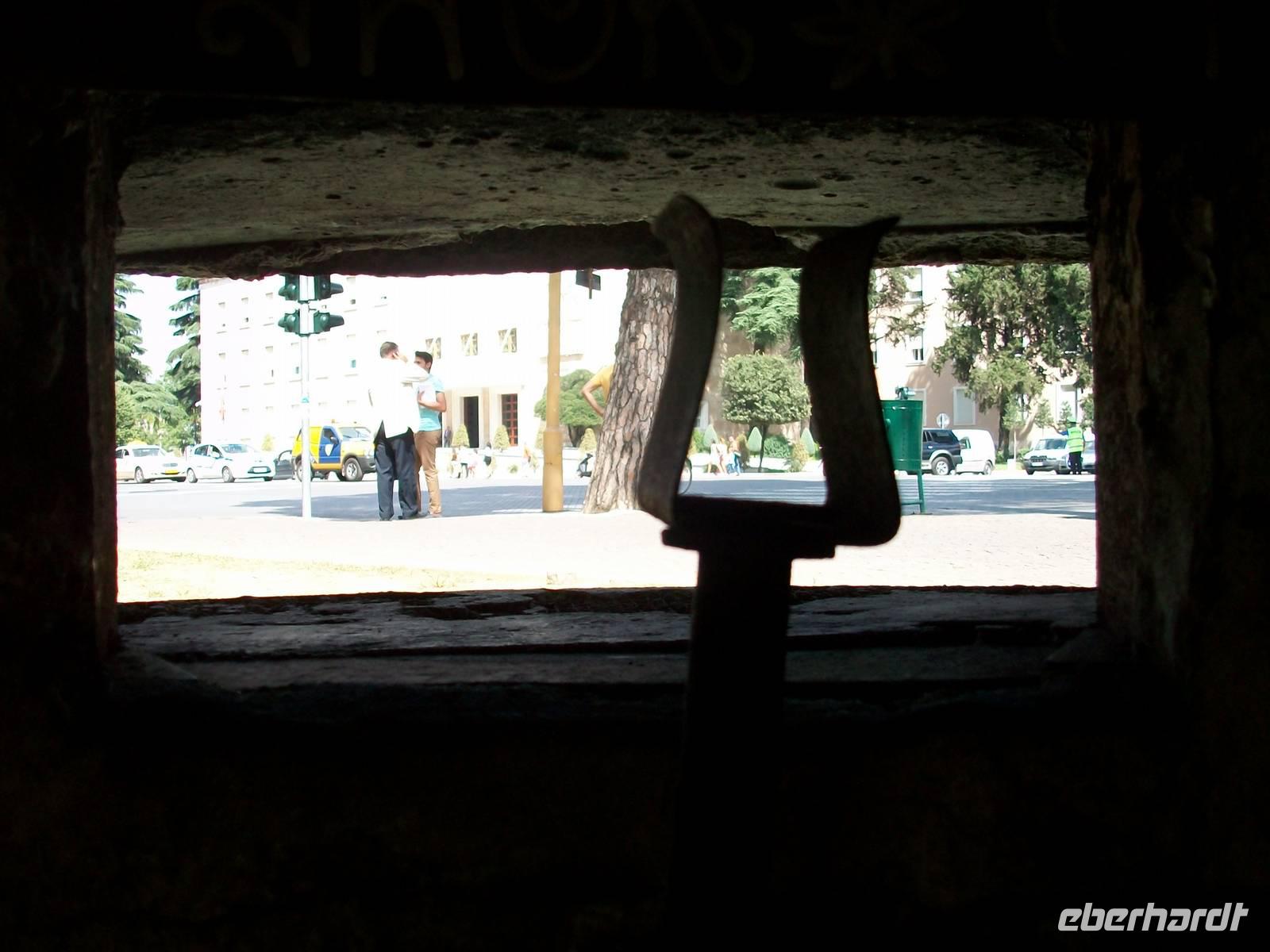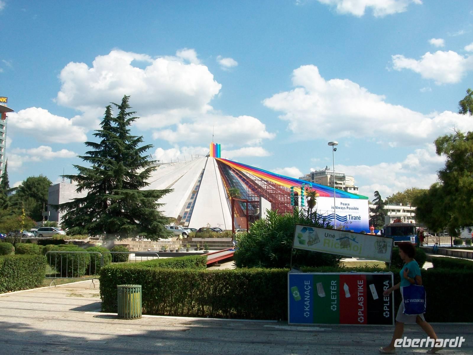 Vorbei an der Universität gelangen wir auf der Hauptstraße zu einem Bunker aus den Zeiten des Diktators Enver Hoxha. Viel gibt es aus diesen bizarren Zeiten zu erzählen; begleitet wird das ganze von einem ununterbrochenen Hupkonzert der vorbeifahrenden Autos.