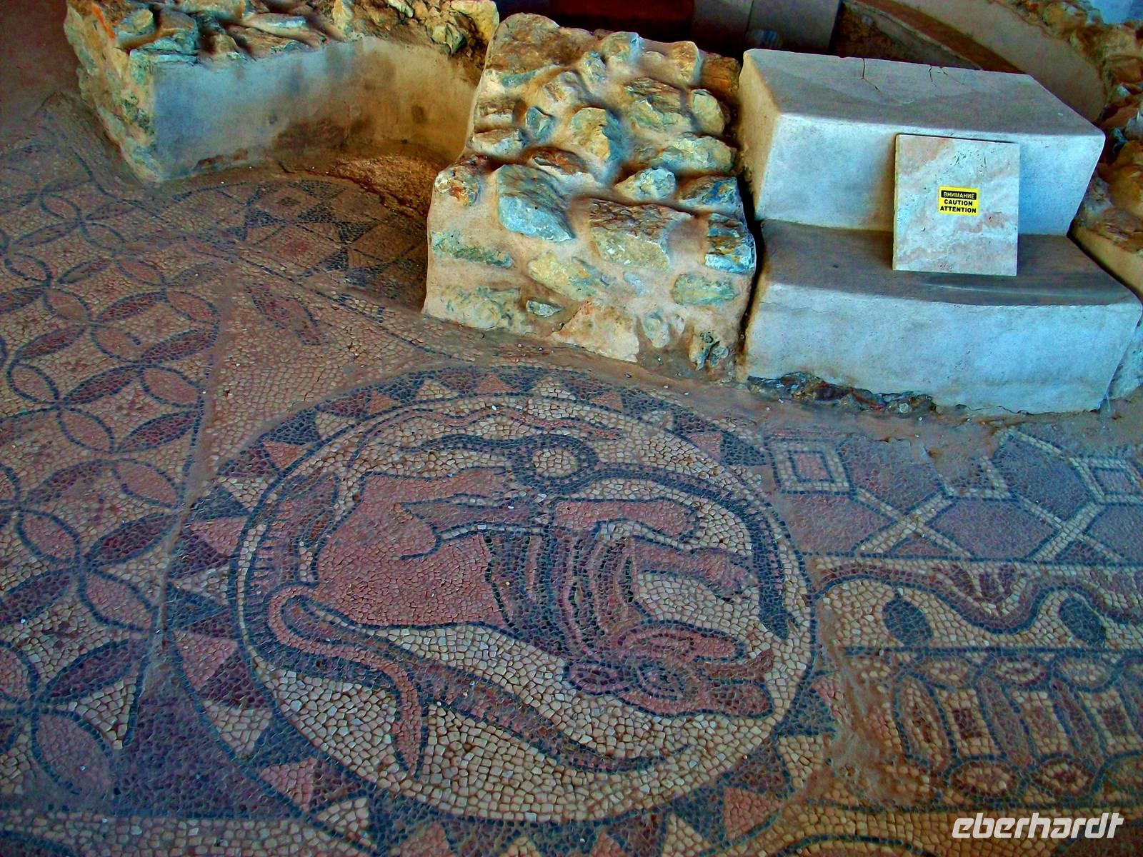 Michael weiß viel aus der Geschichte der Region zu erzählen die nach Jahrtausenden zählt. Offenbar wird es als wir an den antiken Ausgrabungen stehen und staunend die schönen Mosaikarbeiten sehen die von großem Geschick der Künstler zeugen. Dabei schweift der Blick immer wieder hinunter zum See über den die Sonne ihre warmen Strahlen sendet, und als wir dann langsam wieder hinuntergehen, geht auch die wissenswerte Führung von Michael zu Ende.