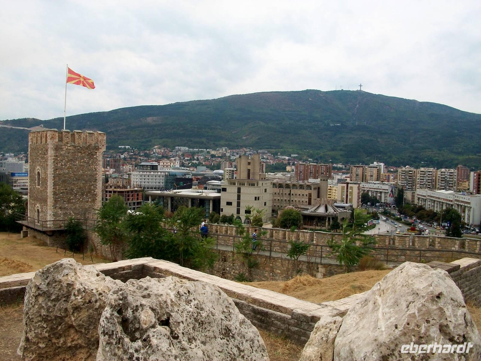 Über eine lange Zufahrtsstraße gelangen wir schließlich in das Zentrum der Mazedonischen Hauptstadt Skopje. Hier, wie überall auf unserer Reise, gestaltet sich der Verkehr leicht chaotisch, aber mit unserem sicheren Chauffeur Branislav gelangen wir schließlich hinauf zur Burg, hier werden wir schon von Bogdan erwartet, er wird uns in den nächsten Stunden seine Heimat zeigen.