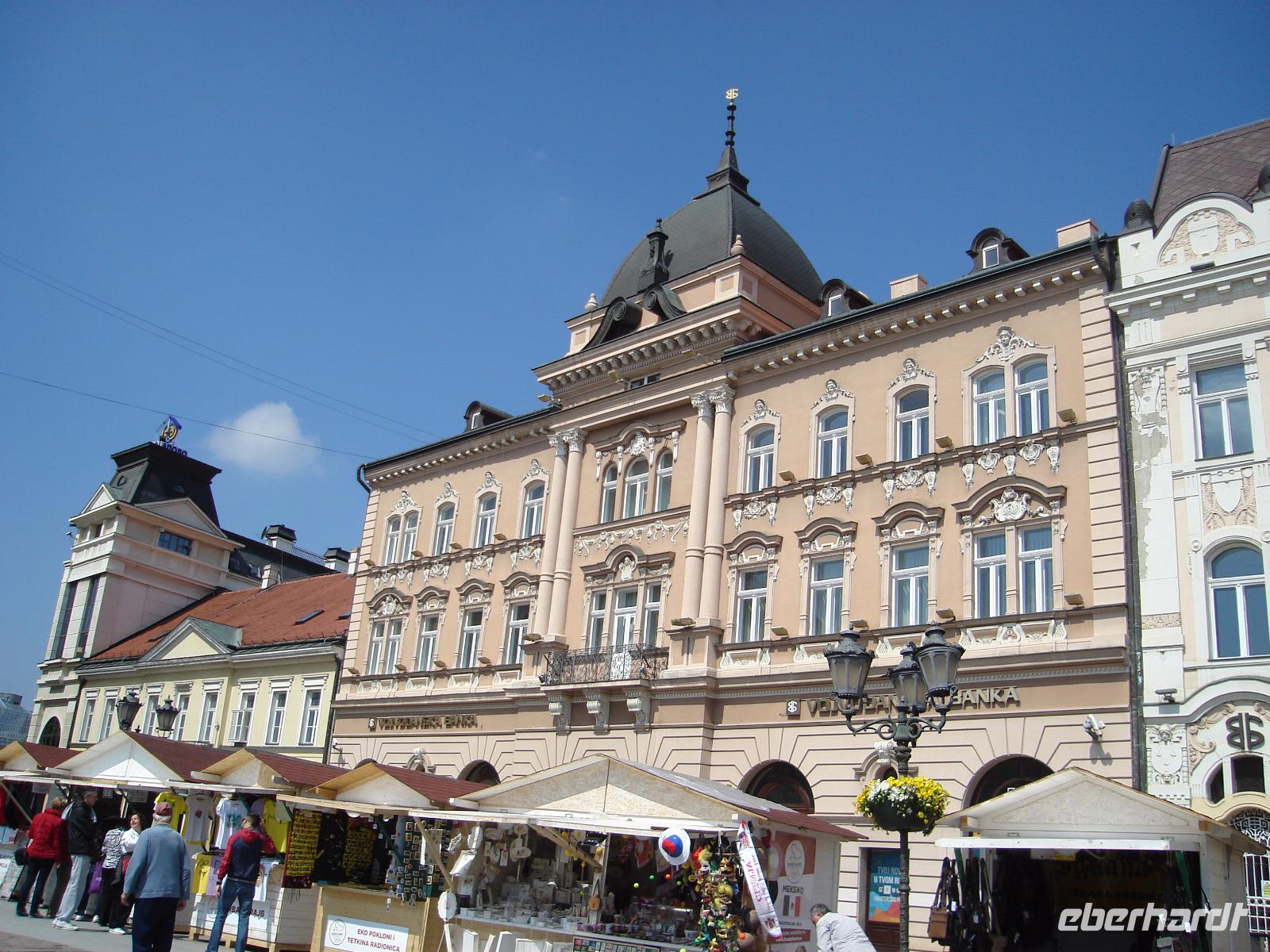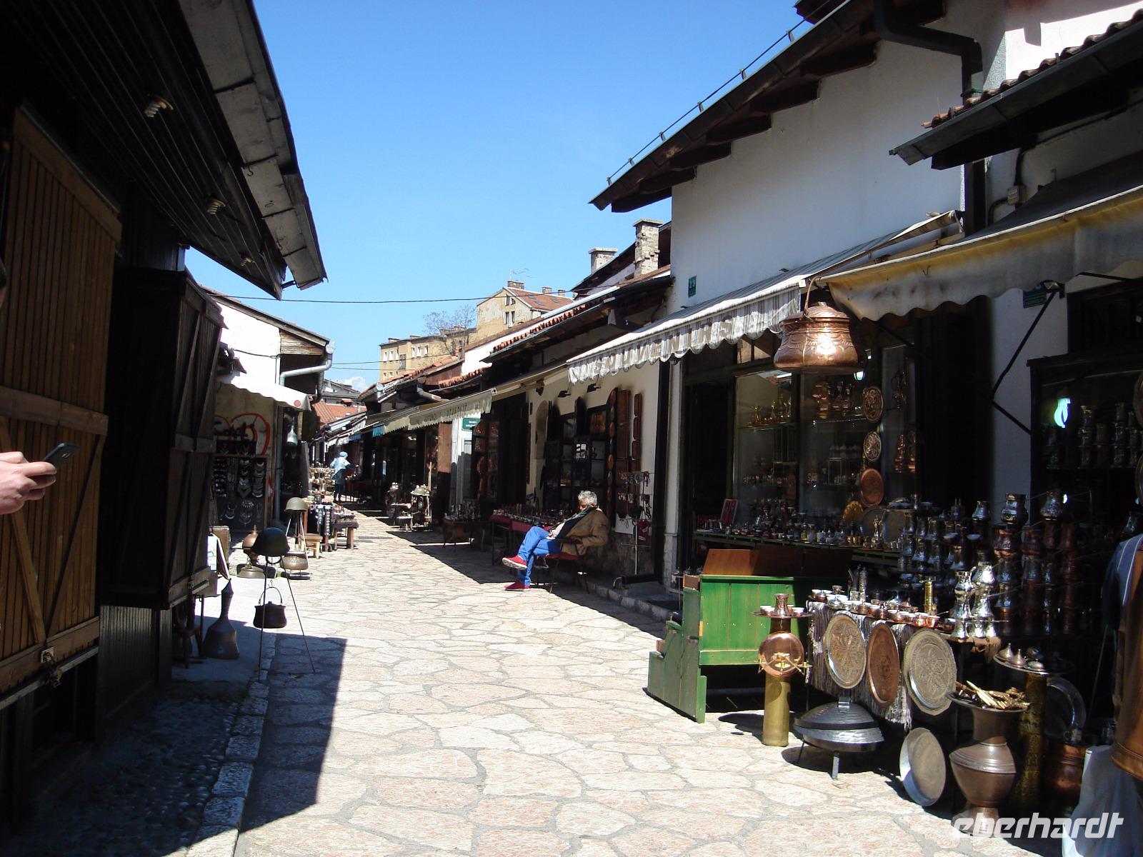 Gleich nach dem Frühstück haben wir einen langen Rundgang durch diese faszinierende Stadt. Wir gehen zum Museum, das an das Attentat auf den Österreichischen Thronfolger Franz Ferdinand und seine Frau erinnert. Dieses Attentat eines serbischen Nationalisten löste bekanntlich den 1. Weltkrieg aus. Über die belebte Fußgängerzone kommen wir zur serbisch-orthodoxen Kirche. Vorher hatten wir das jüdische Viertel mit der Synagoge gesehen, eine Moschee besucht und die Ewige Flamme gesehen, die an die Opfer des 2. Weltkrieges erinnert. Das Alte Rathaus, im letzten Krieg ausgebrannt, erstrahlt nun wieder im alten Glanz.