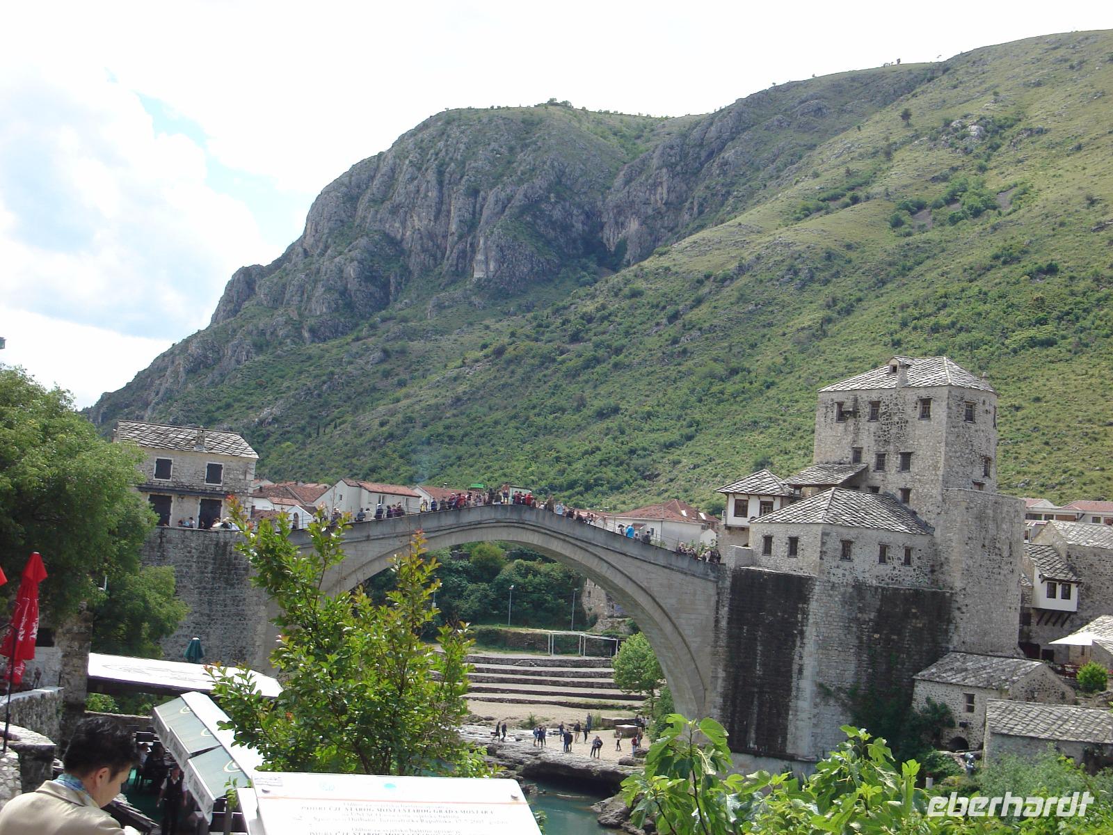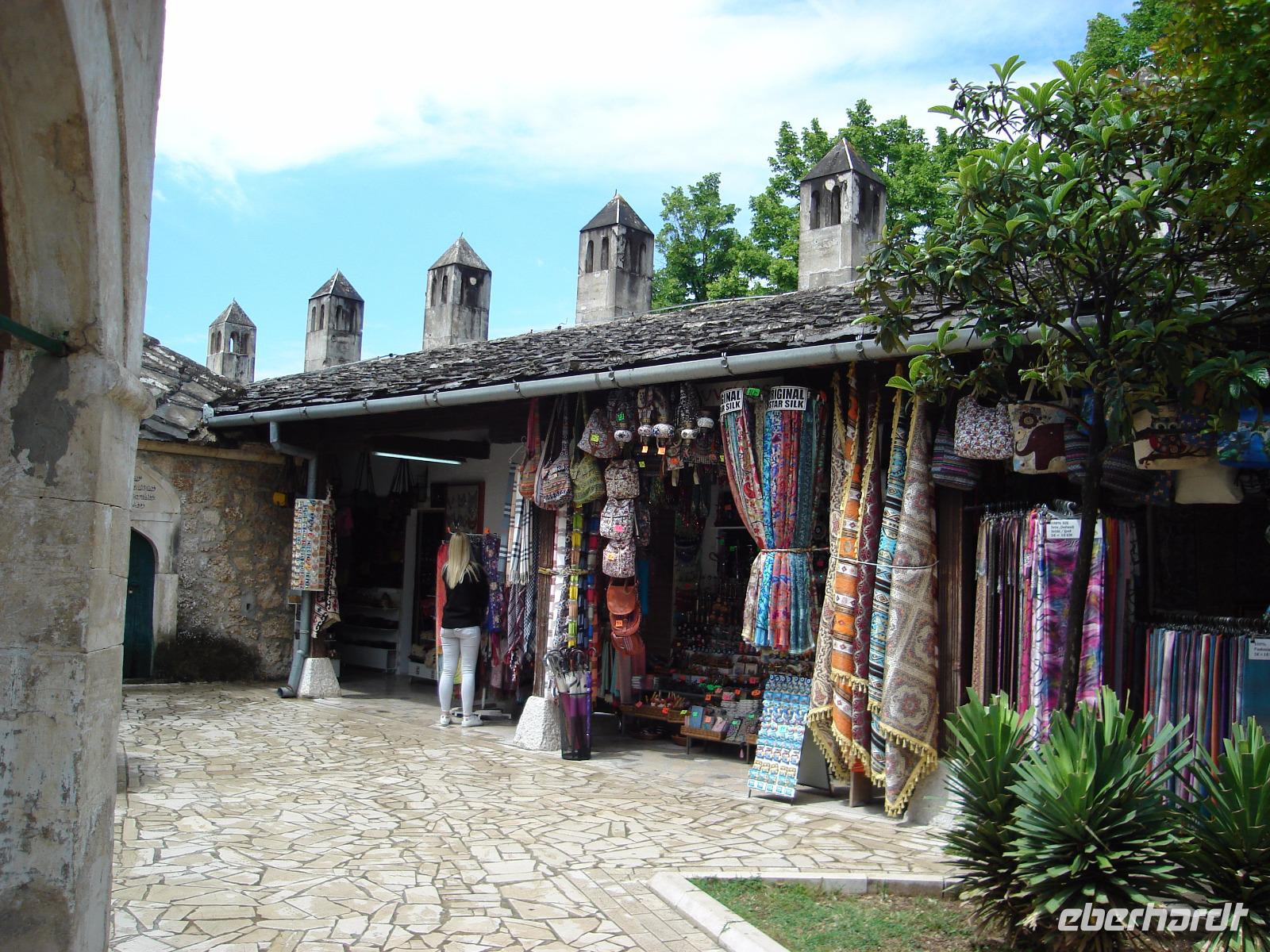 Über Mostar geht bei unserer Ankunft am Franziskanerkloster ein mächtiges Gewitter nieder. So besuchen wir zuerst das Türkische Haus. Inzwischen ist das Gewitter abgezogen, und wir können unseren Rundgang fortsetzen: zunächst gehen wir zur berühmten Alten Brücke. Sie ist das Wahrzeichen der Stadt und steht auf der Liste des UNESCO-Weltkulturerbes. Die orientalische Altstadt mit ihren Häusern und Moscheen zieht uns ebenfalls in ihren Bann.