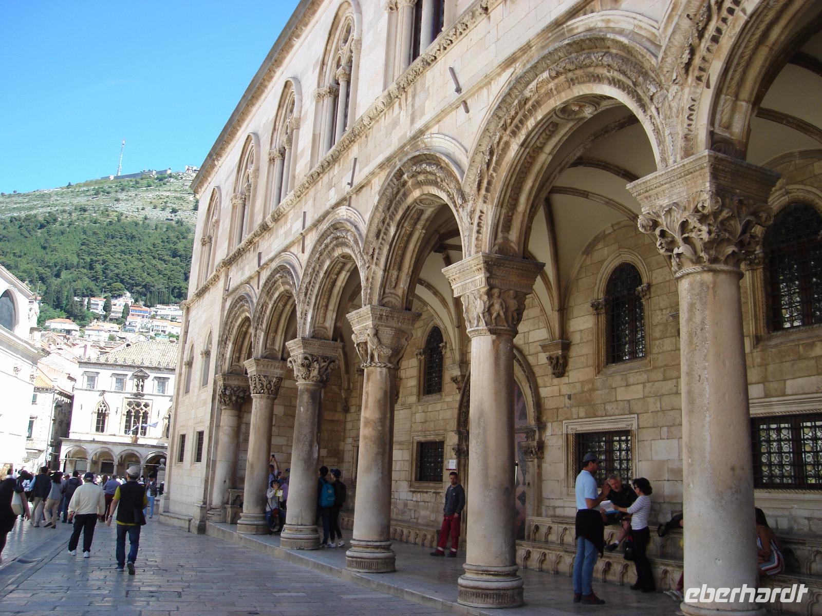 Heute strahlt die Sonne ganz besonders. Genau das richtige Wetter für Dubrovnik, die Perle der Adria. Am Pile-Platz, dem Eingang zur Altstadt, wartet unsere Stadtführerin. Überhaupt sind wir dort nicht allein. Diese Stadt wollen natürlich alle sehen. Zunächst gehen wir zum großen Brunnen. Es folgt das Franziskanerkloster und der Roland am Markt. Die gesamte Altstadt innerhalb der hohen Stadtmauer, über die man auch gehen kann, wird bestimmt von alten Gassen, berühmten Plätzen und Kirchen. Wir sehen auch den Uhrturm, den Rektorenpalast und kommen schließlich zum Alten Hafen. Diese Stadt hat eine bewegte Geschichte, erlebte Blüte und auch Angriffe.