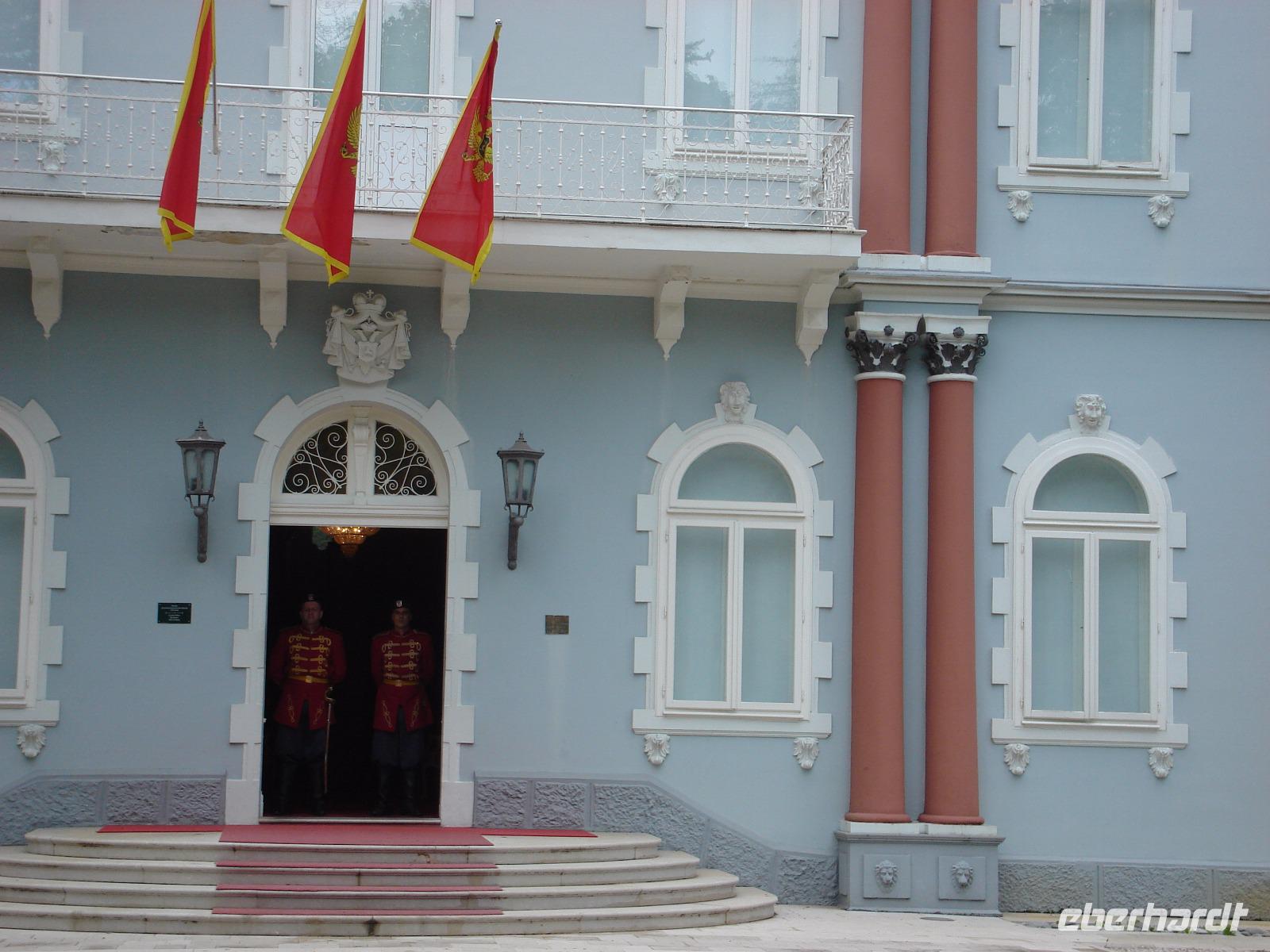 Unser 9. Reisetag bietet uns zwei Alternativen. Einige Gäste wollen den schönen Wellness-Bereich des Hotels nutzen und etwas Freizeit genießen. Die meisten nehmen jedoch am Ausflug in die alte montenegrinische Königsstadt Cetinje teil. Überall im Land werden neue Straßen gebaut. Diesmal traf es uns, und wir mussten wegen einer Totalsperrung der Zufahrtsstraße den viel längeren Umweg über Podgorica nehmen. Aber die schöne Strecke hat uns entschädigt. Auch hier wusste Bogdanka gut Bescheid. In Cetinje trafen wir unsere örtliche Reiseleiterin Jelena, die wir schon vom Rundgang in Kotor kannten. Wir sahen das Schloss, die orthodoxe Kirche, zahlreiche Gebäude, die früher Botschaften gewesen waren. Aber wir bummelten auch allein ein wenig durch den Ort, tranken einen Kaffee, machten ein paar Einkäufe.
