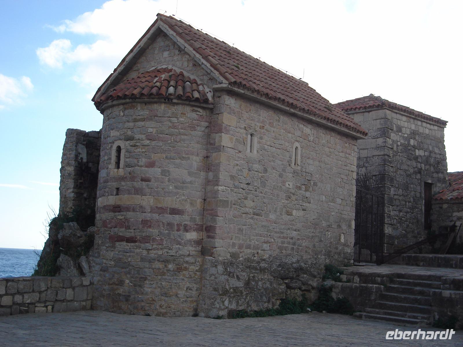 Vor dem Abendessen lud uns Bogdanka noch auf einen Rundgang durch die sehr schöne Altstadt von Budva ein. Wir sahen erneut ein Kleinod, eine Stadt mit dicken Mauern und verwinkelte Gassen, alten Kirchen. Durch die Gassen promenierten Gäste und Einheimische, wir immer dazwischen.