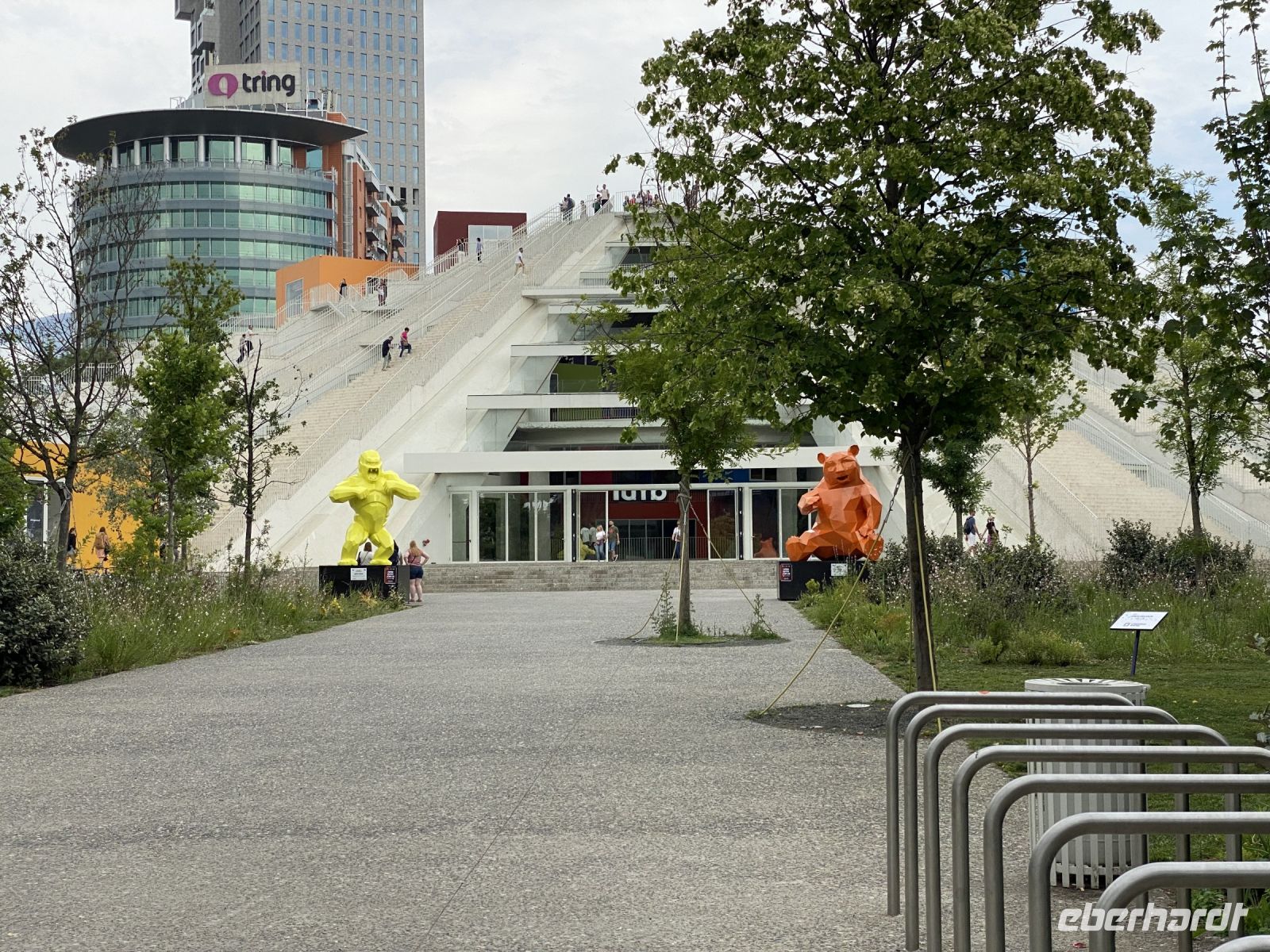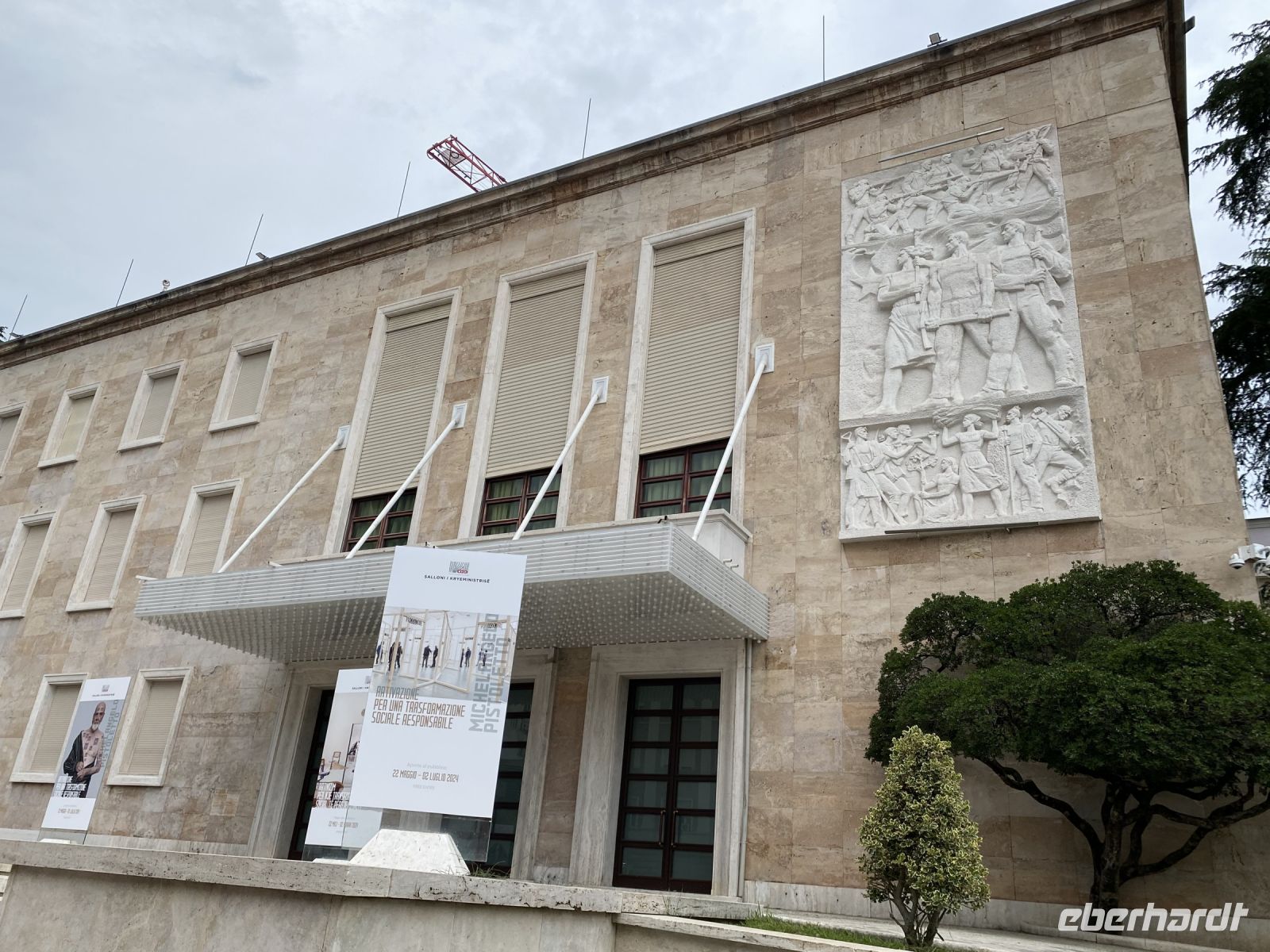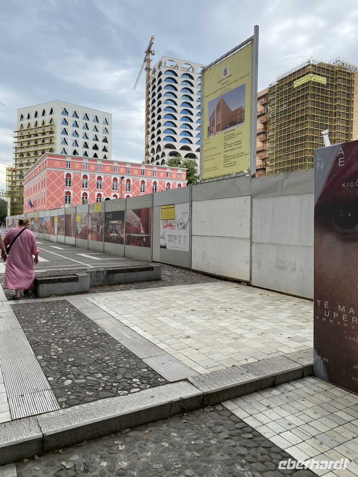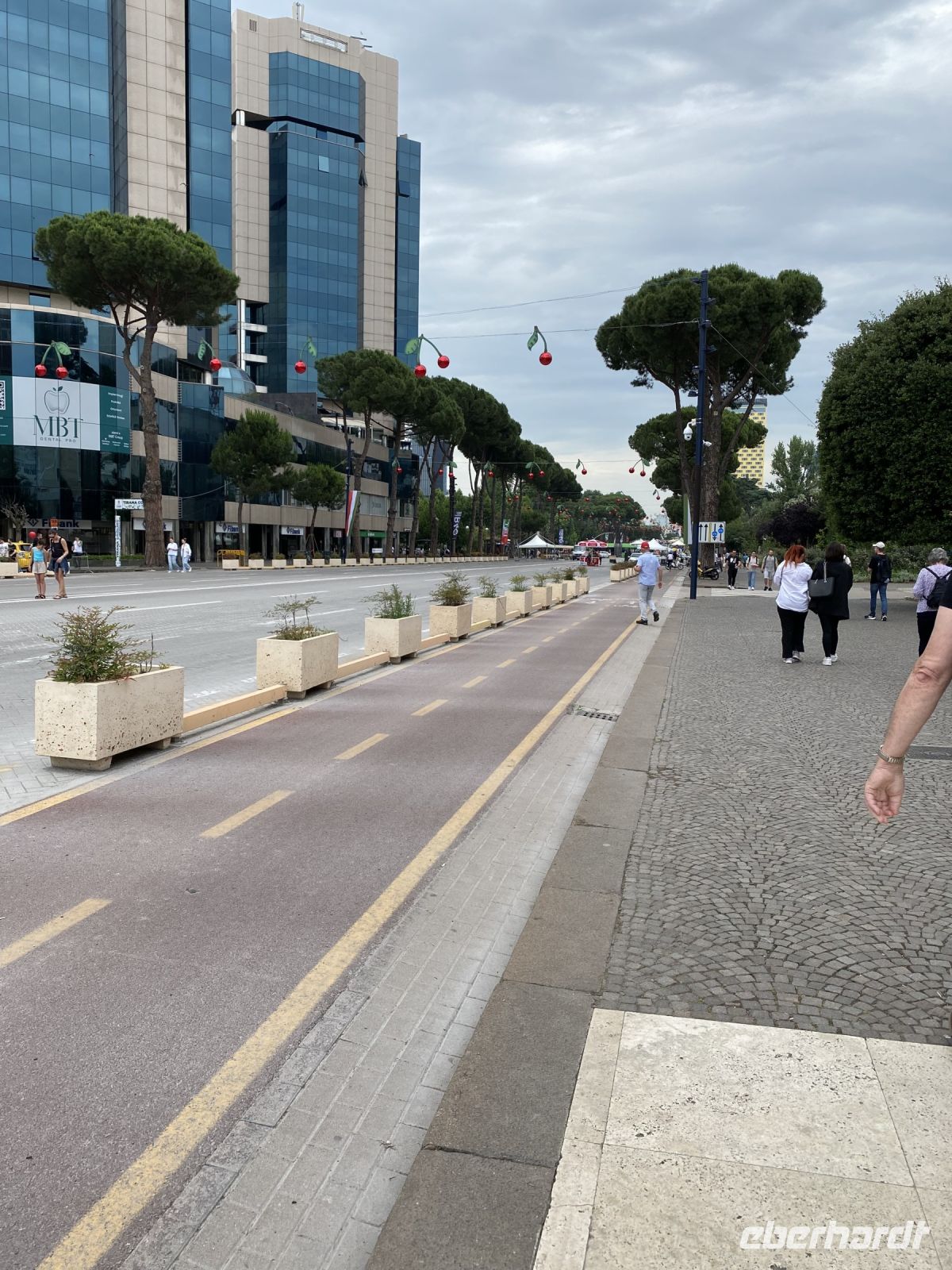 Zügig machen wir uns auf, das Zentrum der Stadt zu erkunden. Offiziell wurde die Stadt 1614 von Suleiman Pascha Mulleti gegründet, erst 1920 wurde Tirana durch den Beschluss des Kongresses von Lushnje zur Hauptstadt gekürt. Im Zentrum finden wir rund um den Skanderbeg-Platz viele wichtige Gebäude, we das Nationalmuseum, die Bibliothek, das Theater und verschiedene Regierungsgebäude. In den letzten Jahren sind etliche Hochhäuser hinzugekommen, auch das Fußballstadion wurde neu gestaltet und erhielt eine Hochhaus-Dominante. Die legendäre Pyramide, entworfen von Hoxhas Tochter, hat noch immer keine rechte Nutzung, Touristen und Kinder klettern auf ihr herum. Im Park steht eine originelle Kunstinstallation: Ein Stück der Berliner Mauer steht neben einem der berühmten Bunker, die Enver Hoxha bauen ließ. Unmengen an Baumaterial, zum Wohnungsbau dringend benötig, wurden auf diese Weise vergeudet. Und dies nur, weil der Diktator sich dauernd aus dem Ausland bedroht fühlte.