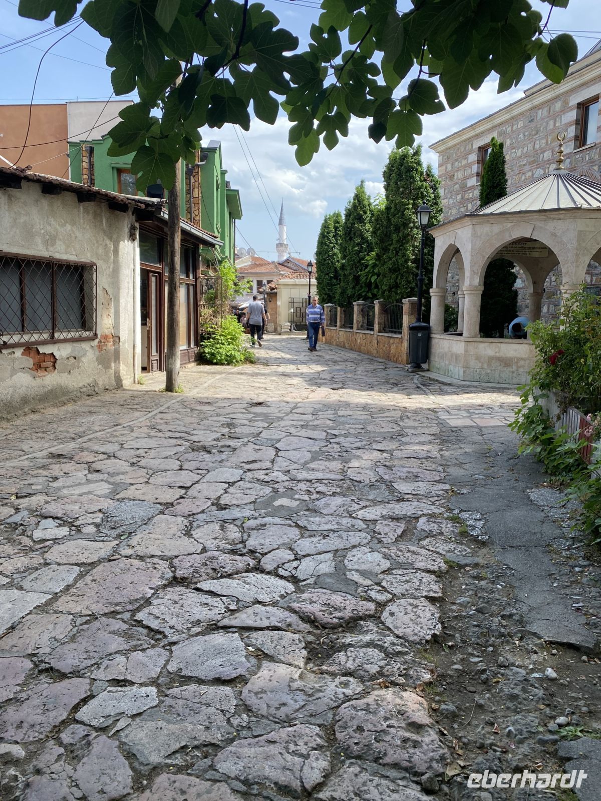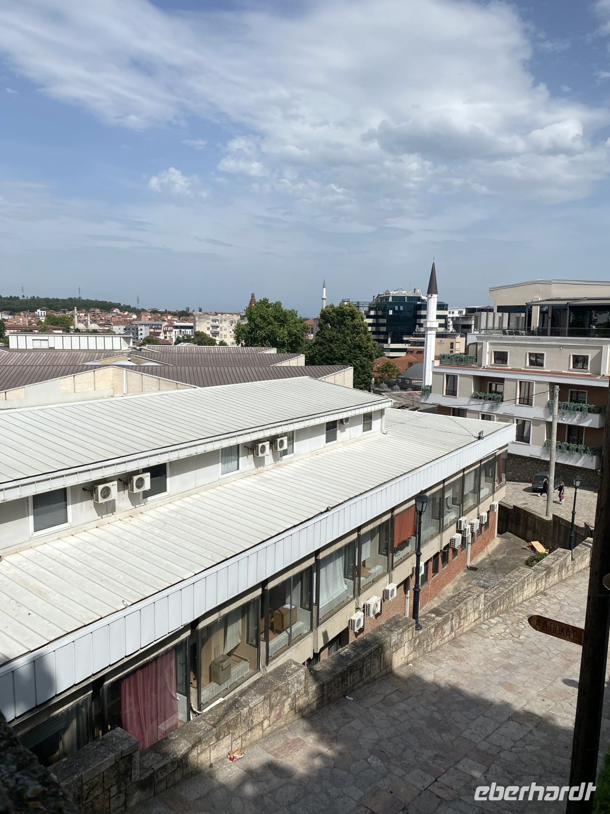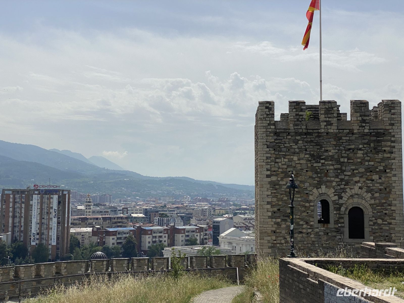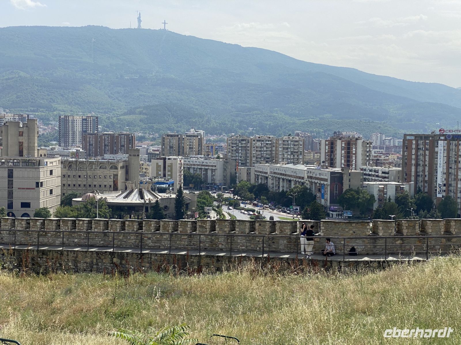 Da es heute keine Grenze zu überwinden gilt, leisten wir uns den Luxus eines späteren Starts und fahren 9:00 Uhr nach Skopje. Die Fahrt geht durch dünn besiedeltes Gebiet, wir kommen trotz Straßenbau gut voran und sind 13:00Uhr in Skopje. Wir beziehen unser Hotel neben dem Fußballstadion, erfrischen uns etwas und trotzen den 30 Grad der Nachmittagshitze in der Stadt. Von der Festung Kale blicken wir auf die Stadt mit ihren Hochhäsern, den Kirchen und Moscheen. Dies ist ein Sinnbild für das Zusammenleben verschiedener Religionen und Ethnien. Wir wandern durch die alten schmalen Gassen der Altstadt mit ihren Schmuckläden, vorüber an Kaffeehäusern und Restaurants.