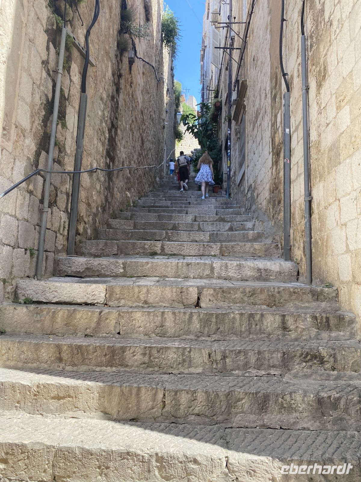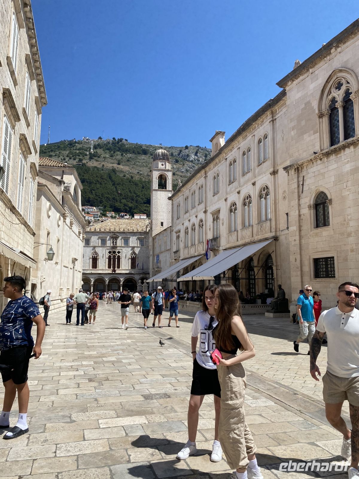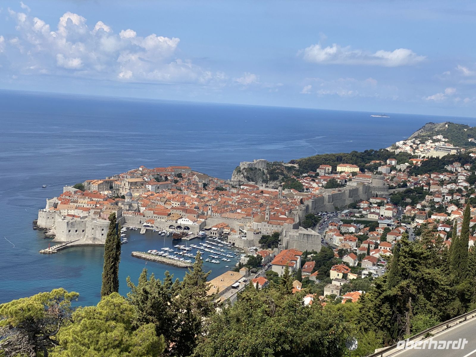 Der Tag beginnt früh, denn wir haben wieder einmal Grenzen zu überwinden, eine davon ist auch noch eine EU-Außengrenze. Aber die Abfertigung ist sehr zügig, so dass wir vor dem zugewiesenen Zeitfenster in Dubrovnik sind. So unternehmen wir noch eine kleine Panoramafahrt um die Stadt herum und erreichen so zu rechten Zeit das Piletor, wo wir den Bus für den Stadtspaziergang verlassen. Die Gästeführerin zeigt und erklärt uns die wichtigsten Sehenswürdigkeiten der Stadt - es gibt eine Vielzahl von Kirchen und Palästen sowie öffentlichen Gebäuden, alles umgeben von einer beeindruckenden Stadtmauer. An der Größe und dem Schmuck der Gebäude lässt sich der Reichtum der früheren Republik Ragusa, einem bedeutenden Handelsplatz, ablesen. Den Tizian in der Kathedrale sehen wir nicht, aber wir wandern zum alten Hafen und über den Marktplatz zurück zum Ausgangspunkt unserer Besichtigungstour. Mit einem Kaffee erwecken die meisten wieder die Lebensgeister und so geht es weiter zur nächsten Grenze zwischen Kroatien und Montenegro, hier dauert es etwas länger, Komplikationen gibt es jedoch nicht. Zum Schluss wartet noch eine schöne Strecke auf uns, wir überqueren die Bucht von Kotor nicht mit der Fähre, sondern nehmen den längeren, aber dafür schöneren Weg um die Bucht herum. Da ist ein Fotostopp natürlich ein Muss. Dennoch sind wir pünktlich in Kotor und unternehmen eine interessante Stadtexkursion mit einem örtlichen Gästeführer. In der Altstadt sind die Einflüsse Venedigs, aber auch die der Habsburger, an den Gebäuden deutlich erkennbar. Wir beginnen am Uhrturm, sehen den alten Pranger, an dem die Bösen der Stadt ihre Taten öffentlich bereuen mussten und die Palaste der reichen Kaufleute und Seefahrer. Beeindruckend ist die Stadtmauer hoch oben in den Bergen, 1350 Stufen führen hinauf. Wir bleiben lieber unten und gehen in das Restaurant Astoria zum Abendessen. Danach gibt es noch eine kleine Fahrstrecke und wir erreichen Budva, wo wir im Hotel Vela übernachten.