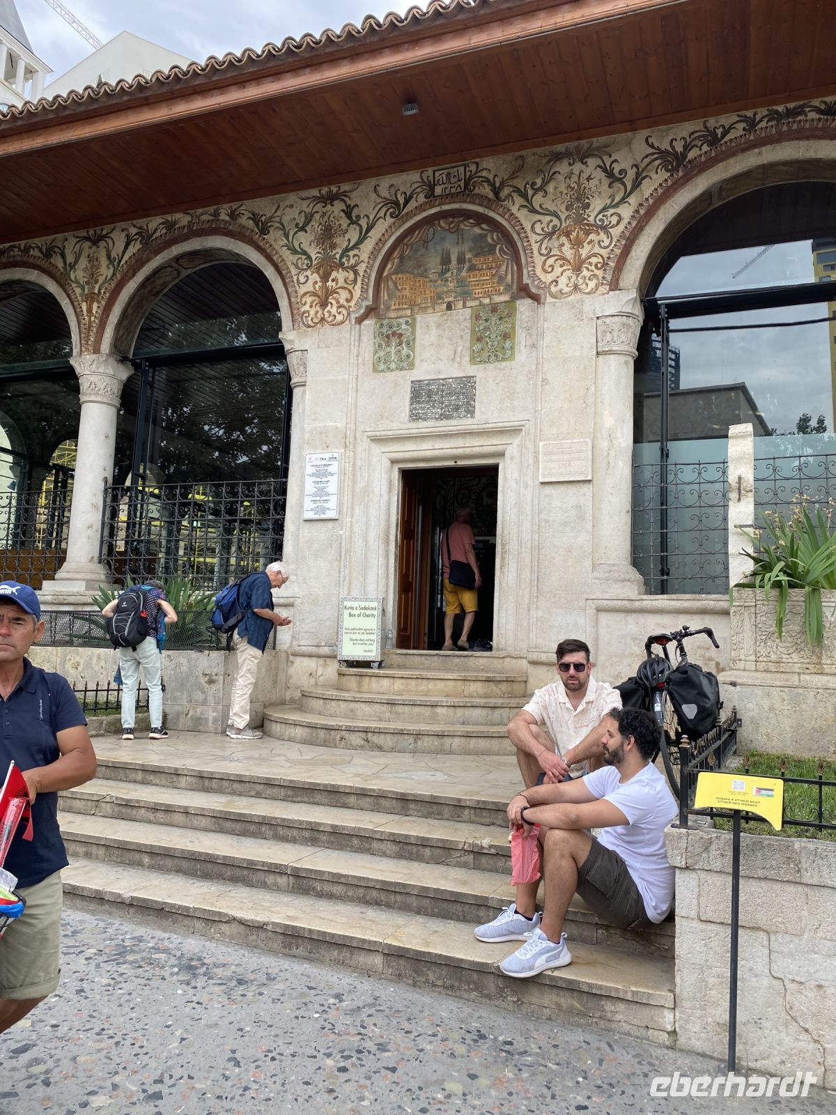 Nach einem etwas turbulenten Frühstück im überfüllten Speiseraum brechen wir auf nach Topola, dessen Name sich von der Pappel ableitet. Dies ist auch heute noch zu sehen, die Landschaft der Region Sumadija ist mit viel Wald bedeckt. In dieser unzugänglichen Gegend lehnten sich die Serben 1804 gegen die Herrschaft der Osmanen auf. Ihr Anführer war Djordje Petrovic, genannt Karadjordje. Unter ihm entwickelte sich Topola zu einem Zentrum der serbischen nationalen Identität. Im Museum und der Kirche auf dem Berg Oplenac können wir diese Entwicklung betrachten und uns die langen Jahre der Osmanenherrschaft vorstellen. Nach etwas Freizeit gehen wir ins Restaurant "Vozd" und nehmen unser Mittagessen ein. Wir sind nun aus der Pannonischen Tiefebene heraus und in einer abwechslungsreichen Hügellandschaft mit kleinen Dörfern. Gegen 17:00 Uhr erreichen wir den Kurort Vrnjacka Banja. Nach dem Einchecken im Hotel Kralj lockt eine hübsche Fußgängerzone mit großen Platanen zu einem kleinen Spaziergang als Ausgleich zum langen Sitzen im Bus.