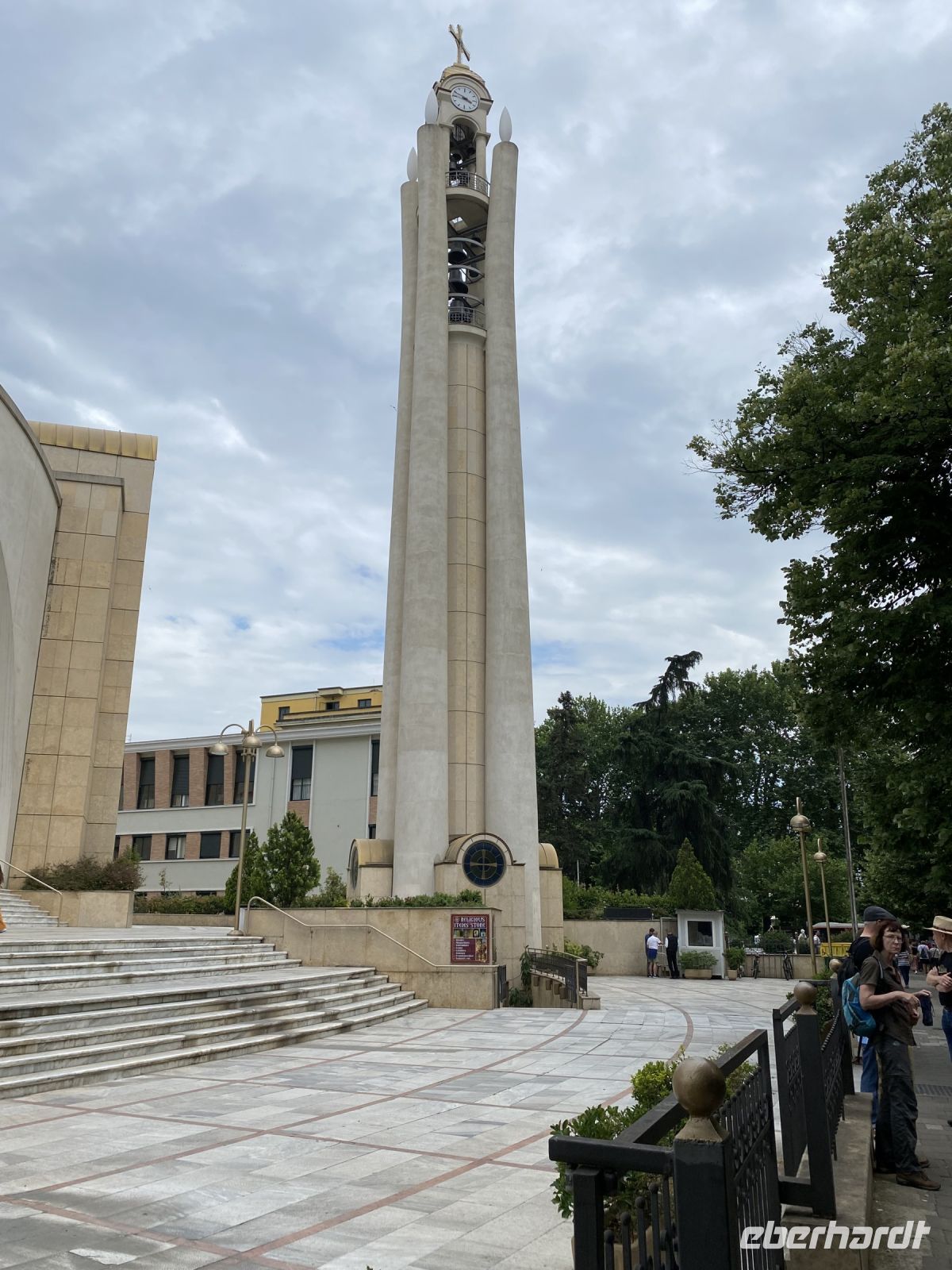 Und wieder starten wir etwas früher, nämlich 8:00 Uhr, um pünktlich an der Grenze zu sein. Das klappt recht gut, in 15 Minuten passieren wir die Grenze zischen Montenegro und Albanien. Kurz nach der Grenze legen wir eine Pause ein und hoffen, ca. 13:00 Uhr in Tirana zu sein. Aber das schaffen wir leider nicht, das Verkehrsaufkommen ist dafür zu hoch und in Tirana ist die Einfallstraße mal wieder gesperrt, ein Kirschenfest wird gefeiert. So treffen wir unseren Gästeführer erst 14:00 Uhr, eine Stunde fehlt uns.