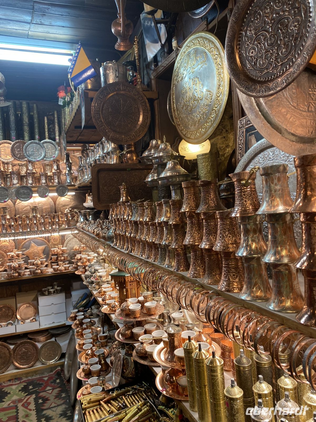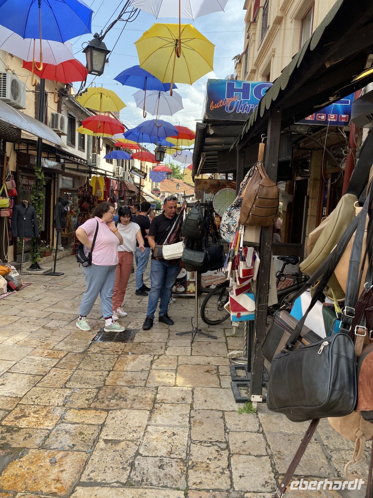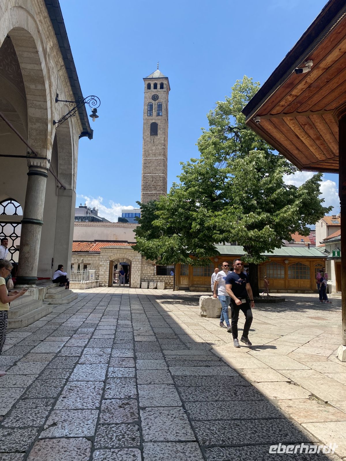 Die Altstadt präsentiert sich quirlig und voller Leben und auf dem Bascarsija-Platz herrscht ein reges Treiben, viele Händler bieten ihre Waren an und zahlreiche Lokale locken die ermüdeten Stadttouristen. Aber wir sind nicht müde und entscheiden uns für eine Straßenbahnfahrt bis zum Stadtrand, andere nutzen die Seilbahn, um einen Überblick über die Stadt zu gewinnen.