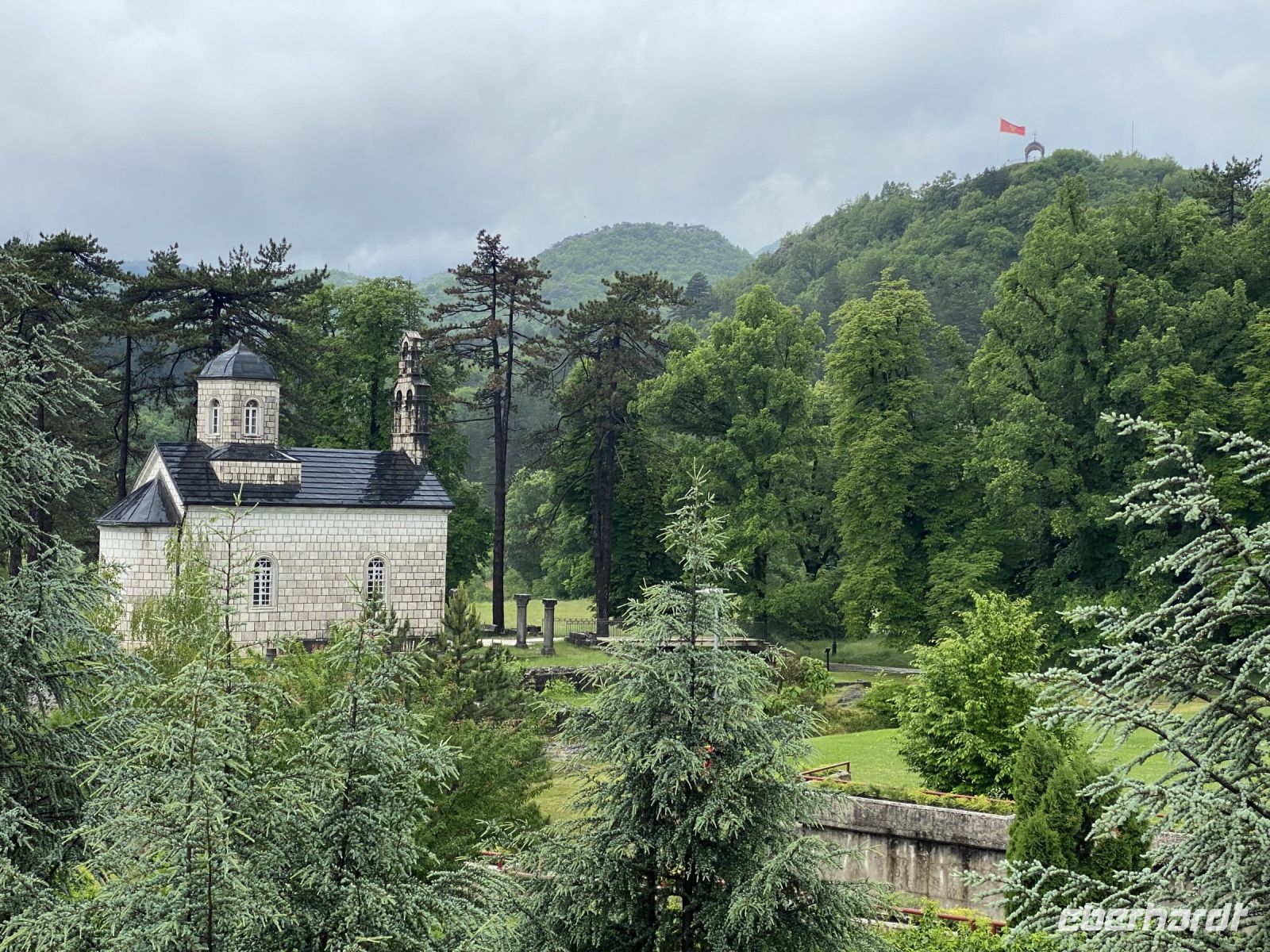 Leider beginnt der Tag regnerisch und er bleibt es auch. Aber dennoch fahren wir froh gestimmt und neugierig hinauf in den Ort Cetinje, der ehemaligen Hauptstadt Montenegros. Als das Land nach dem Berliner Kongress 1878 unabhängig wurde, siedelten sich Botschaften der wichtigsten europäischen Länder in dem Städtchen an. Noch heute stehen die Botschaftsgebäude Russlands, Frankreichs, Österreich-Ungarns, Deutschlands im Zentrum des Städtchens. Der in dieser Zeit regierende Herrscher, König Nikola I nannte 12 Kinder sein eigen, die Töchter verheiratete er geschickt an europäische Adelshöfe. Scherzhaft nannte man ihn deshalb den "Schwiegervater Europas". Wir besehen sein Königsschloss, nicht sehr prunkvoll, aber zweckmäßig eingerichtet. Da es noch immer von Zeit zu Zeit regnet, unternehmen wir nur einen kurzen Spaziergang durch den wunderschönen Park. Wir fahren in ein kleines Restaurant, um den bekannten Njegos-Schinken zu kosten, er wird luftgetrocknet und mit Meersalz eingerieben, wovon er seinen besonderen Geschmack erhält. Es wird dazu ein kleines Glas Wein gereicht, die Ration werten wir mit unserem eigenen Bermet-Wein auf, das freut die Gäste sehr. Nach Budva zurückgekehrt, legen de meisten eine kleine Pause ein um anschließend in die Altstadt von Budva zu bummeln. Die Stadt wirkt wie ein verkleinertes Abbild von Kotor, der venezianische Einfluss ist deutlich erkennbar. Zwischen Zitadelle und Johanniskirche legen wir eine Kaffeepause ein, danach geht es an hübschen kleinen Läden vorbei zu unserem Abendessen im Fischrestaurant "Jadran kod Krsta".