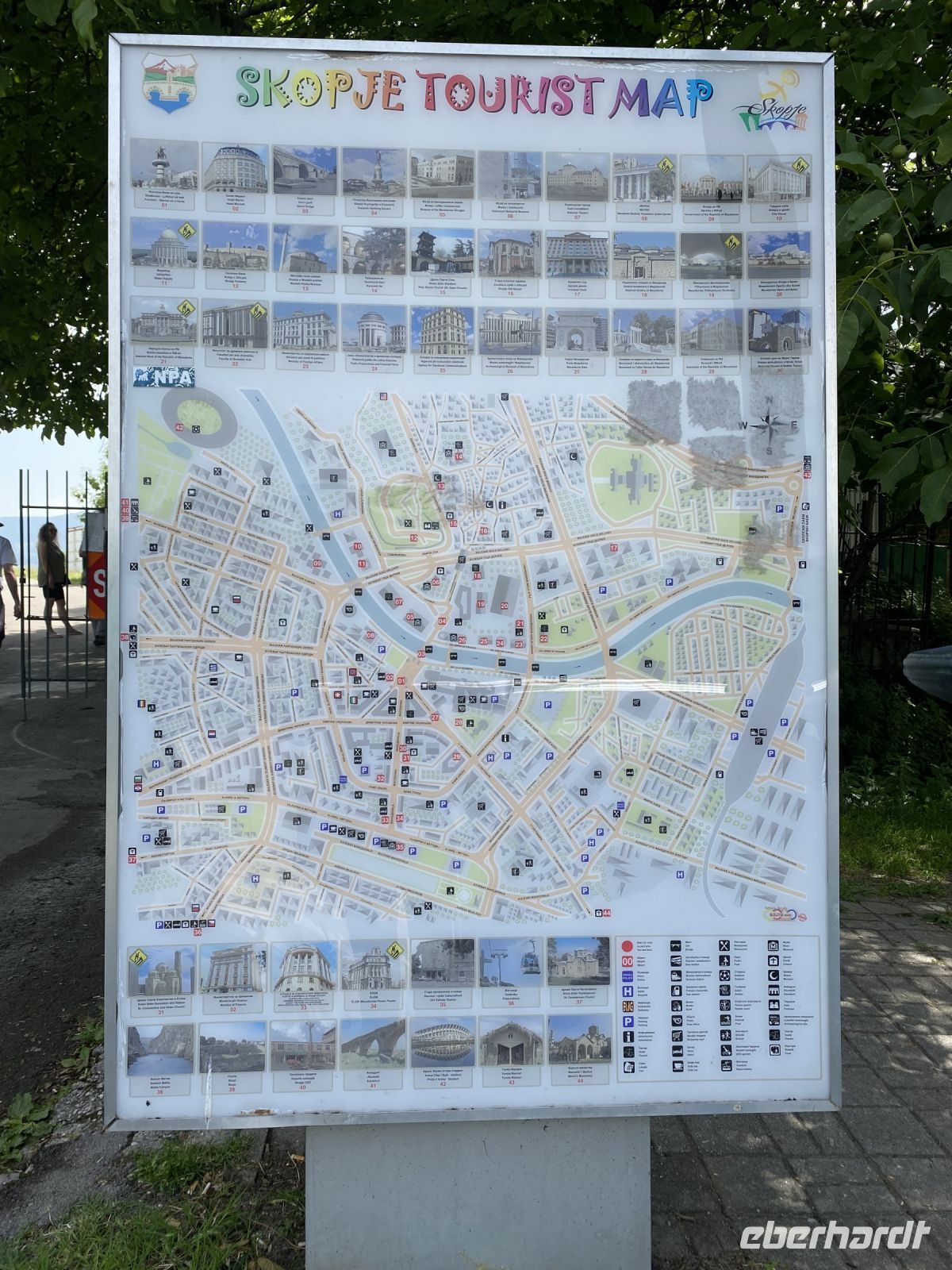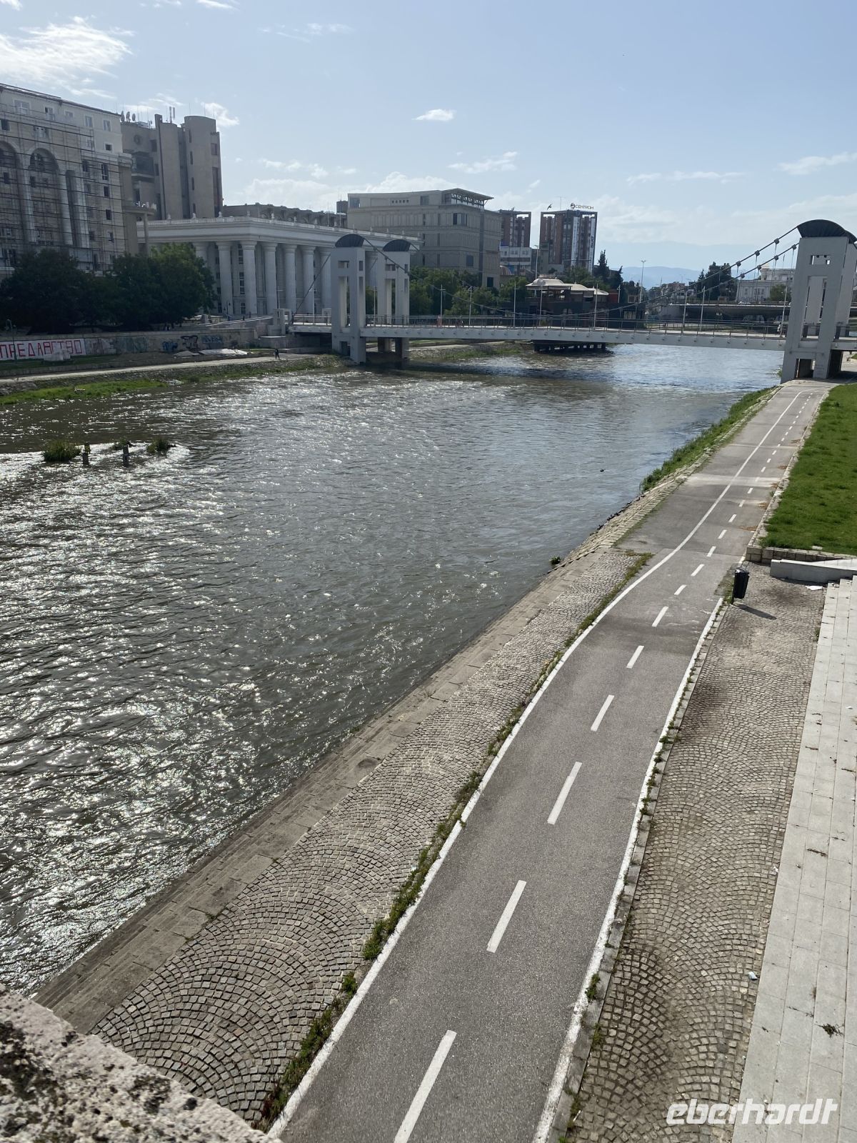 Über den Vardar-Fluss führt eine hübsche Steinbrücke, sie war bei dem großen Erdbeben im Jahre 1963 zerstört, ebenso wie große Teile der Altstadt. Die Bahnhofsuhr blieb genau zum Zeitpunkt des Bebens stehen, es war 5:17 Uhr. Das Gebäude mit der Uhr ist kein Bahnhof mehr, der befindet sich an anderer Stelle. Aber es wurde ein Museum zum Erdbeben eingerichtet.