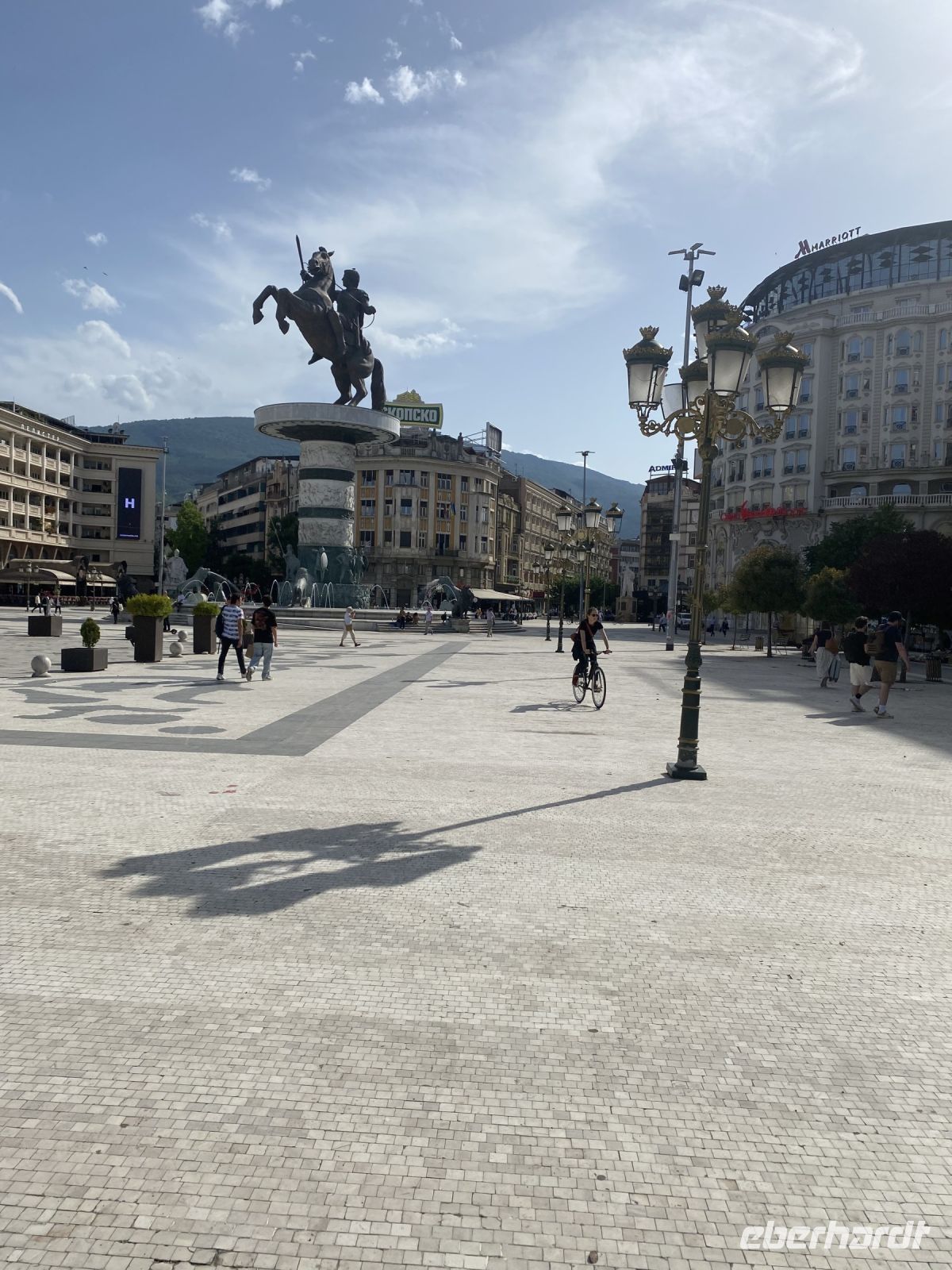 Unweit vom zentralen Platz steht ein Museum für Mutter Theresa, die in Skopje im Jahre 1910 geboren wurde. Der Platz selbst ist mit zahlreichen monumentalen Skulpturen geschmückt. Sie zeigen Philipp mit seiner ganzen Familie und natürlich auch Alexander den Großen. Der darf auf Betreiben Griechenlands aber nicht mehr so genannt werden. Das Denkmal ist jetzt schlicht ein Reiter.