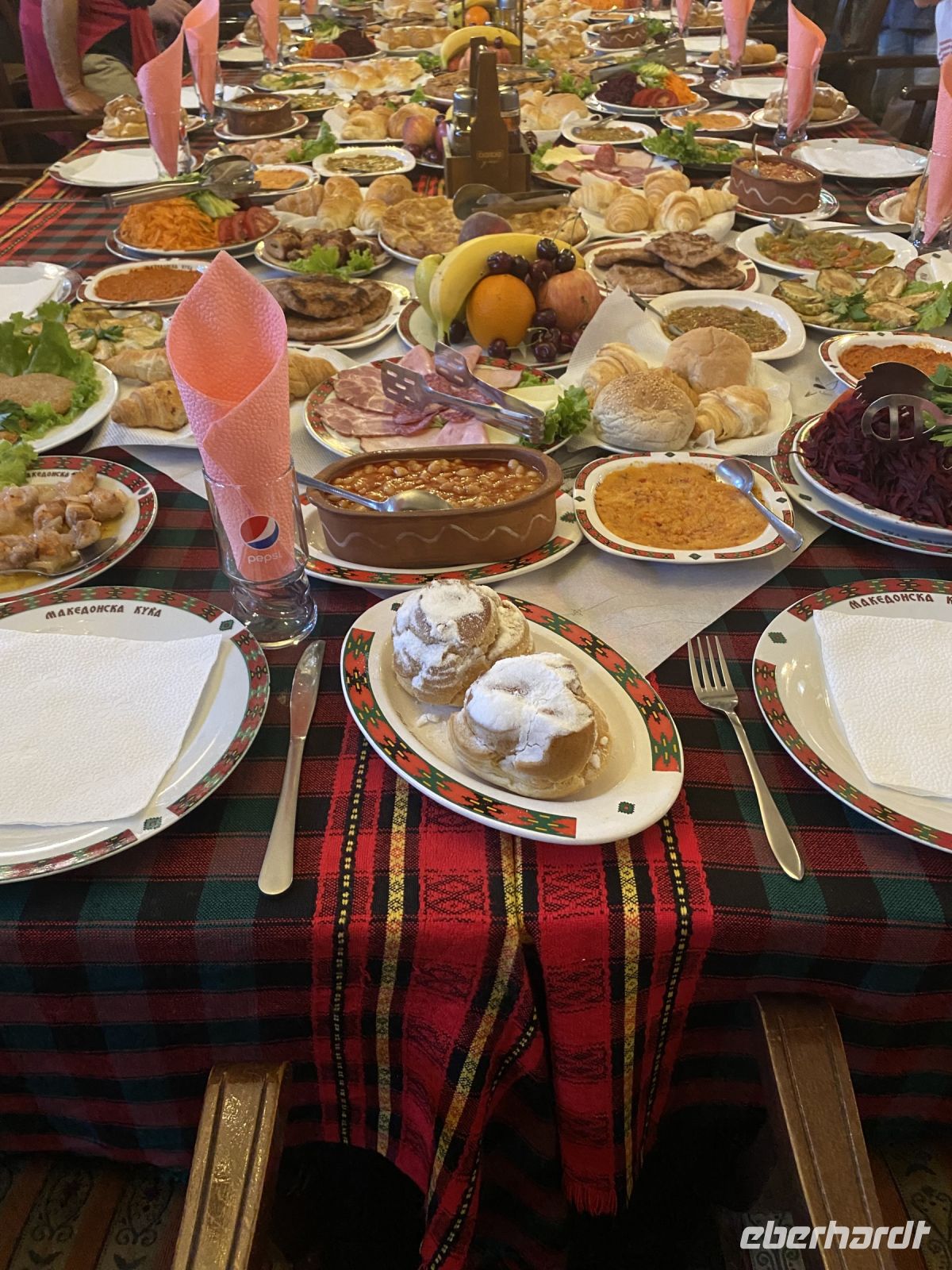 Am Abend fahren wir in das Restaurant "Makedonska Kukja" und essen viel zu viel, aber es ist einfach zu verlockend.