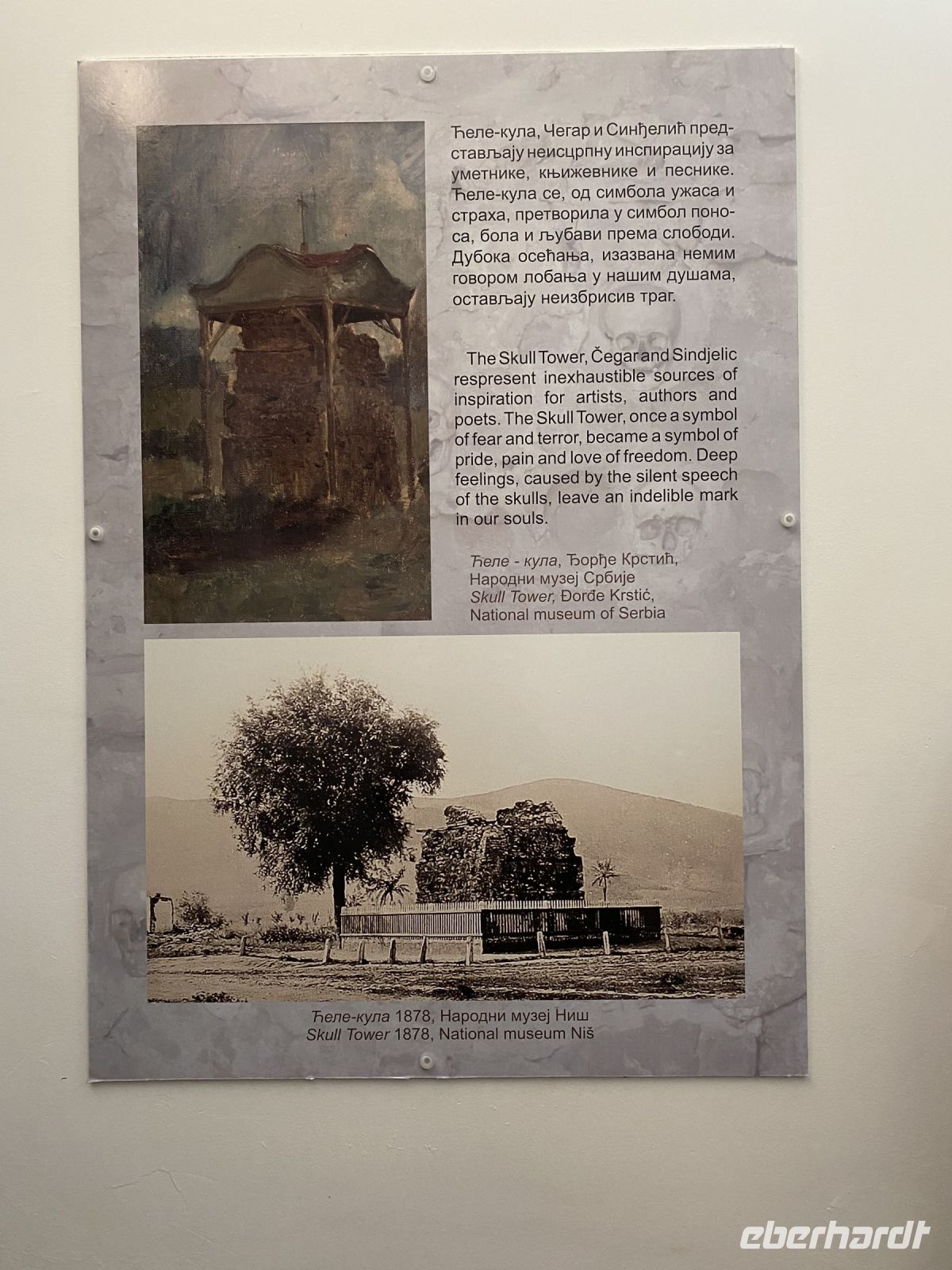 Wieder einmal begegnen sich beim Frühstück mehrere Reisegruppen und es wird etwas eng, aber mit Geschick meistern wir auch diese Hürde und pünktlich 9:00 Uhr starten wir zu unserer Fahrt zurück nach Serbien, diesmal in die Stadt Nis. Der Grenzübergang von Nordmazedonien nach Serbien geht schnell, wir leisten uns eine Pause in Predejane und sind 13:00 Uhr an einem Denkmal am Stadtrand. Hier befindet sich der Schädelturm. 1809 kämpften die Serben gegen die osmanische Fremdherrschaft, aber die Serben waren zahlenmäßig unterlegen. Der Anführer der Serben beschloss, die noch vorhandenen Pulverfässer so explodieren zu lassen, dass sie und möglichst viele Türken dadurch getötet wurden. Der Sultan war darüber sehr erbost und ließ die toten Serben noch enthaupten und ihre Schädel zu einem Turm aufstellen. es ist doch ziemlich grausam, hat aber die Serben von weiteren Aufständen nicht abgehalten.