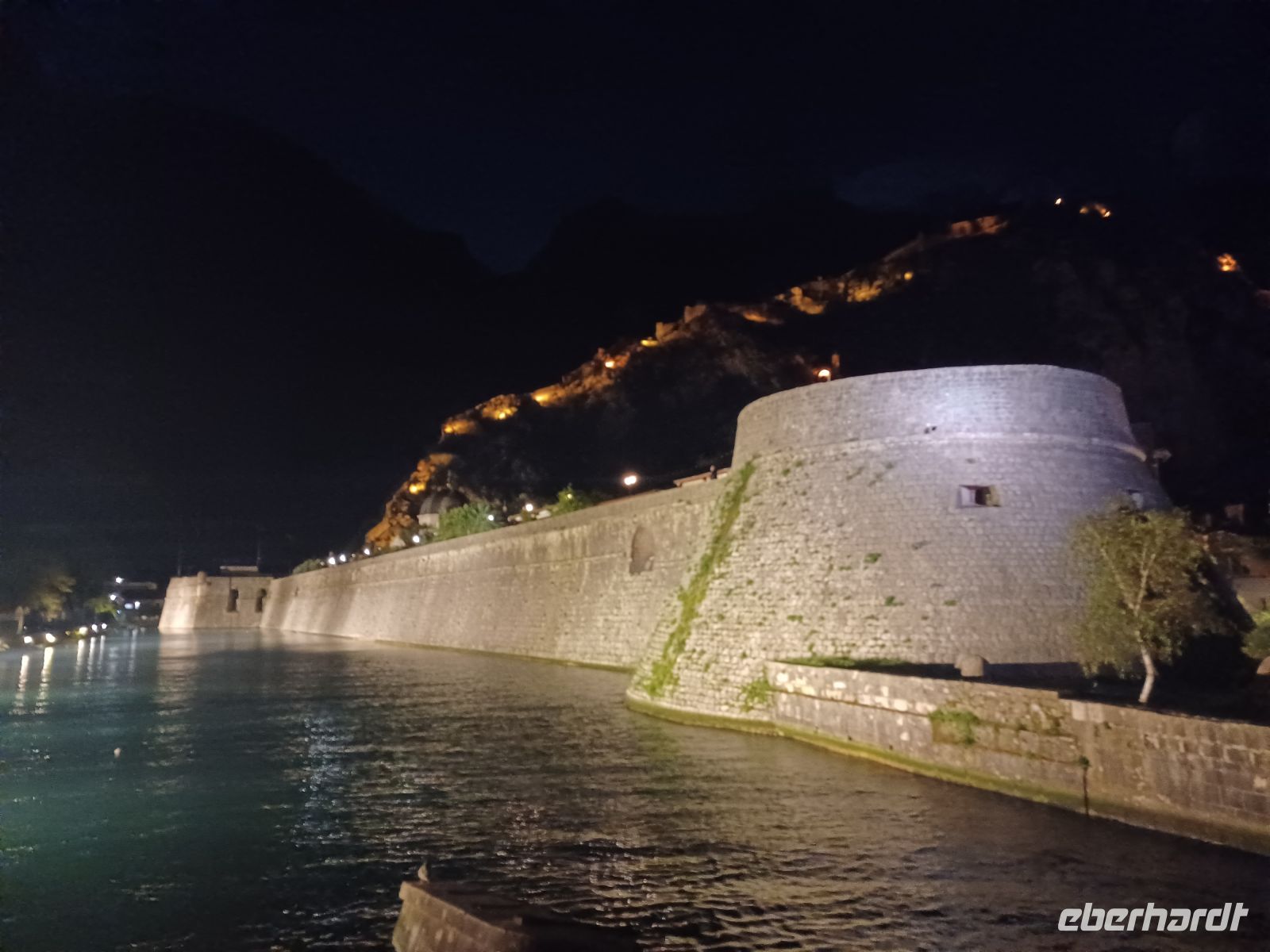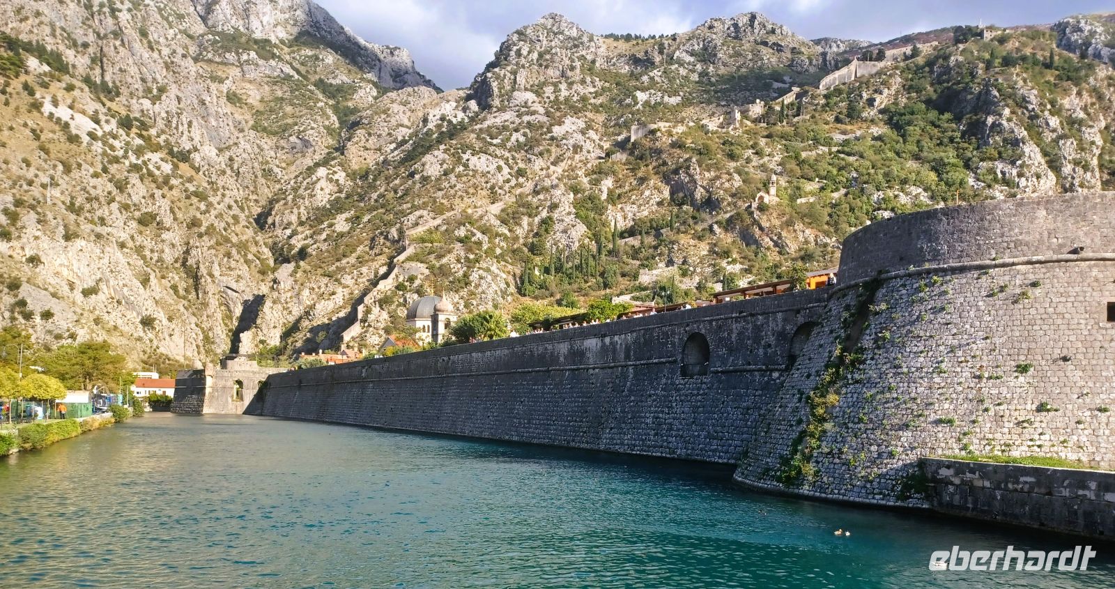 Gegen vier langen wir nun am Welterbe Nummer drei an: der Stadt Kotor selbst. Dieser besondere Ort, auch unter dem Namen Cattaro bekannt, zeigt sich uns eng angeschmiegt an die von hier aus steil ansteigenden Berge. In schwindelerregender Höhe wurde hier eine Befestigungsmauer angelegt, sie beschützte einst diese wichtige Hafenstadt vor allen fremden Begehrlichkeiten.