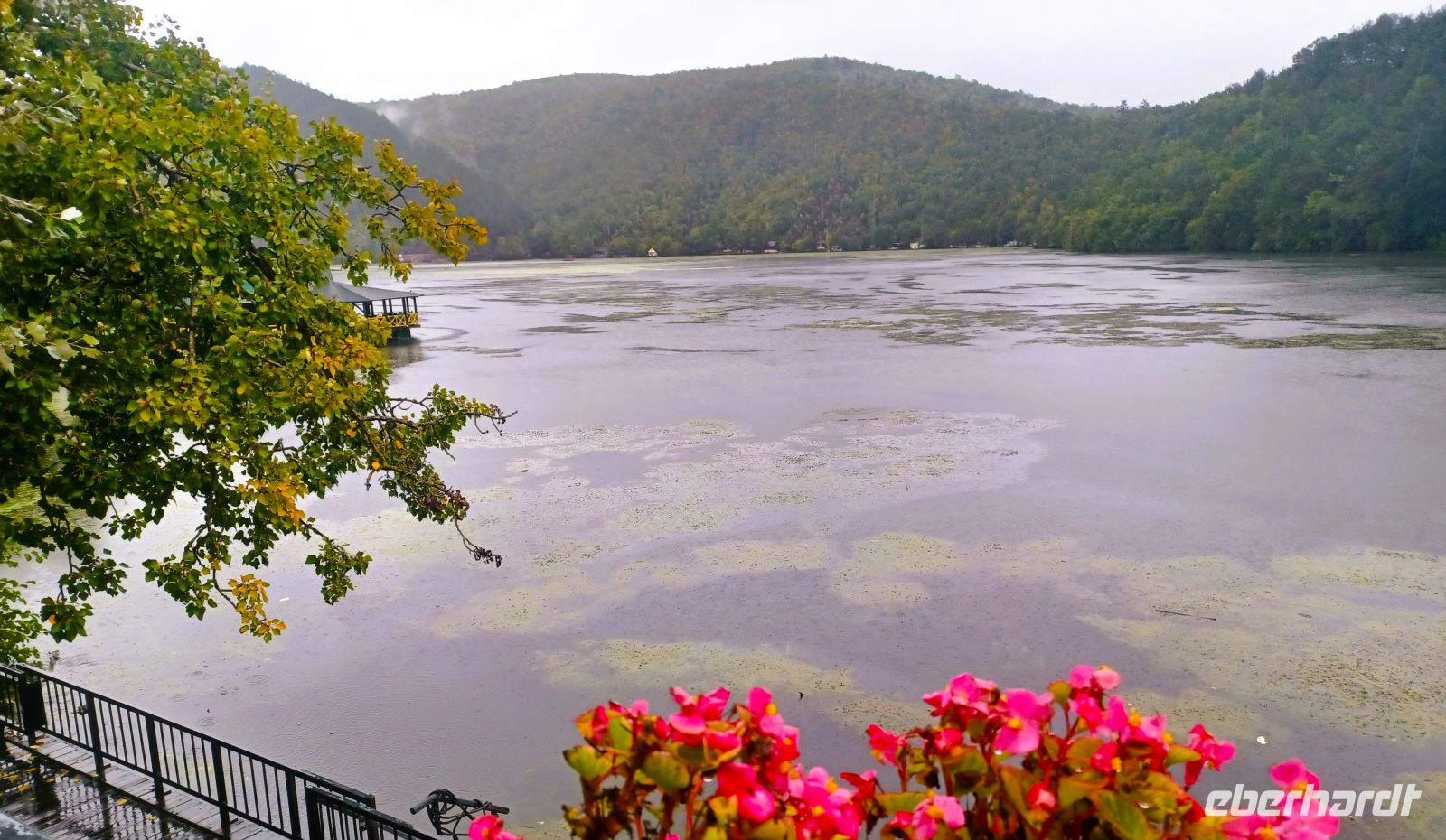 Dann geht es weiter; entlang des Flusses welcher den Namen Westliche Morava trägt, wechseln sich Kleinstädte mit Landwirtschaft ab – dann führt uns der Weg in eine breite Schlucht an deren Ende wir an einem Stausee Rast einlegen. Die Regenschirme bleiben unsere Begleiter – es will einfach nicht aufhören zu regnen!