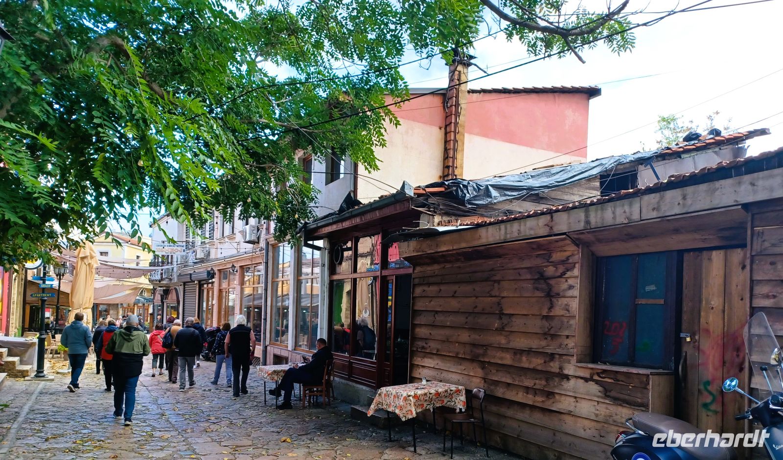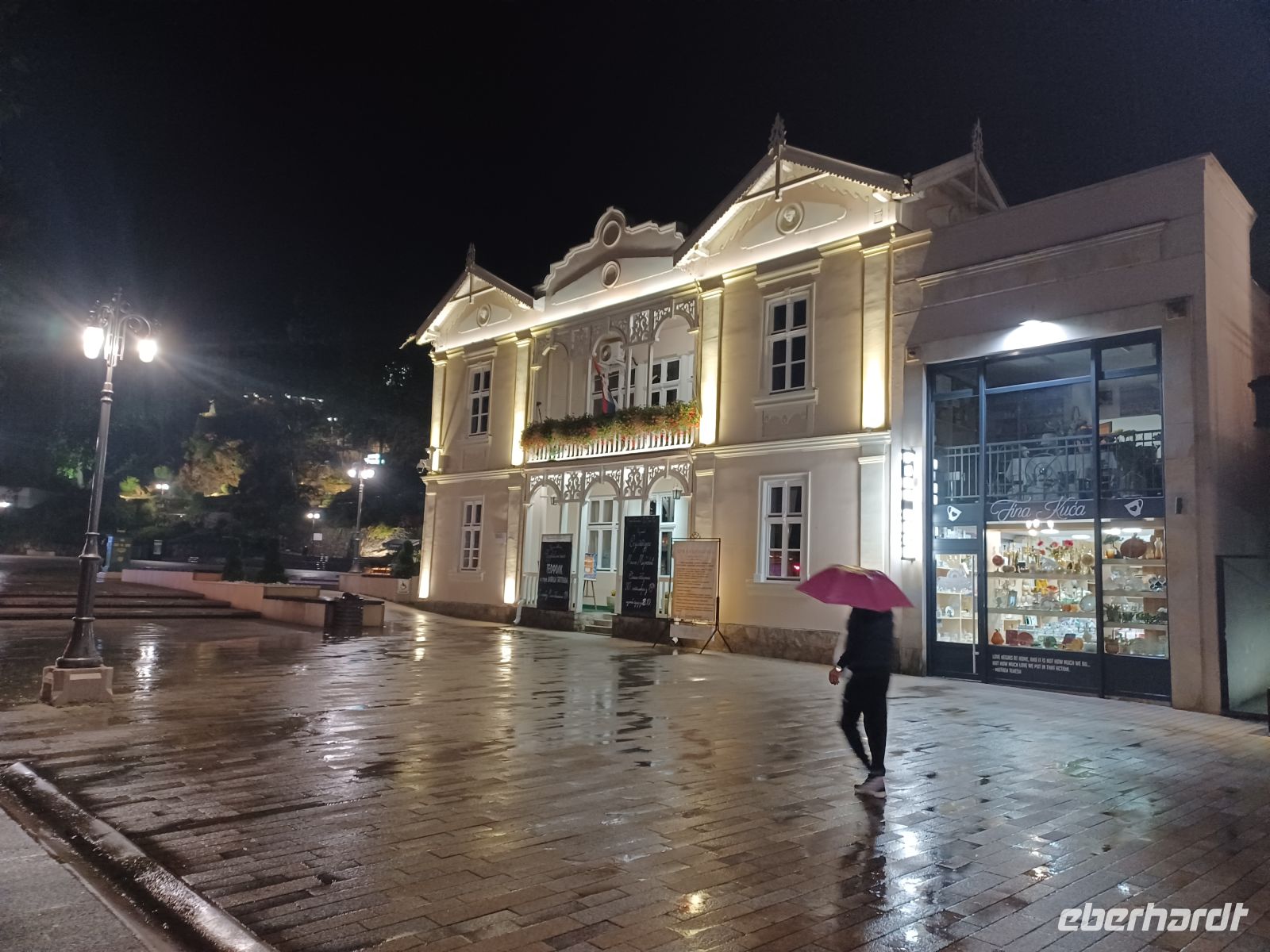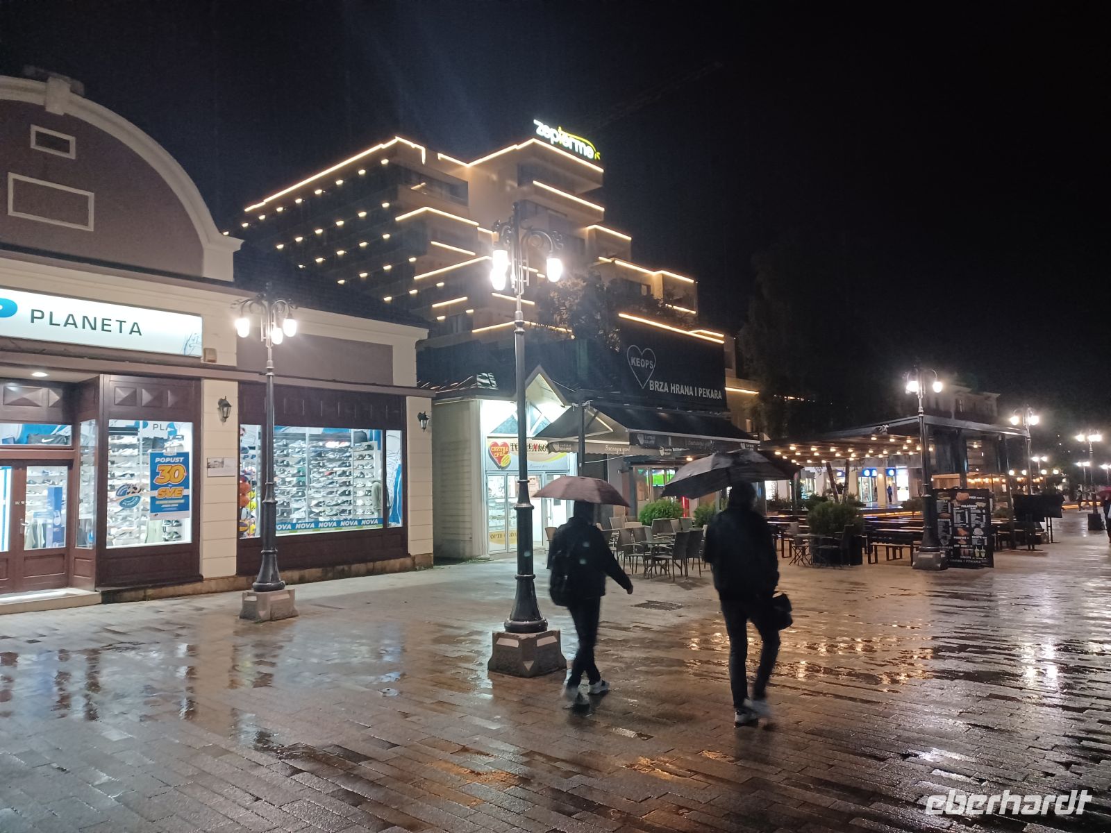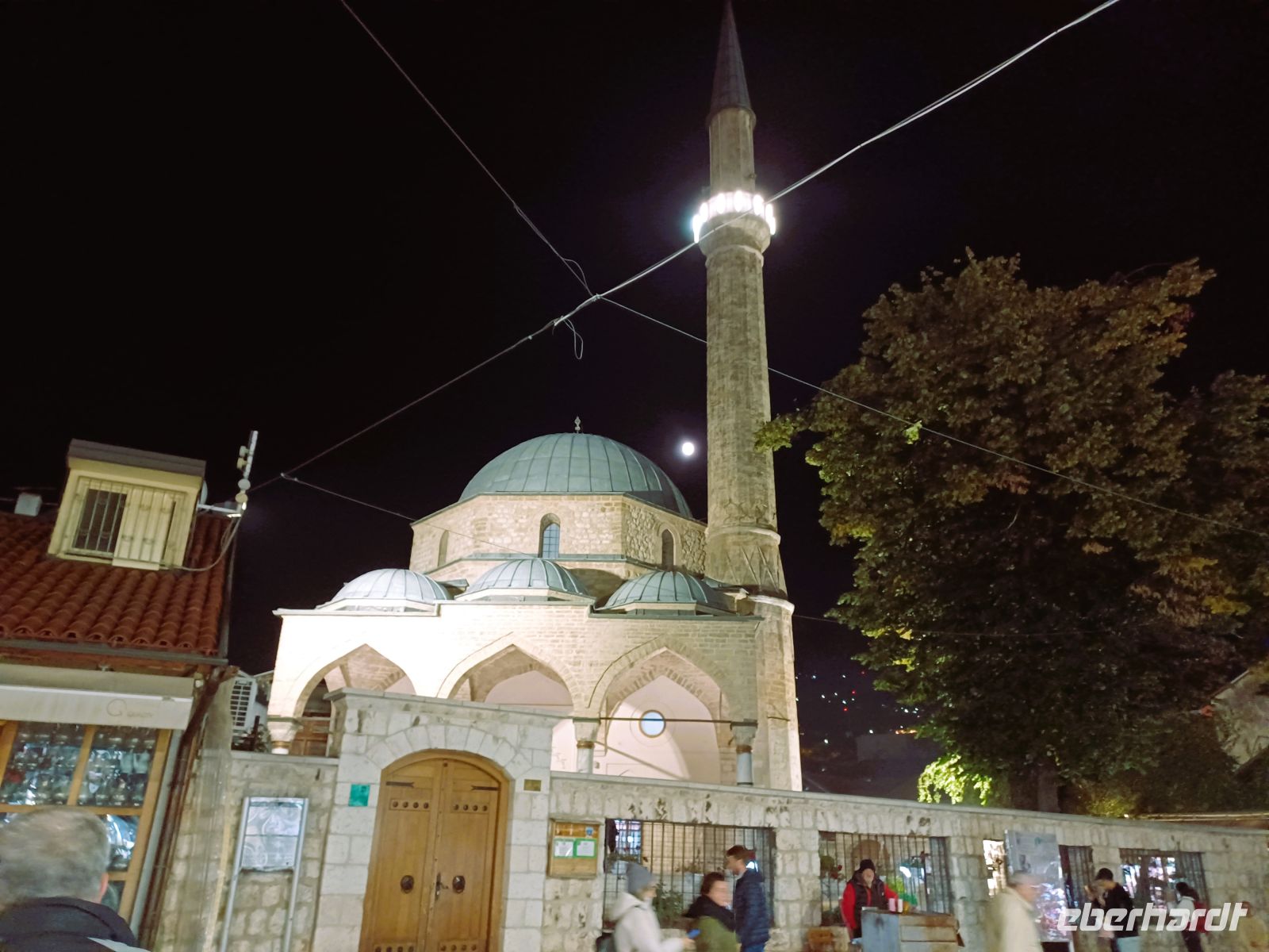 Dann überqueren wir in der Fußgängerzone jene imaginäre Linie welche das Abend- vom Morgenland trennt. Die mondänen Habsburger Häuser machen niedrigen, meist aus Holz bestehenden Gebäuden Platz. Das ist das faszinierende Erbe der Osmanen – es blieb gottlob unangetastet. Leider hat sich nun wieder der Himmel bezogen und Petrus sendet erste Tropfen herab.